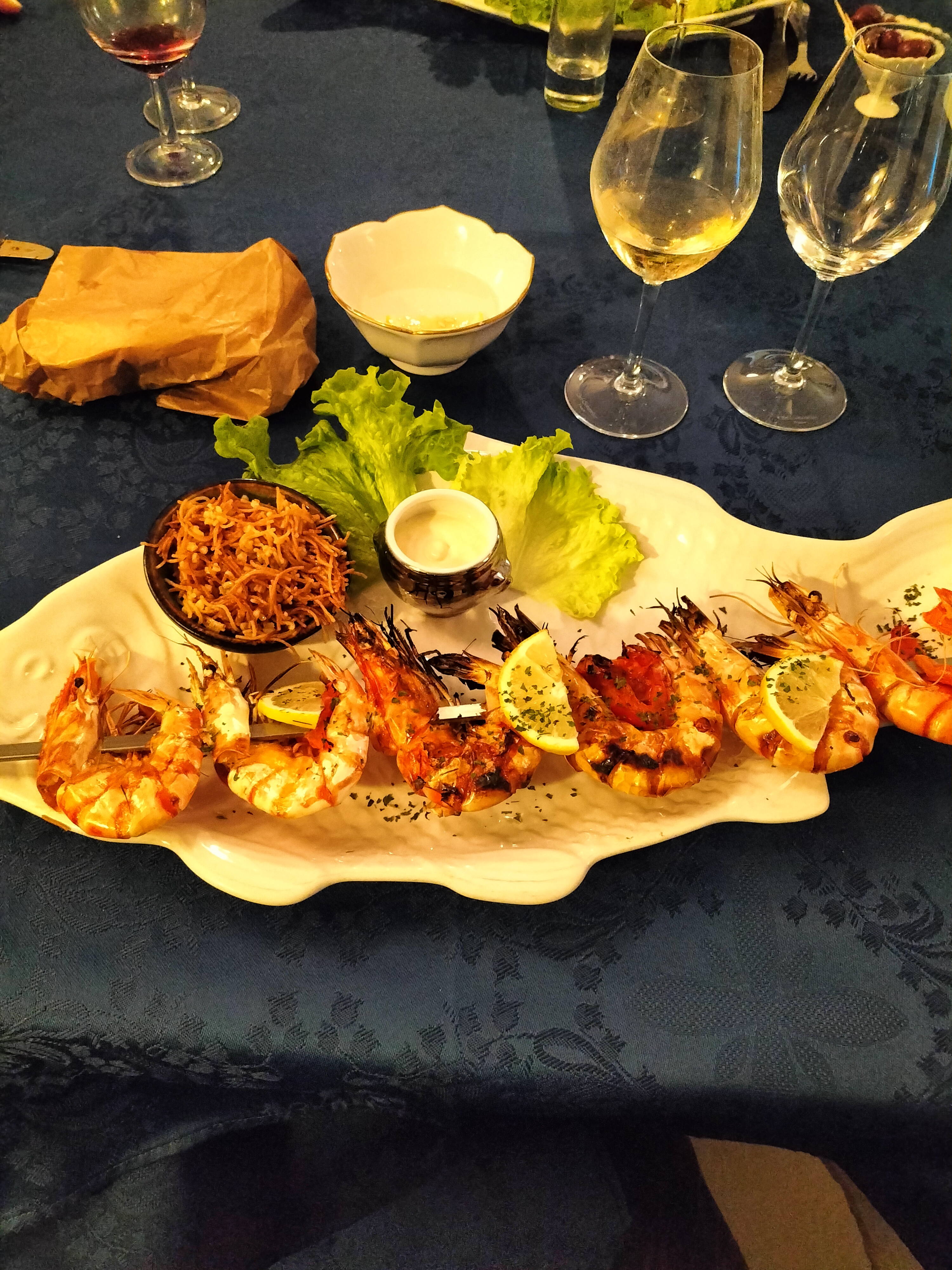 Petit bémol sur la disposition des tables de 2 personne qui sont un peut trop rapproché a mon goût et de l'accompagnement des gambas en menu qui est léger (feuille de salade) mais sinon service impeccable , cuisine délicieuse, super decouverte avec un cadre magnifique et petit plus les cafés nous ont était offert. Nous reviendrons avec plaisirs!!
