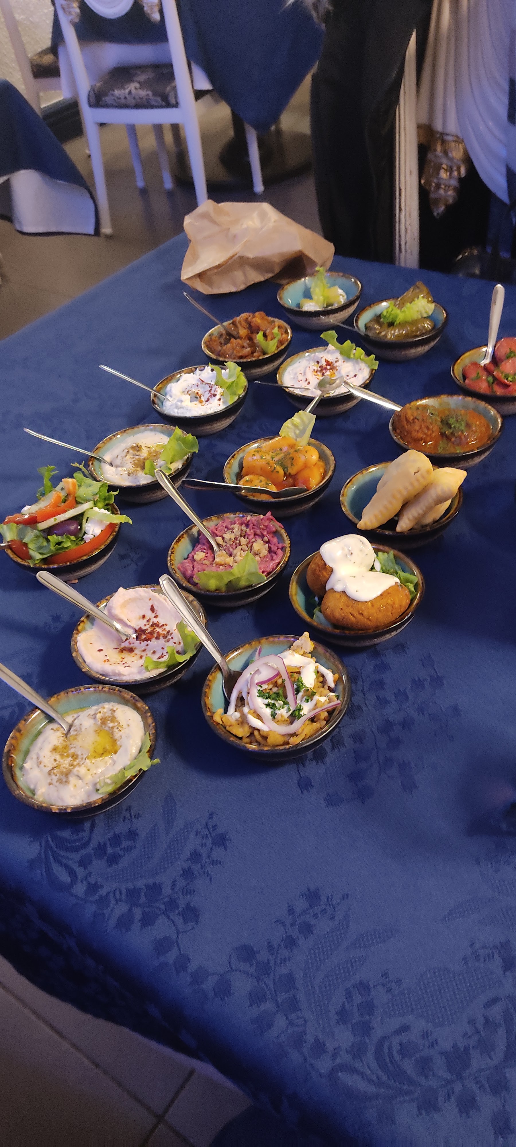 L'assortiment de mezzés est excellent et très frais. Les pâtisseries desserts sont très bonnes