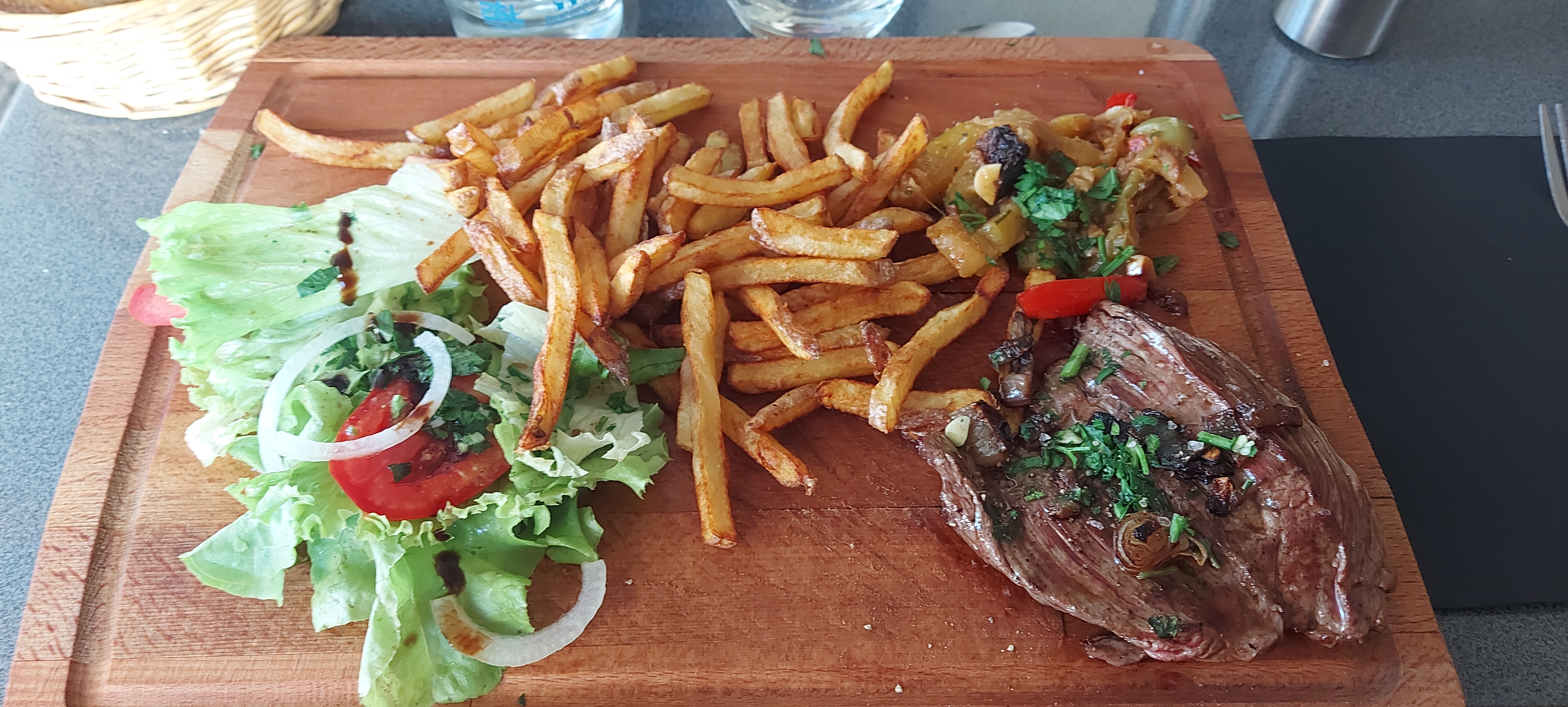 Cuisine simple certes mais un vrai régal!! Comme a la maison, salade campagnarde très fraîche et pâté excellent, steack frites viande extra tendre et cuisson parfaite, frites maison excellentes, gâteau au chocolat fait maison excellent. Accueil au top. Bref bref je recommande a 200% !!