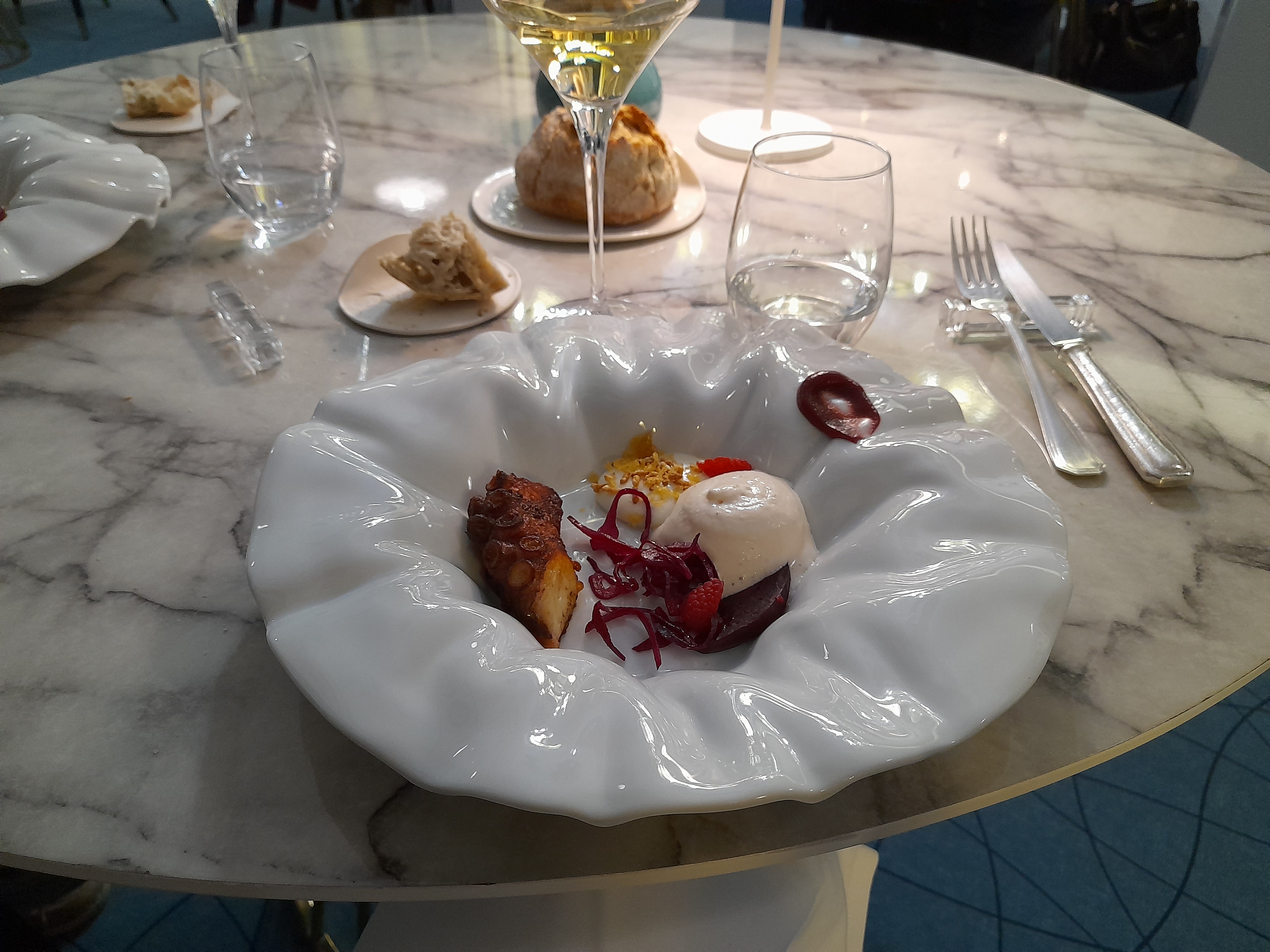 Du gastro.. excellent Une belle découverte pour les mets Nous avons choisi les 4 verres choix du sommelier une belle découverte aussi A chaque mets son vin bravo à ce restaurant Menu au top ..