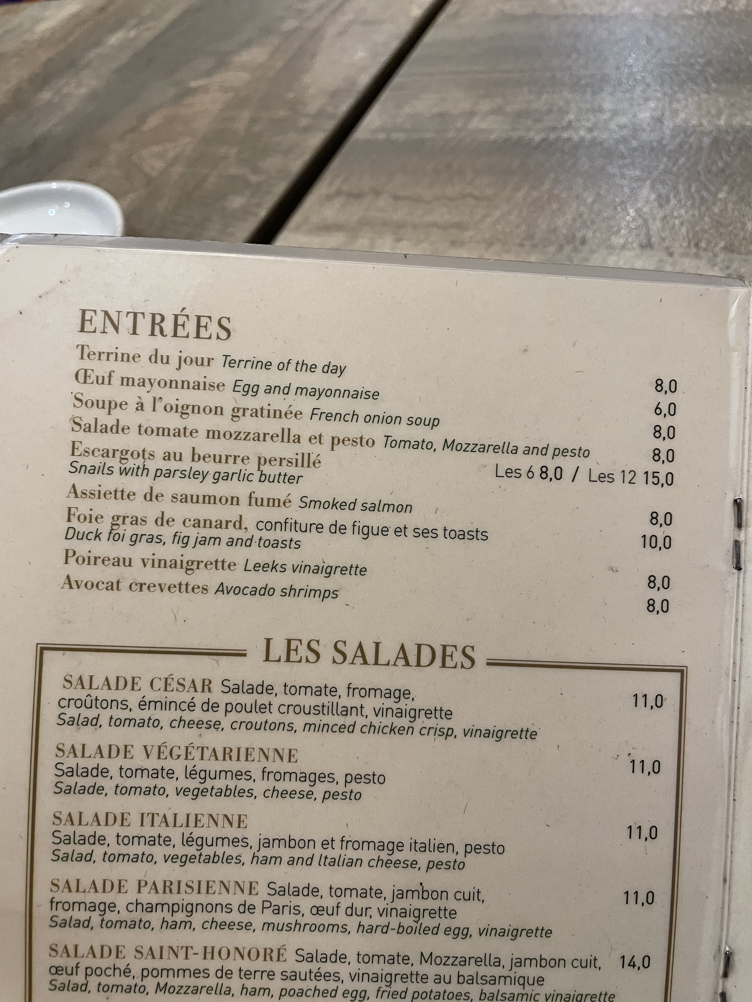 A FUIR. Le service est très désagréable, le serveur nous demande de changer de table au bout de 15’ car « on dérange », il nous pointe du doigt, manque de politesse, trop familier, il demande mon origine et nous dit que c’est normal car « il est très taquin », revient quatre fois pour demander notre commande, grosses traces de doigts sur les verres… tous les clients étaient choqués du service , on se faisait tous des regards … nous avons commandé une salade caesar, des planches de charcuterie, fromage, et croque madame: n’en parlons pas c’était ridicule. et le service nous a coupé la faim.