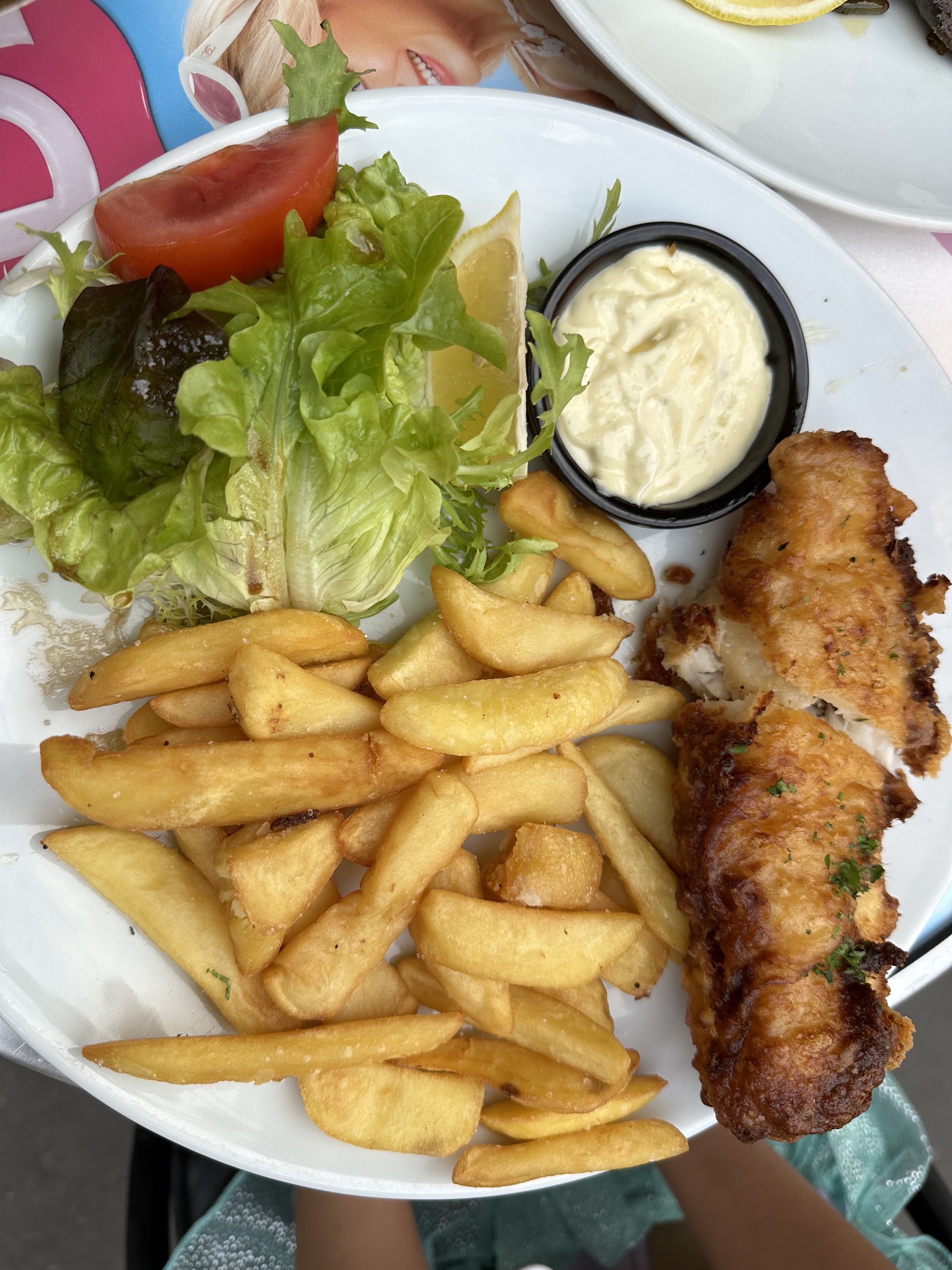 Bonne nourriture, prix raisonnable, bon service. Le fish and chips nous manque, alors nous sommes entrés quand nous l'avons vu au menu. Le plat spécial du jour était du saumon avec des légumes grillés, donc nous l'avons eu aussi.