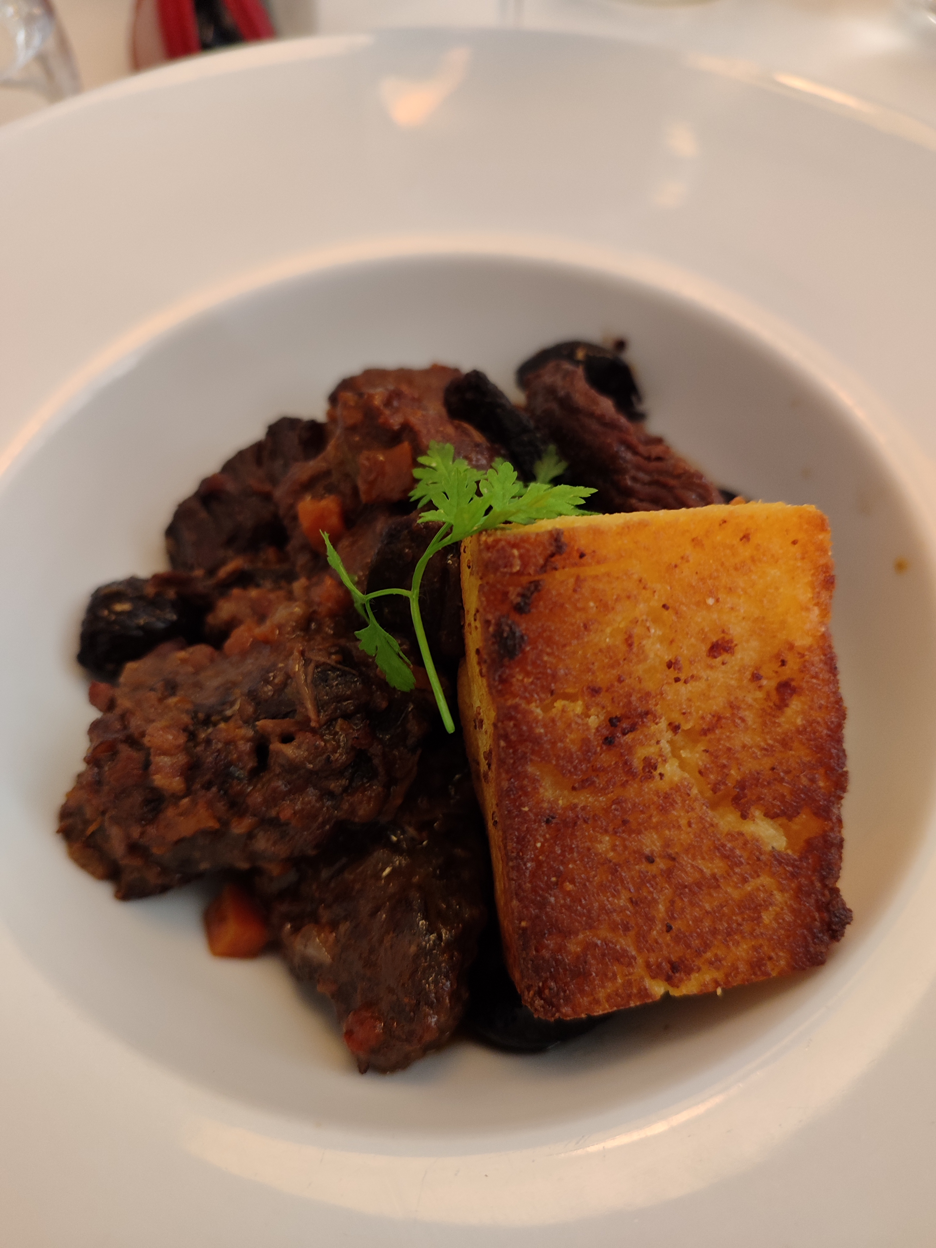 Nous avons eu un excellent dîner avec un service très attentionné. Les trois plats étaient délicieux ! Surtout la soupe au melon et le dessert au citron. Sur la photo un veau glacé au cola. Je pense que ce restaurant vient de figurer en tête de ma liste dans le Luberon - le rapport qualité-prix est également excellent.