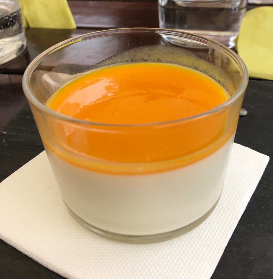 Nous avons pris le menu du jour à 18€ et un 50cl de rouge à 7€. Salade de vrais gésiers et pignons de pin, cassoulet aux trois viandes en cassolettes terre, panna cotta en dessert. Tout est top, avec le sourire en prime J’oubliai la localisation en terrasse ombragée à quelques mètres du château.