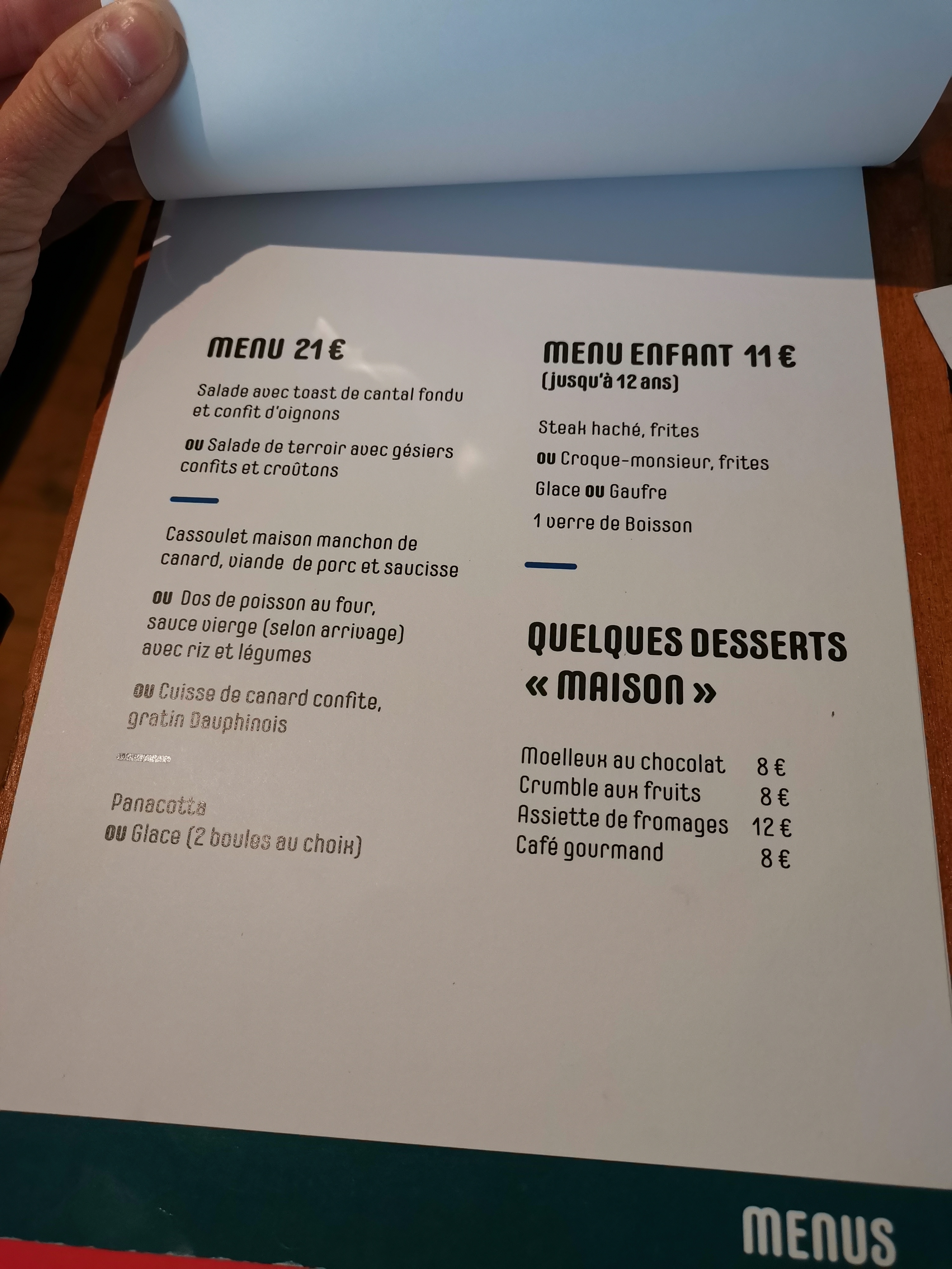 Menu à 17€ (entré, plat, dessert) très bon rapport qualité prix. Généreux et de bonne qualité ! Très bonne adresse je recommande cette établissement !