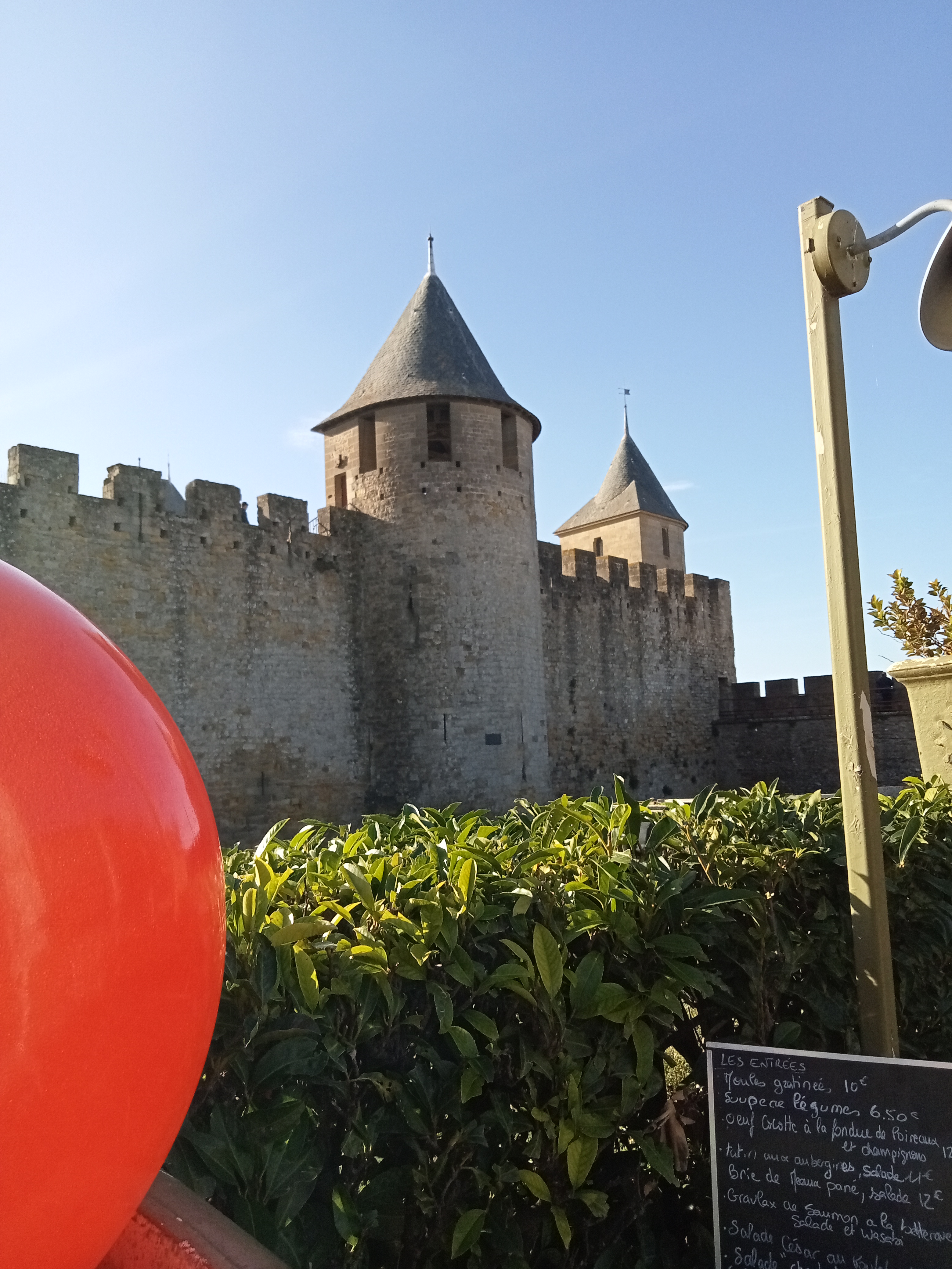 Une terrasse sympathique avec une vue imprenable sur les tours de la Cité de Carcassonne. Un copieux menu à 26 € avec un super café gourmand. Le smoothie fraise menthe est une tuerie....