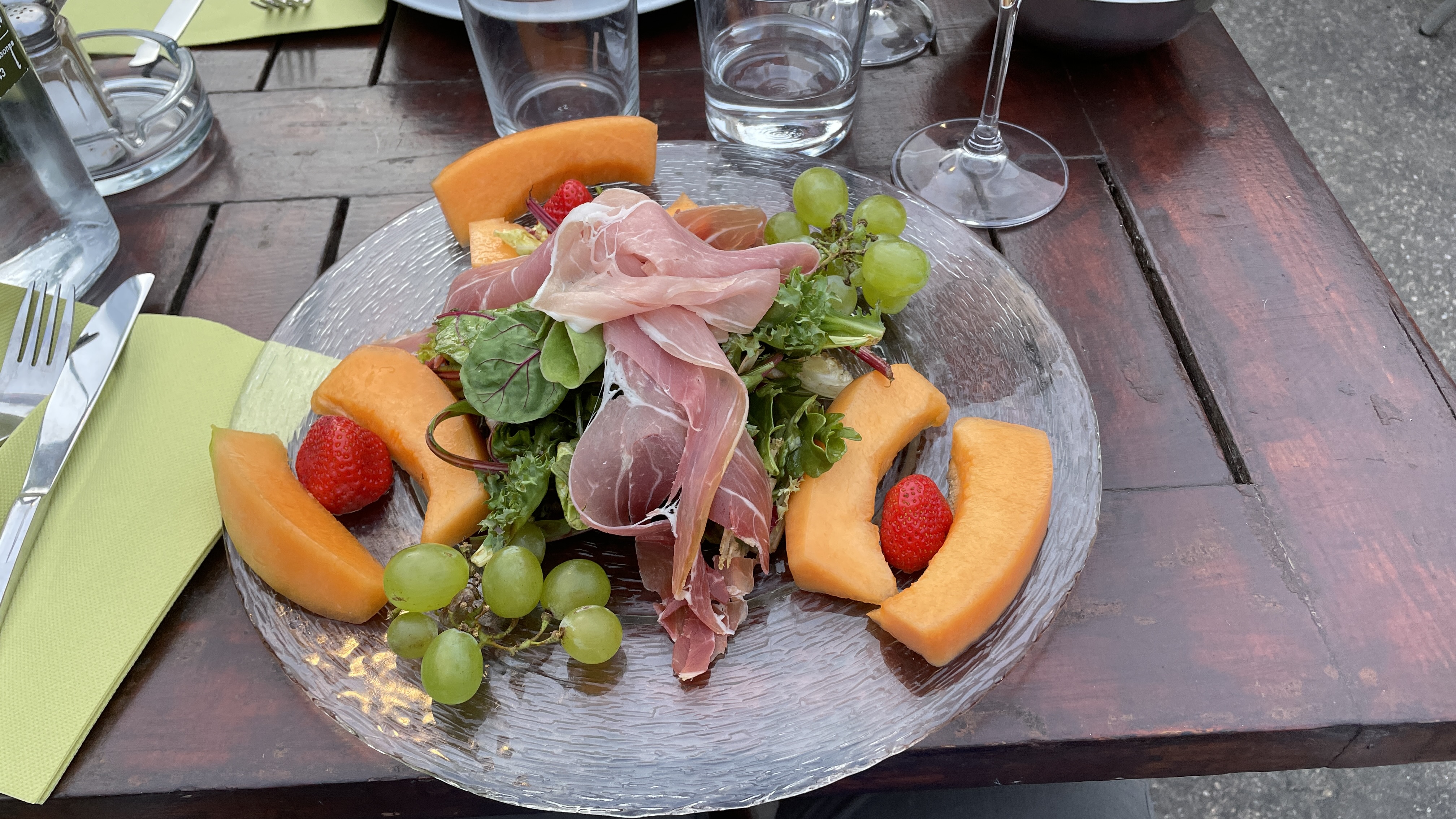 Ce restaurant situé dans la citadelle recevait ce soir là un grand nombre de clients. Vu de l'extérieur, ça faisait un peu usine, surtout quand on voyait les serveurs s'activer entre les tables. La carte était assez fournie. La salade que nous avons choisie était copieuse, variée.