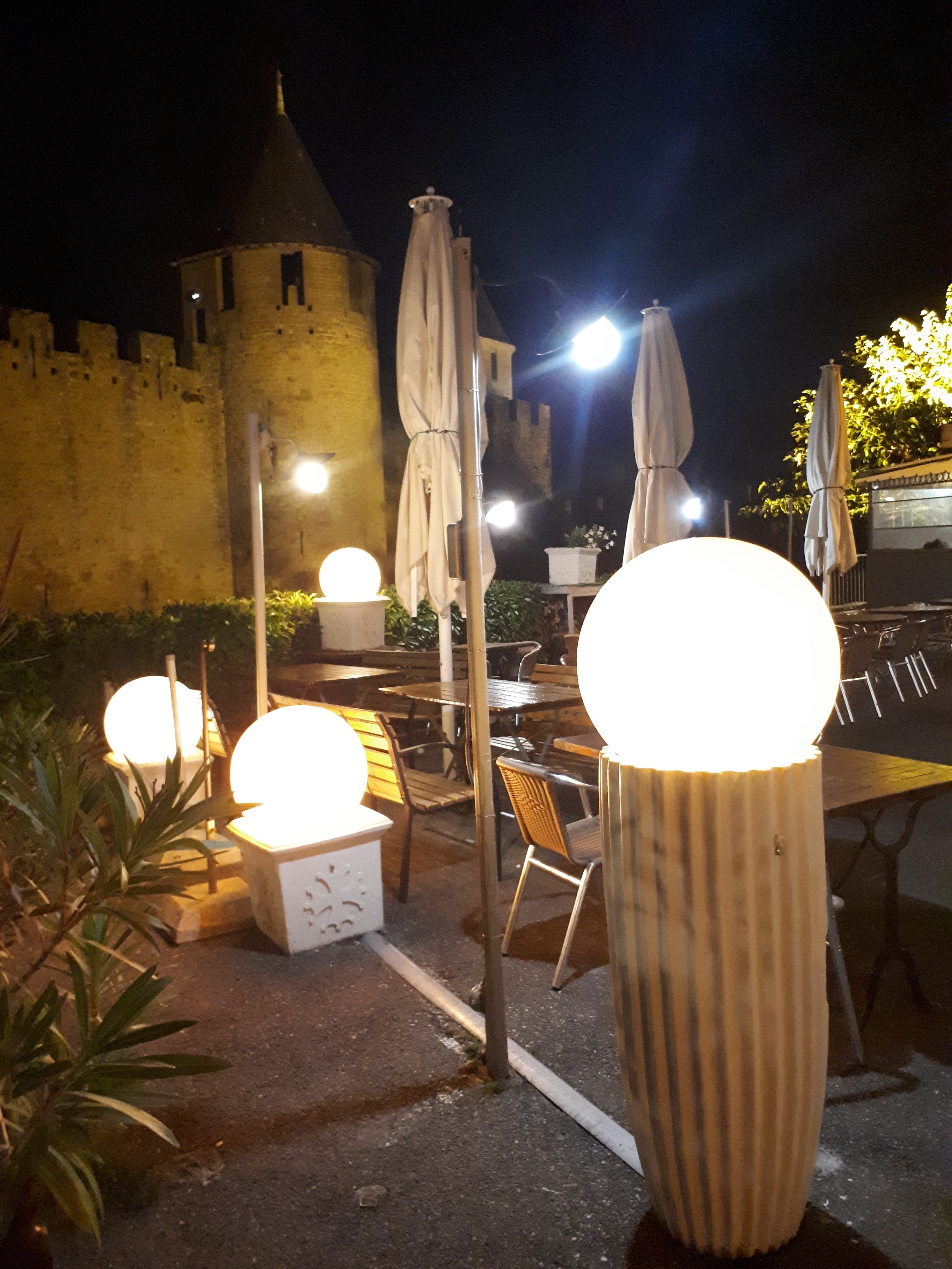 Restaurant avec terrasse sympathique au pied du château comtal . -repas vraiment rien d’extraordinaire plateau de charcuterie bas de gamme , cassoulet pas mauvais mais il y a beaucoup mieux dans la région , digestif offert à la fin du repas -Quand au service … les serveurs(es) pas du tout agréable à la limite de l’impolitesse , la table n’est pas débarrasser de tout le long du repas ( verres d’apéritif , bouteilles vide Ect…) on se retrouve vite avec une table en bordel et même les serveurs(se) ne savent plus ou mettre les plats qui arrivent ! Je ne recommande pas pour les gens qui aiment la qualité