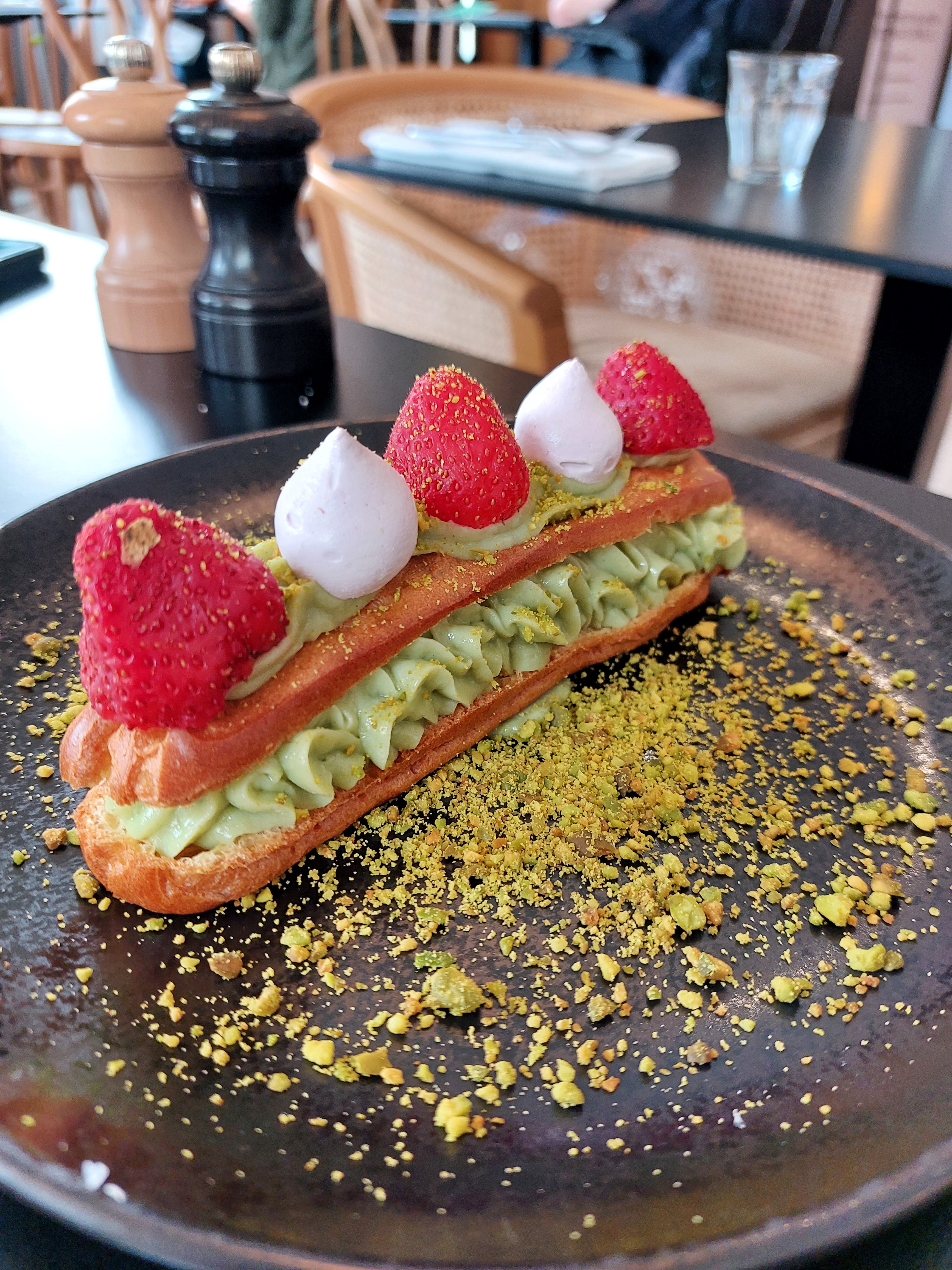 Lieu agréable,un peu bruyant quand même Tres bonne pâtisserie un délice Entree et plat très bon,seul petit bémol les poireaux émincés avaient cette sensation de cailloux au moment de le manger(peut etre pas assez lavés) Sinon serveurs très gentil,moment agréable