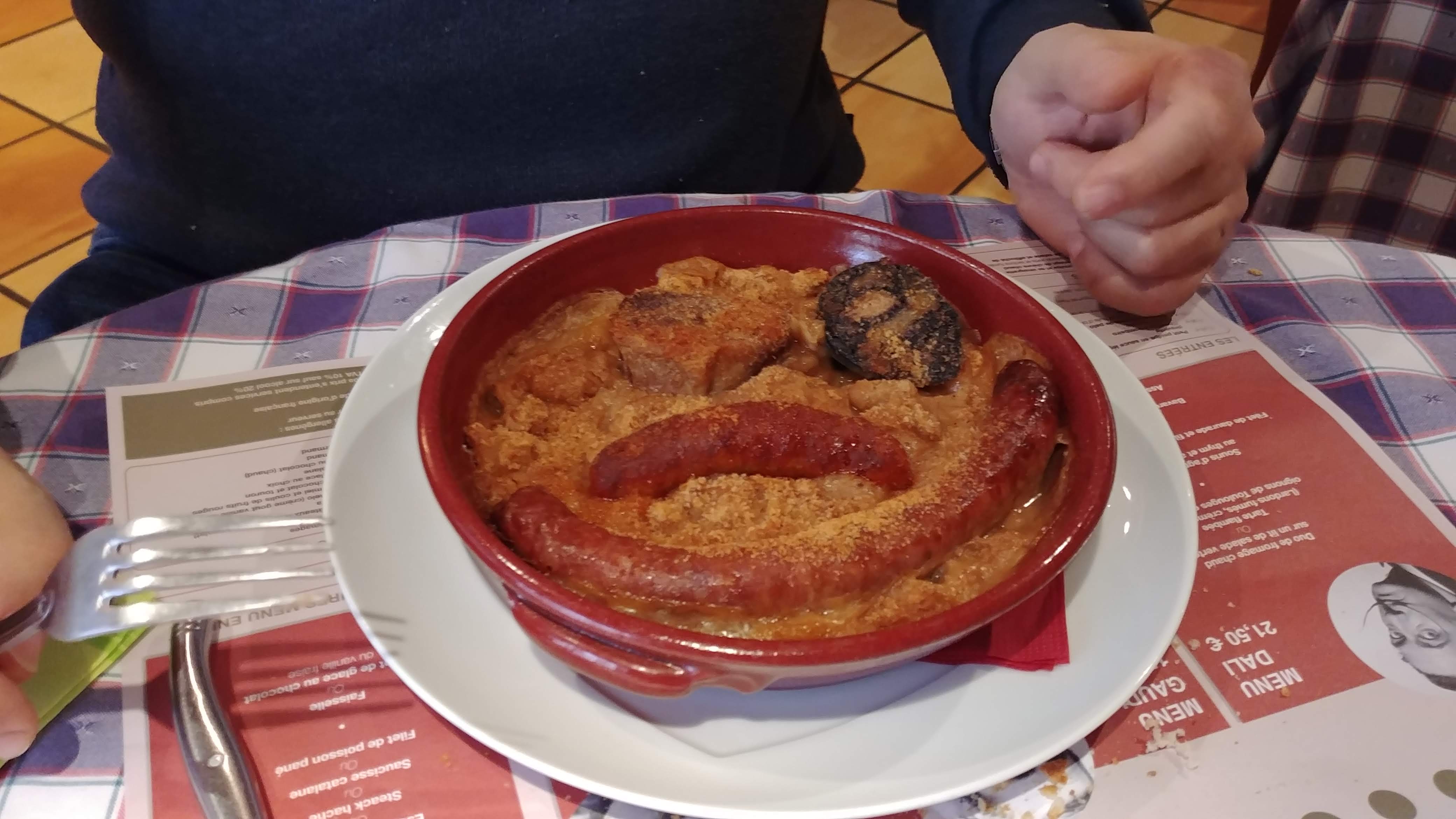 Accueil très sympathique. Plats généreux et goûteux. Mis en place immédiate d'une chaise haute pour l'enfant. Repas enfant fourni rapidement. Vous trouverez de la cuisine catalane, portugaise. Bonne cuisine du soleil. Perso, j'ai adoré le cassoulet d'aqui. Maintenant sieste.