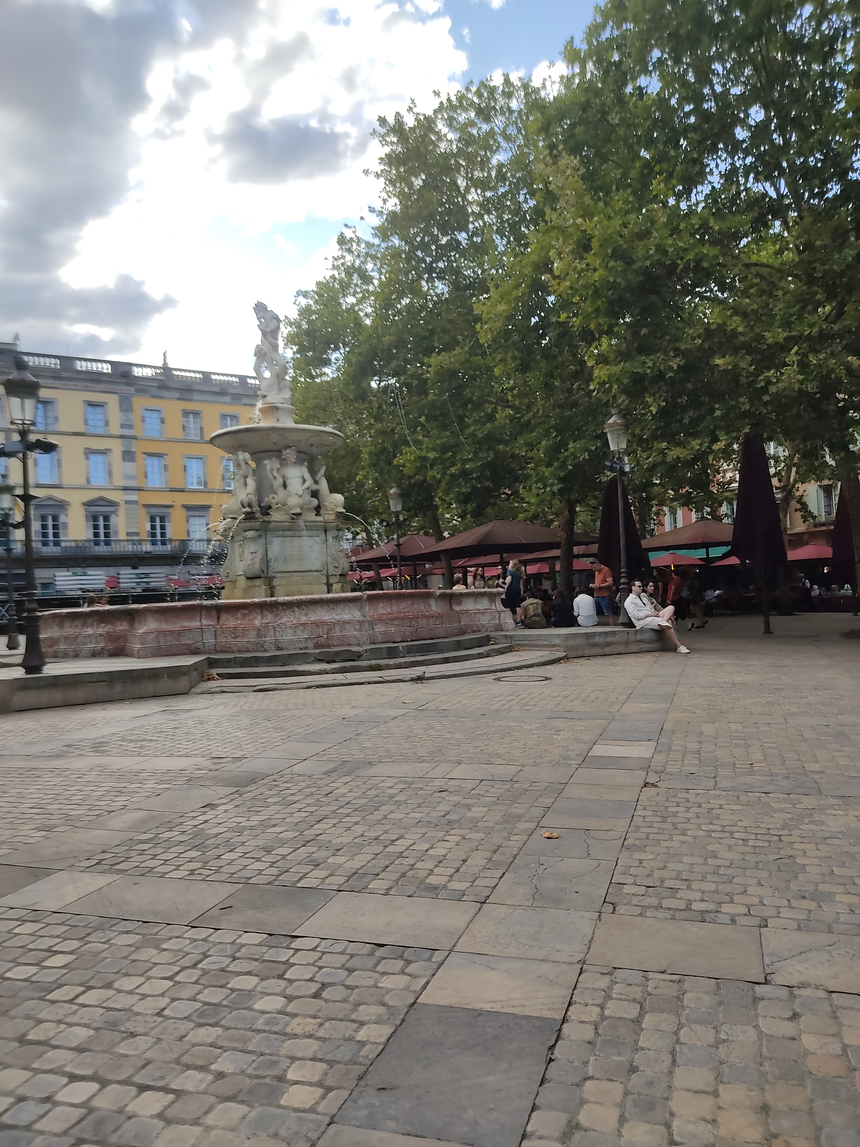Super accueil du personnel . Dans une petite rue près de la place donc moins de monde mais on entend les animations. Nous avons pris une pizza au saumon pour 3 (1 adulte et 2 enfants, 10 et 4 ans), ultra bonne avec persillade, un régal même la croûte ☺️ et une salade chèvre melon extra avec ses tomates et morceaux de noix. J'ai adoré les parapluie en haut de la rue. Prix vraiment raisonnable avec une noisette à 1,50 et la pizza saumon à 13e, salade 10e. Parfait