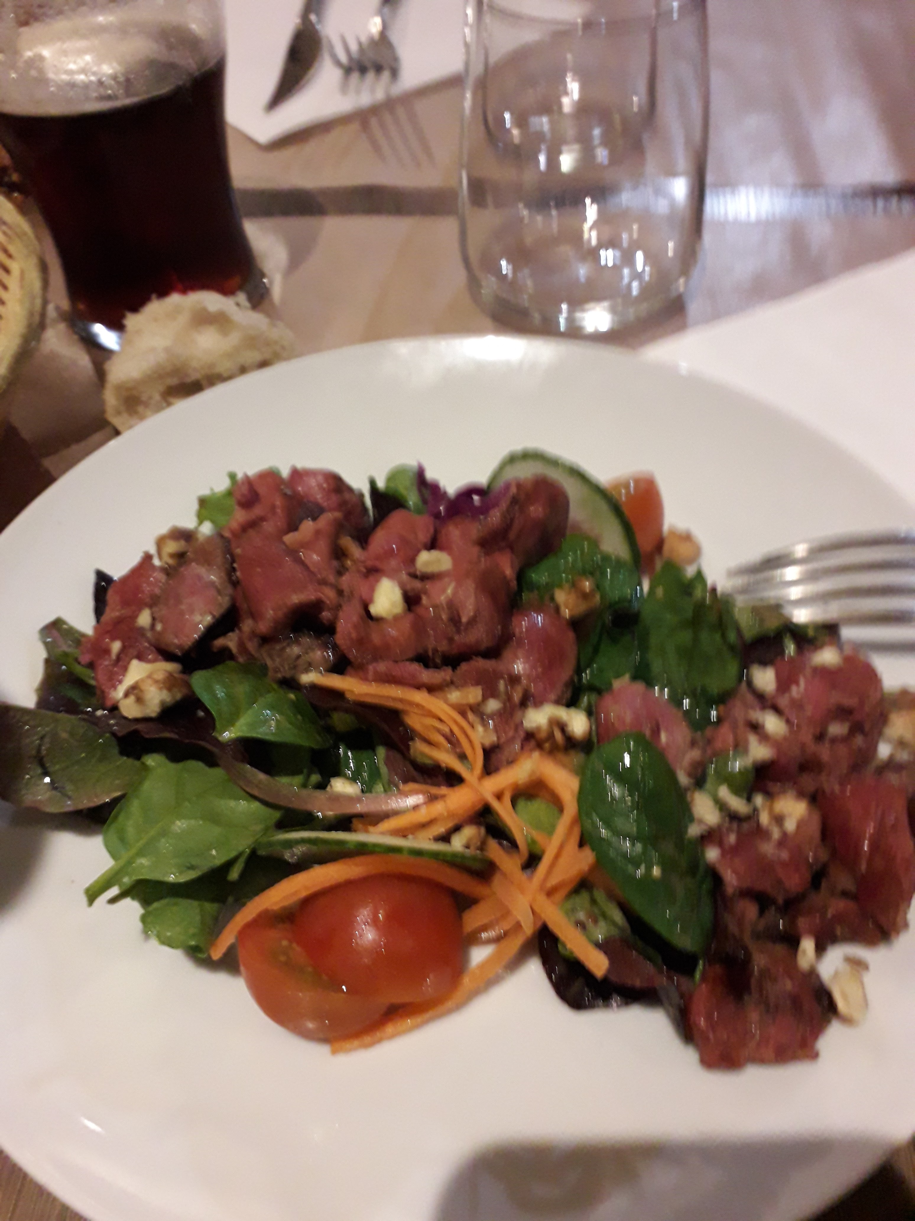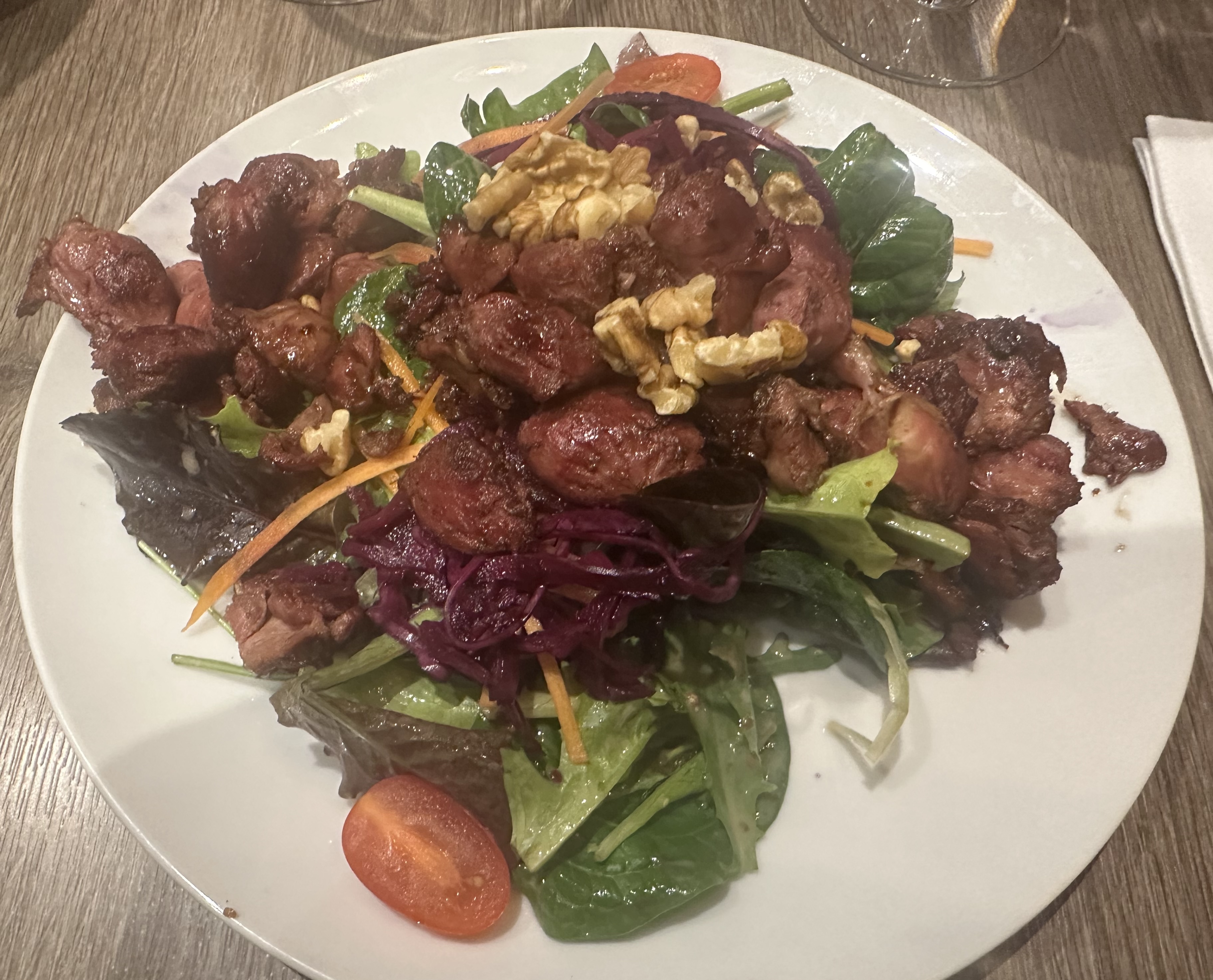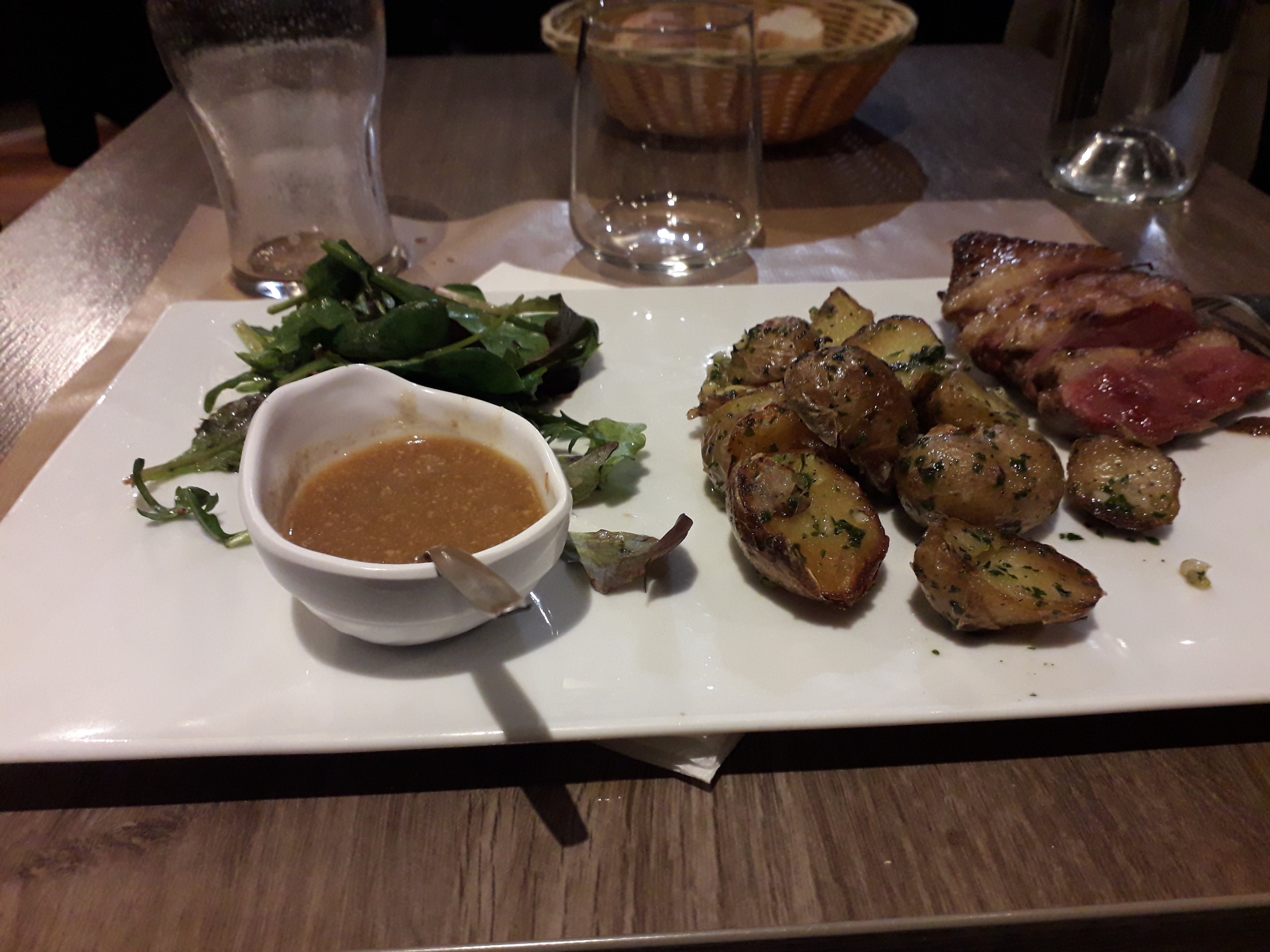 Jouissance culinaire, salade de gesier au top et magres de canard cuit nickel. À première vue je trouvais que le plat était petit par rapport à l'entrée mais au final le repas était juste parfait, pour 20€ c'est à conseiller.