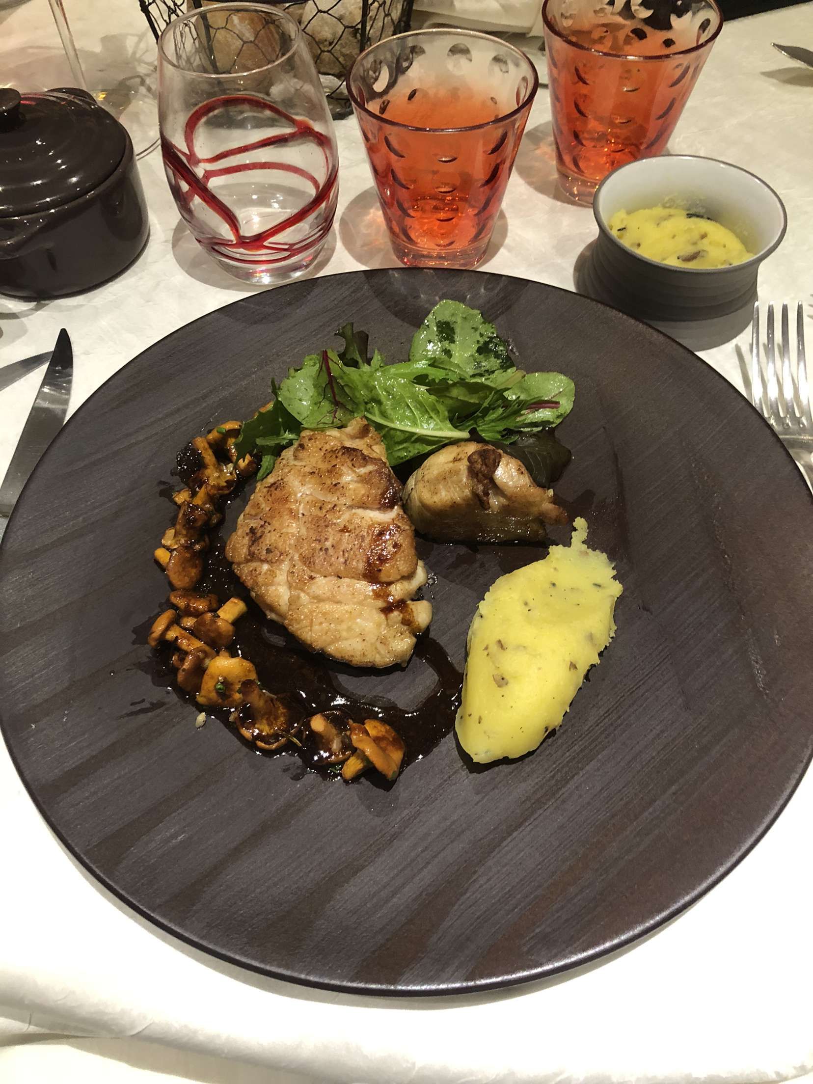 Excellent accueil....nous etions dans une petite salle tres cosy.....Concernant les entrées rien à redire, ( voir les photos) par contre tous les plats étaient accompagnés uniquement d'une purée aux truffes et de 4 chanterelles pas une ombre de légumes malheureusement, un peu faible pour ce standing.....et du coups je trouve le prix que nous avions payé était un prix trop élevé.