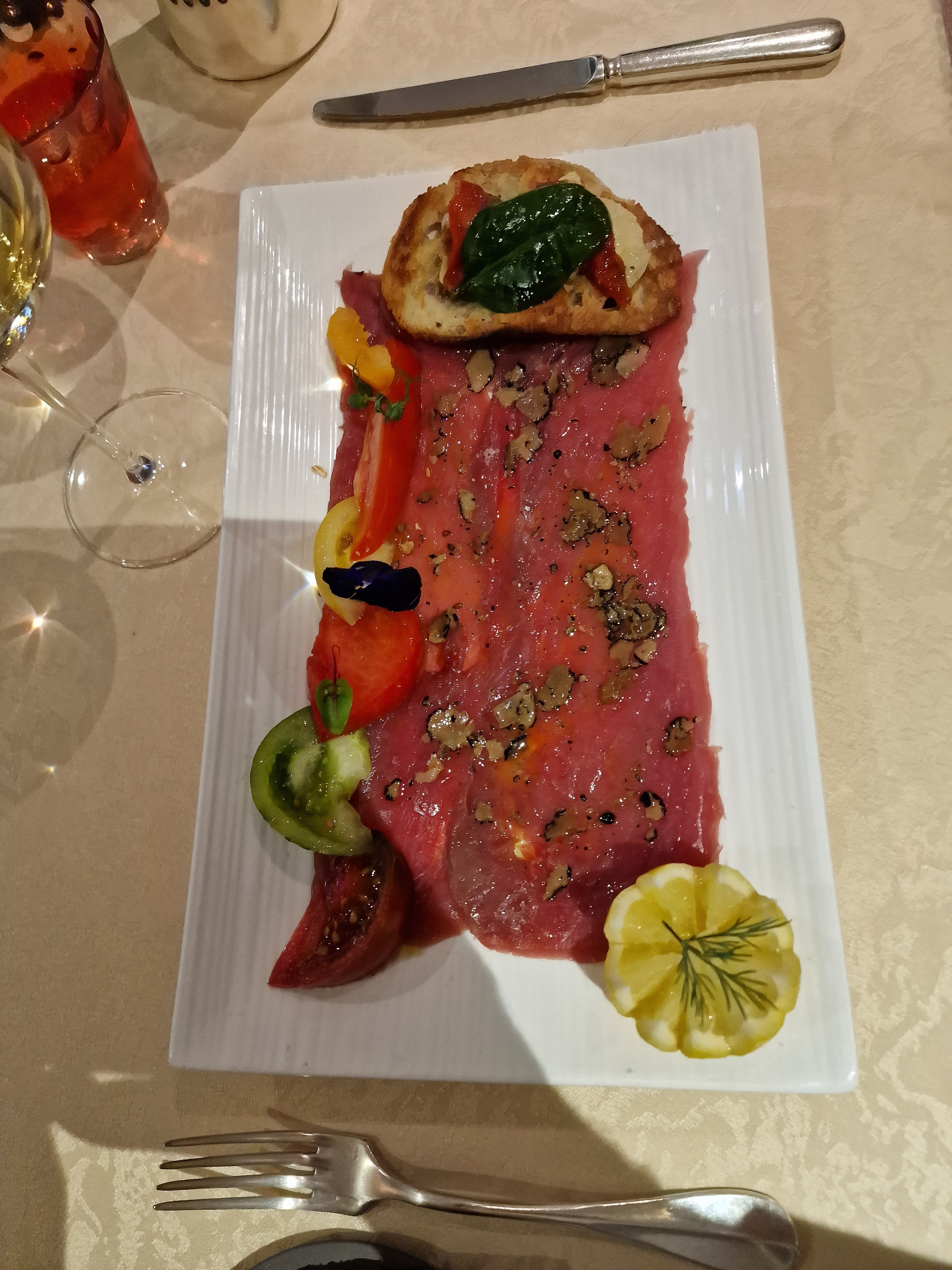 Accueil chaleureux.... Carpaccio de thon aux truffes une tuerie....