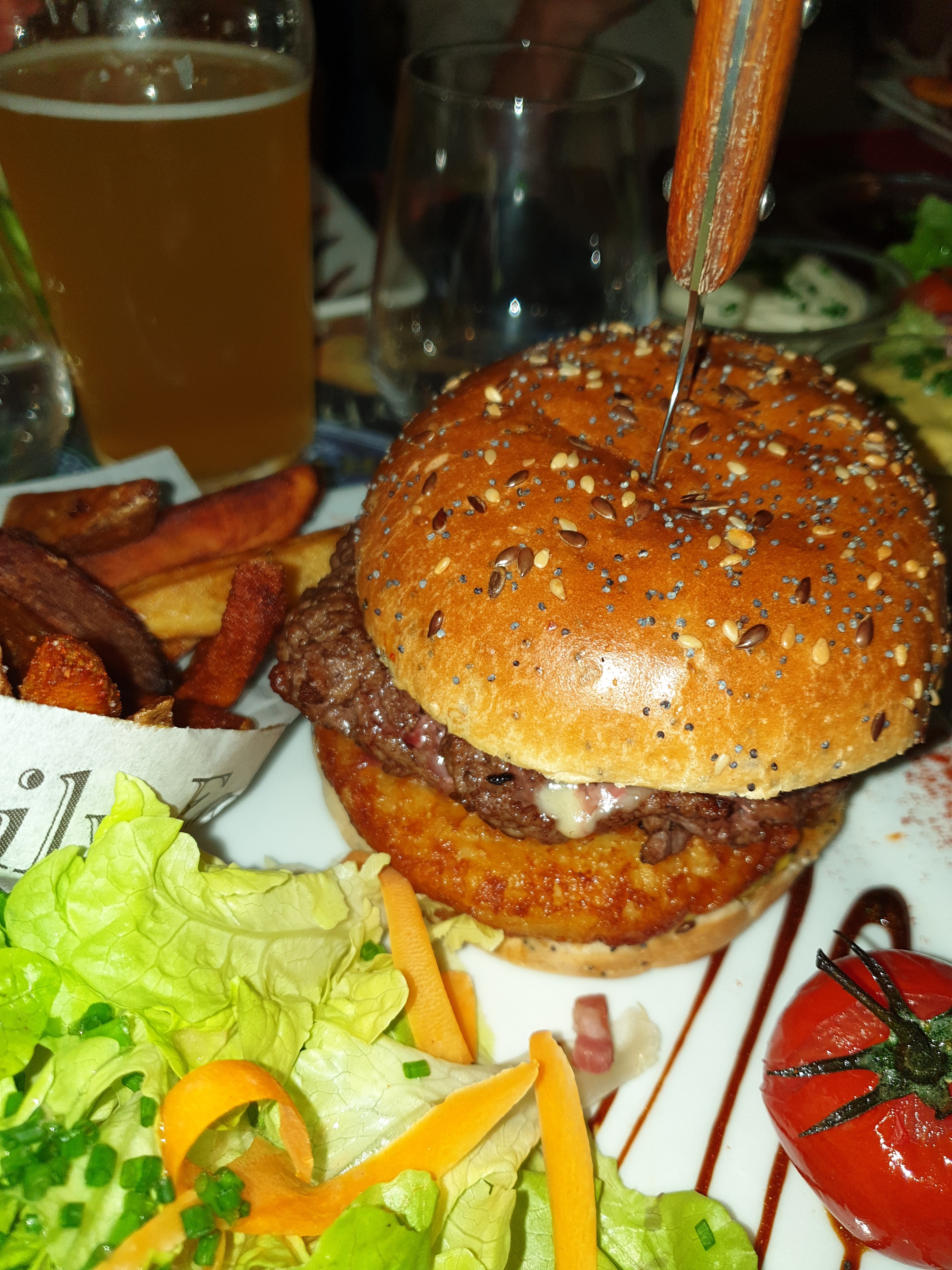 La flammekueche avec des frites coupées en morceaux pour remplacer des pommes de terre, les produits de piètre qualité. L’hamburger a 17euros40 avec un steak qui ne fait même pas la moitié de la superficie du burger. Une grosse blague.
