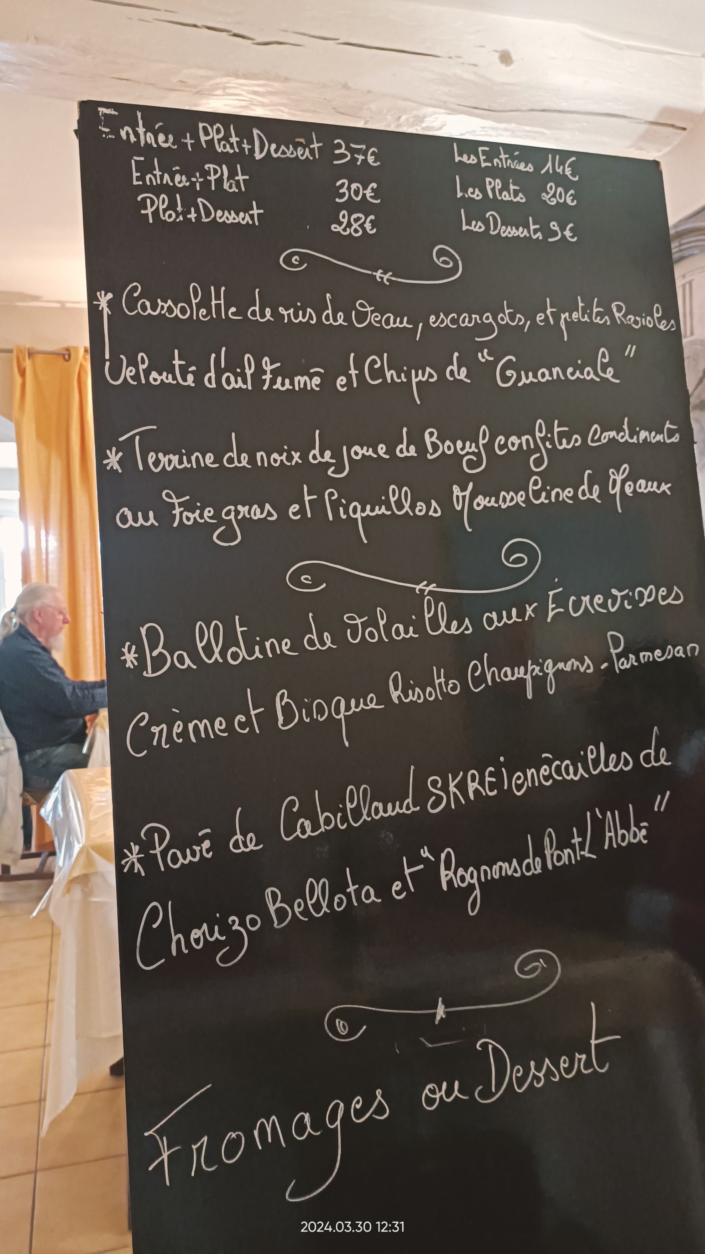 Arrêt dans ce restaurant lors de notre voyage. Le service et l'amabilité des deux personnes présentes étaient au top. Le rapport qualité prix est à revoir . Tarifs élevés pour la qualité gustative. (rien d'exceptionnel.) Belle présentation des assiettes. Fait maison. Ambiance très vieillotte avec odeur de renfermé. J'ai eu froid. Un bon coup de peinture blanche pour rajeunir, changer les rideaux et les couleurs des nappes.
