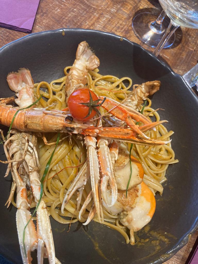 Bonnes pâtes aux crustacés en terrasse au bord du canal royal 😎