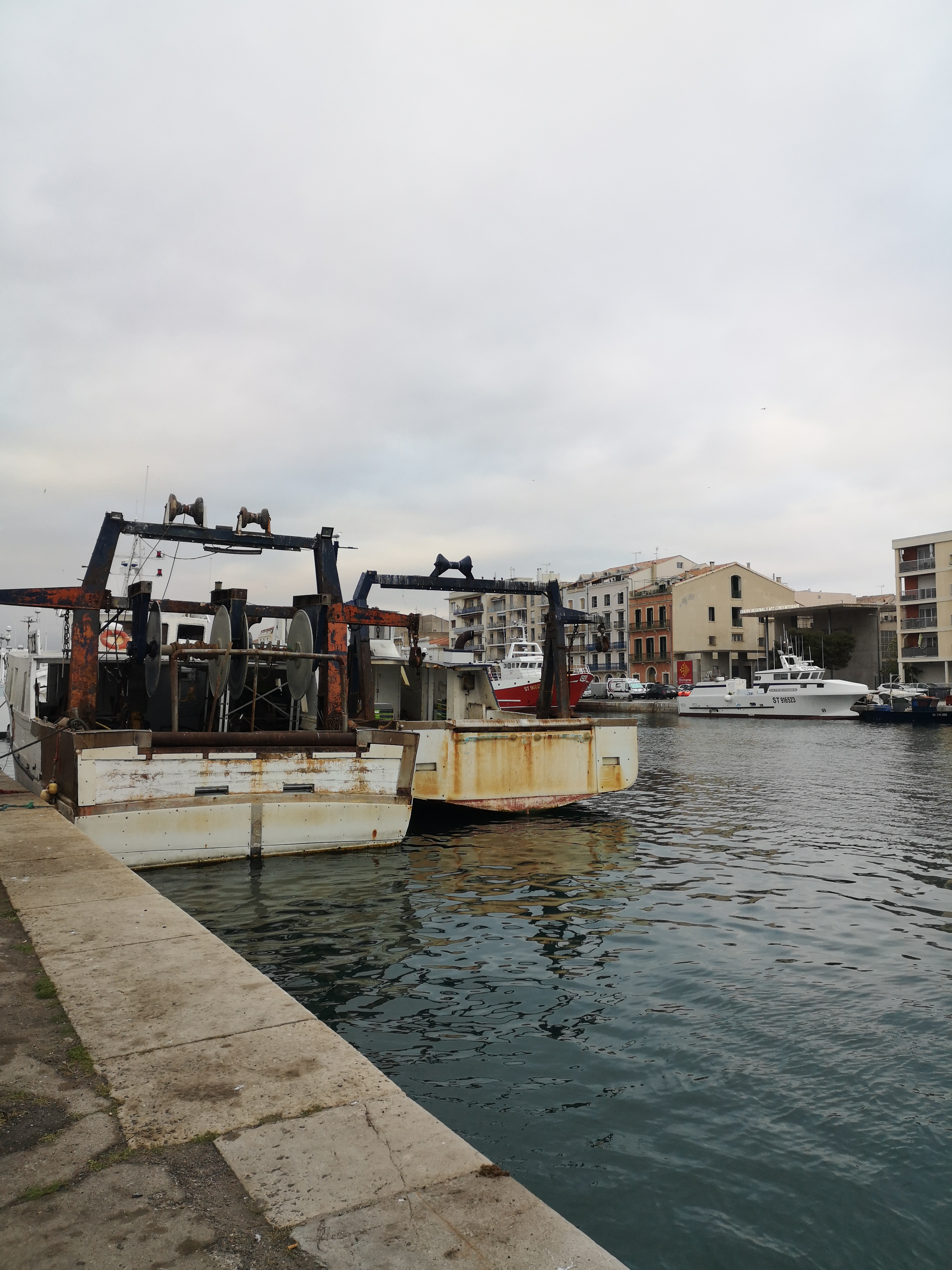Port de Sete, les bateaux de pêche en fond de toile. Lieu idéal pour déguster un bon poisson et des frites maison. L'équipe en salle est très sympa.
