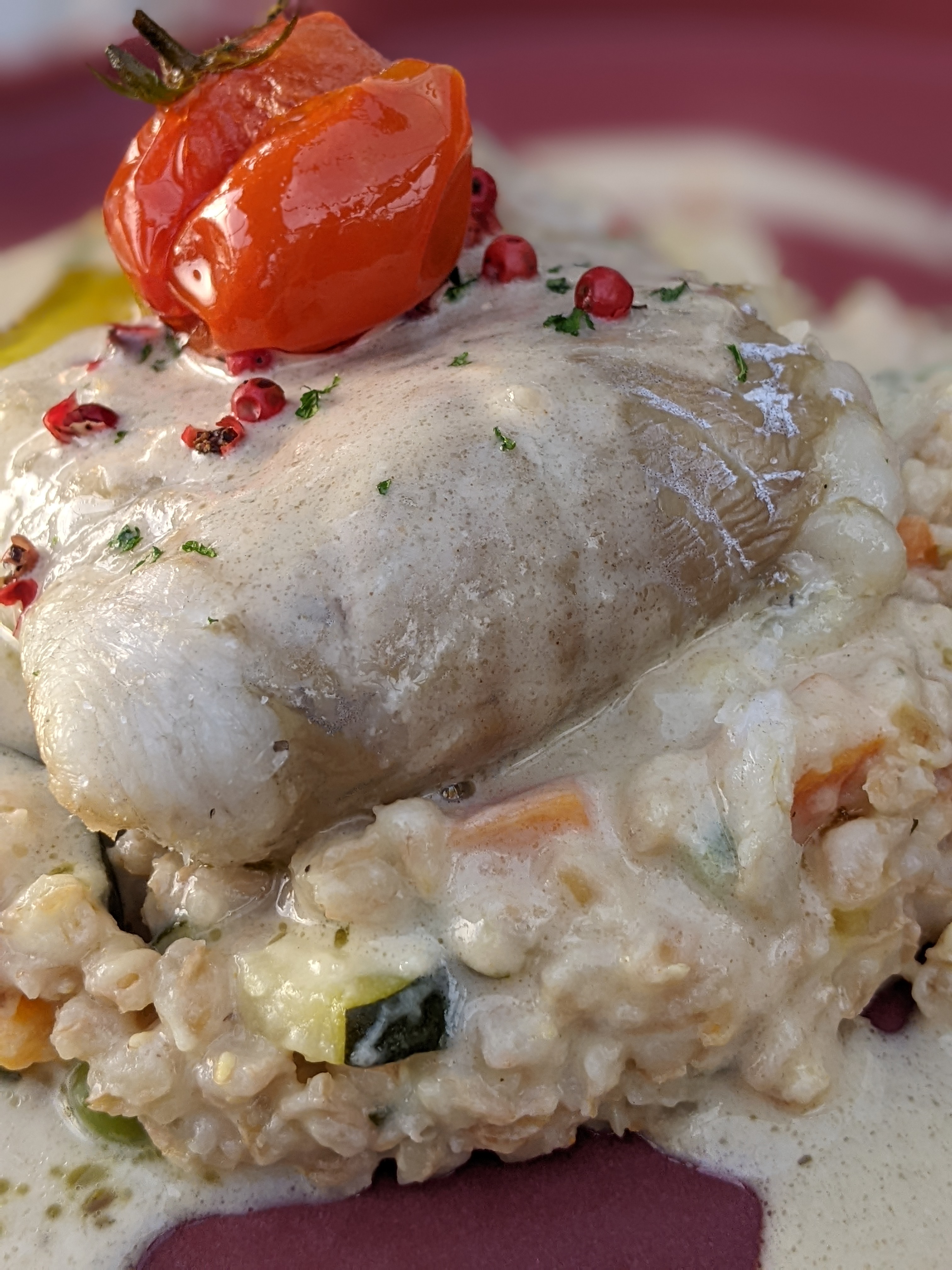 Une vue fantastique sur le coucher de soleil accompagnée d'une nourriture savoureuse et saine, la morue était particulièrement bonne !