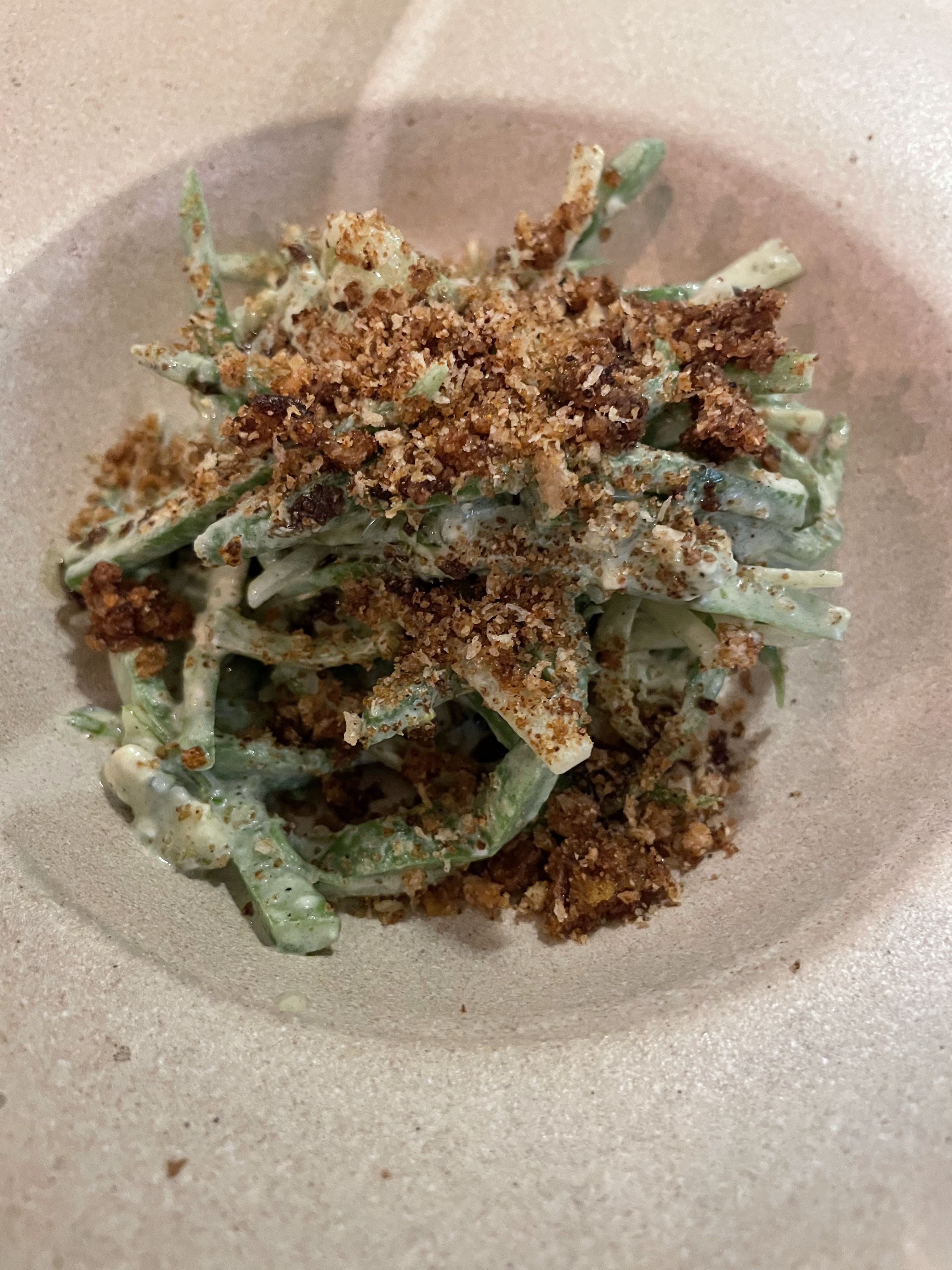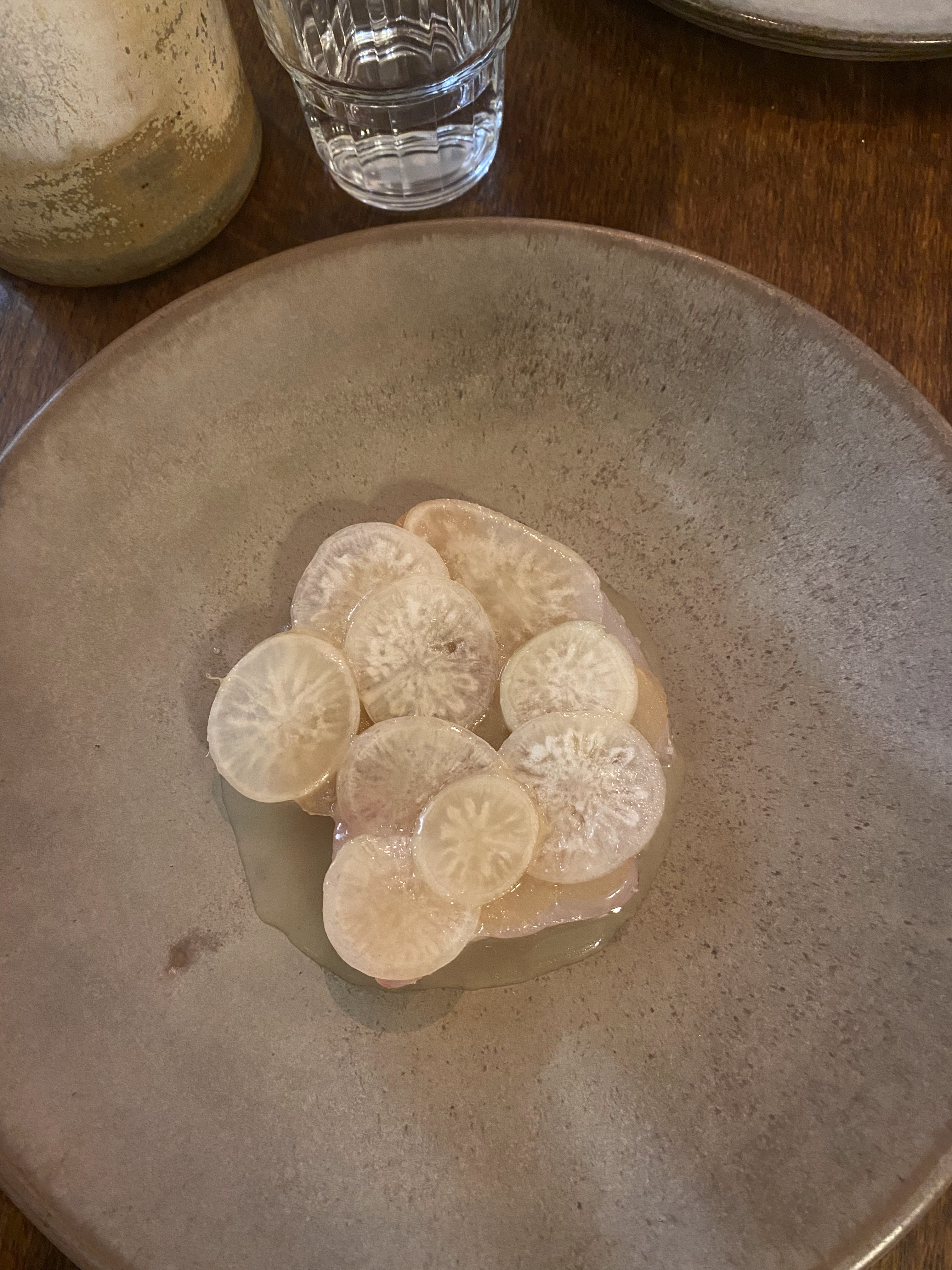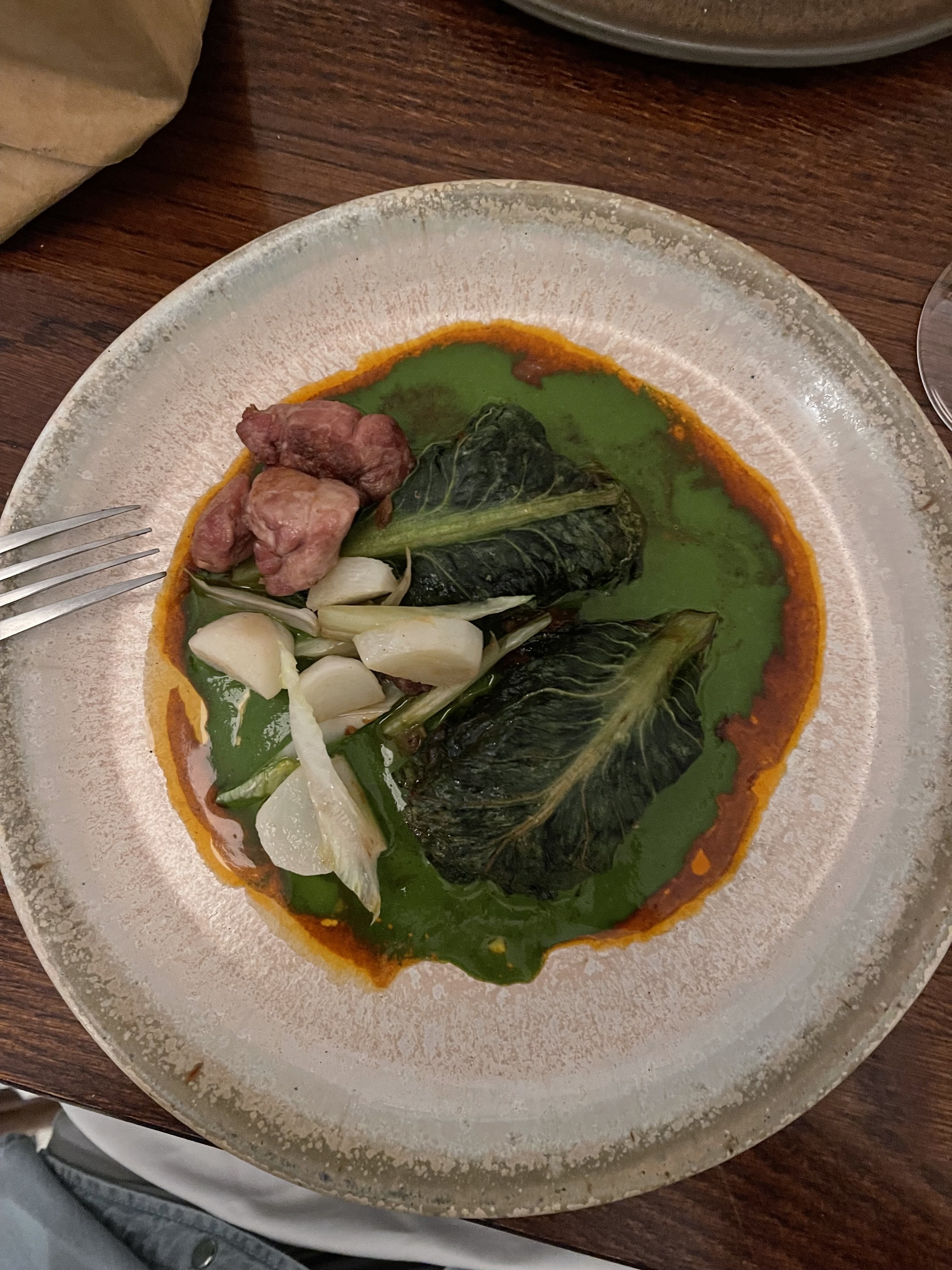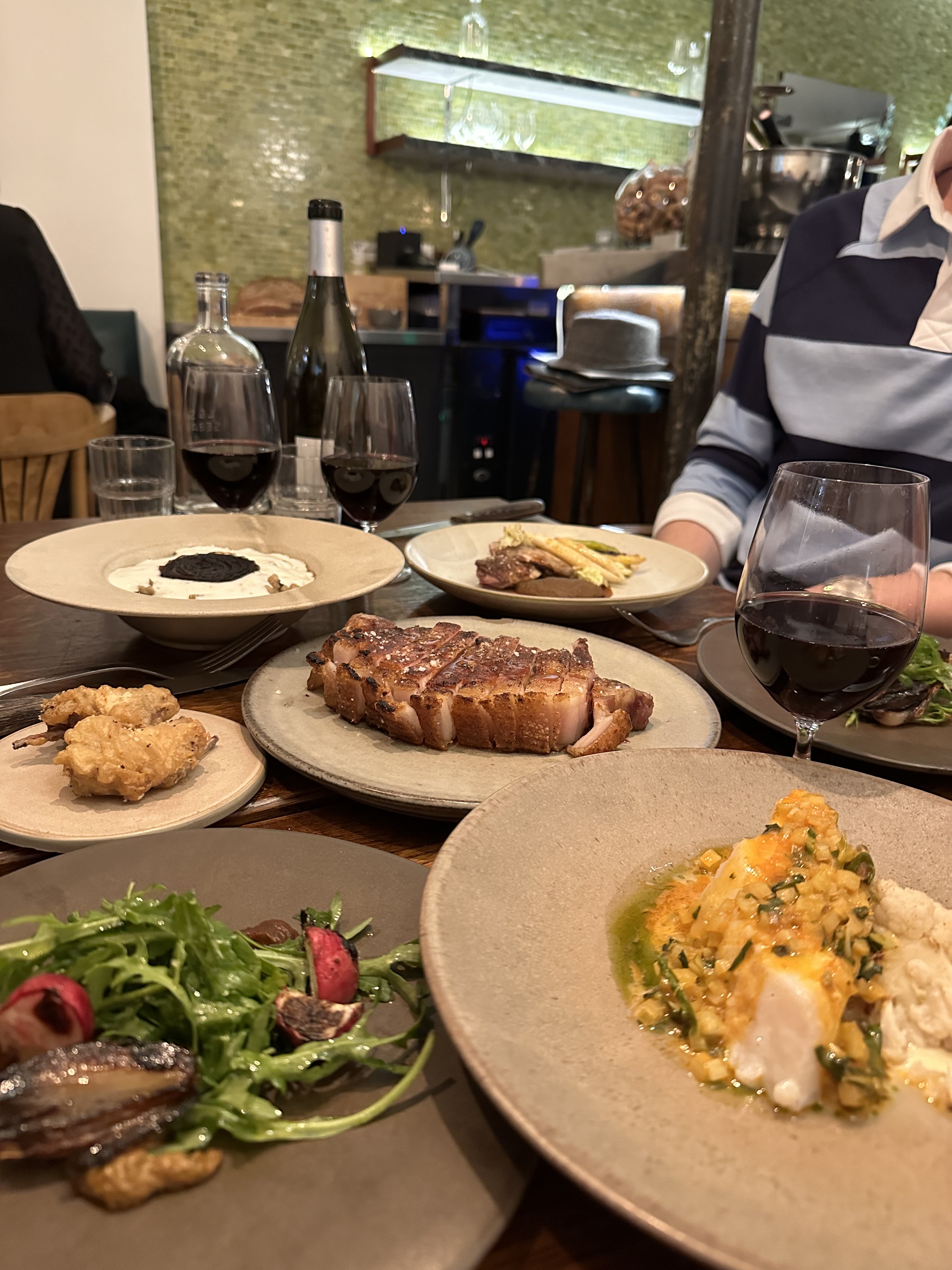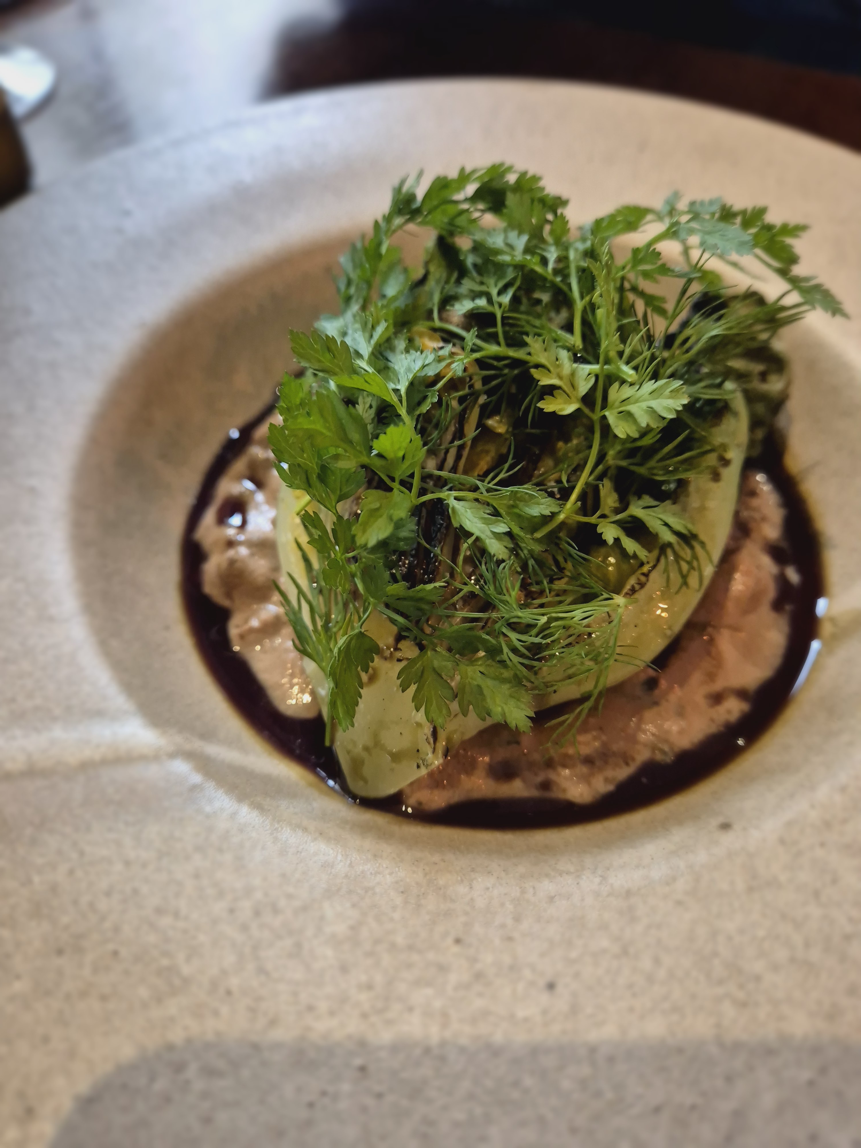 Des plats magnifiques et soigneusement préparés, mettant en vedette des ingrédients de saison. Les légumes sont transcendés et transformés. Les champignons deviennent une poudre mystérieuse saupoudrée sur un plat feuillu. Les asperges grillées sont délicatement présentées sur un plat en céramique, et le Brillat-Savarin (surmonté de tranches de radis fines comme des rasoirs) étonne par sa délicatesse et sa légèreté. Le chef Rob Mendoza est un artiste inspiré et talentueux qui n'a pas peur d'emprunter les chemins les moins fréquentés pour exprimer sa créativité.
