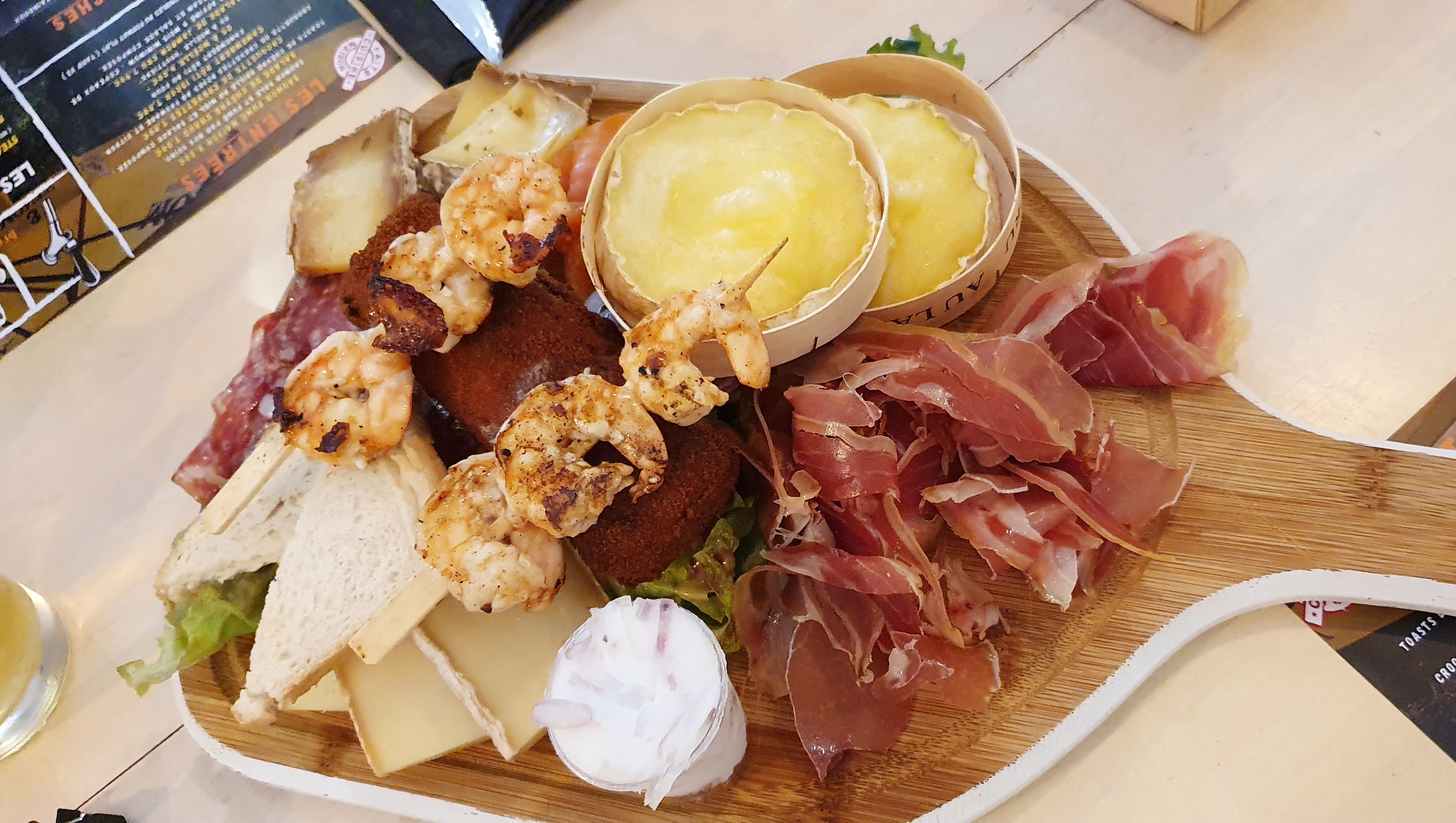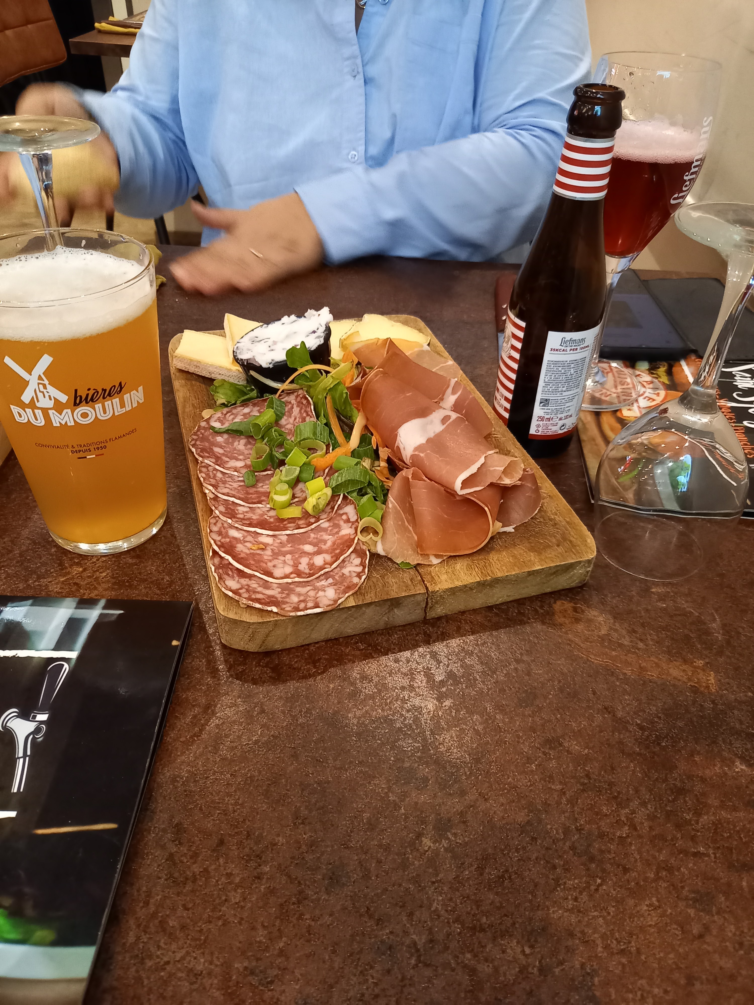 Très bon accueil La planche apéro accompagnée d’une paix dieu est de mise quand on a faim Le burger du chef avec frites maison est un régal La cassolette de scampis à l’ail et les frites étaient un délice! Un café pour finir ( plus de place pour le dessert !) Je recommande vivement