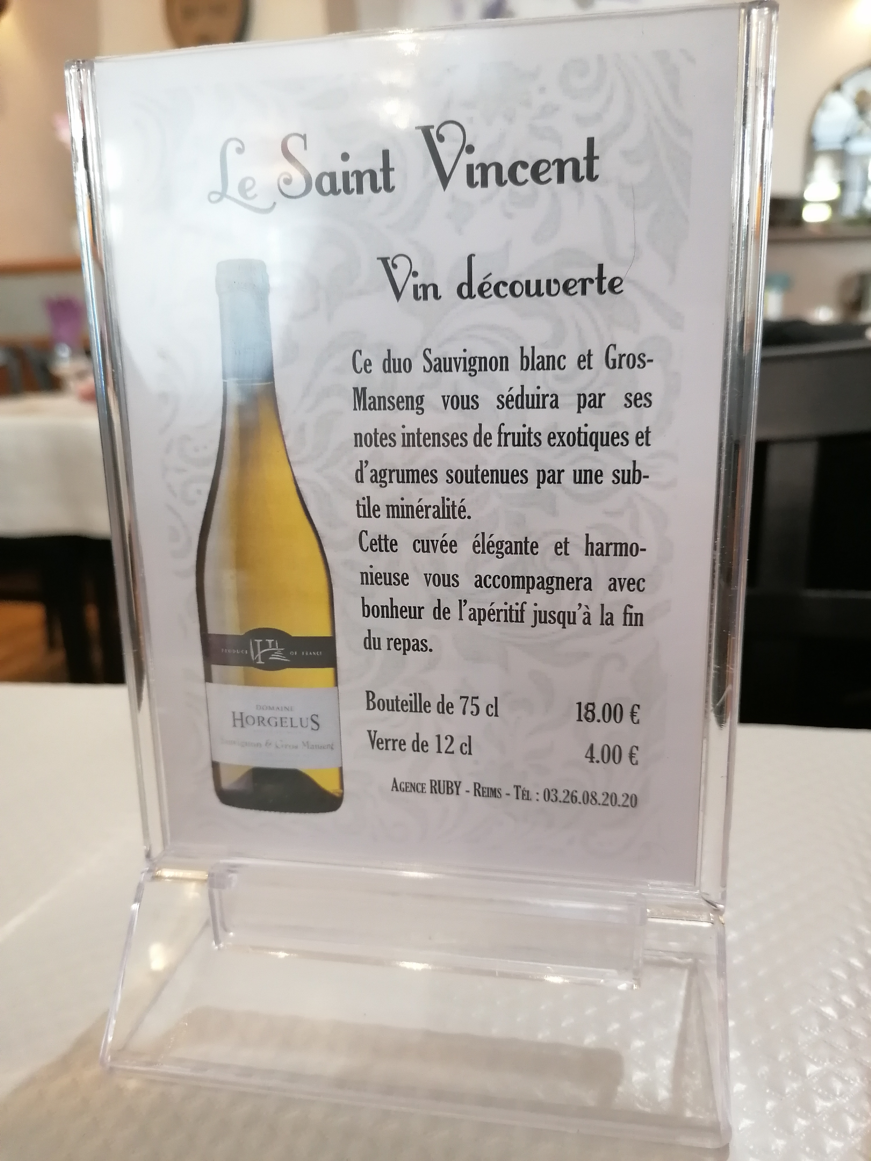 Très bon accueil, personnel disponible et agreable. Nous avons pris le menu complet à 18.50€ rapport qualité prix très bien. De bons produits bien mis en valeur. Si vous devez vous arrêtez manger sur soissons c'est au St Vincent qu'il faut aller !
