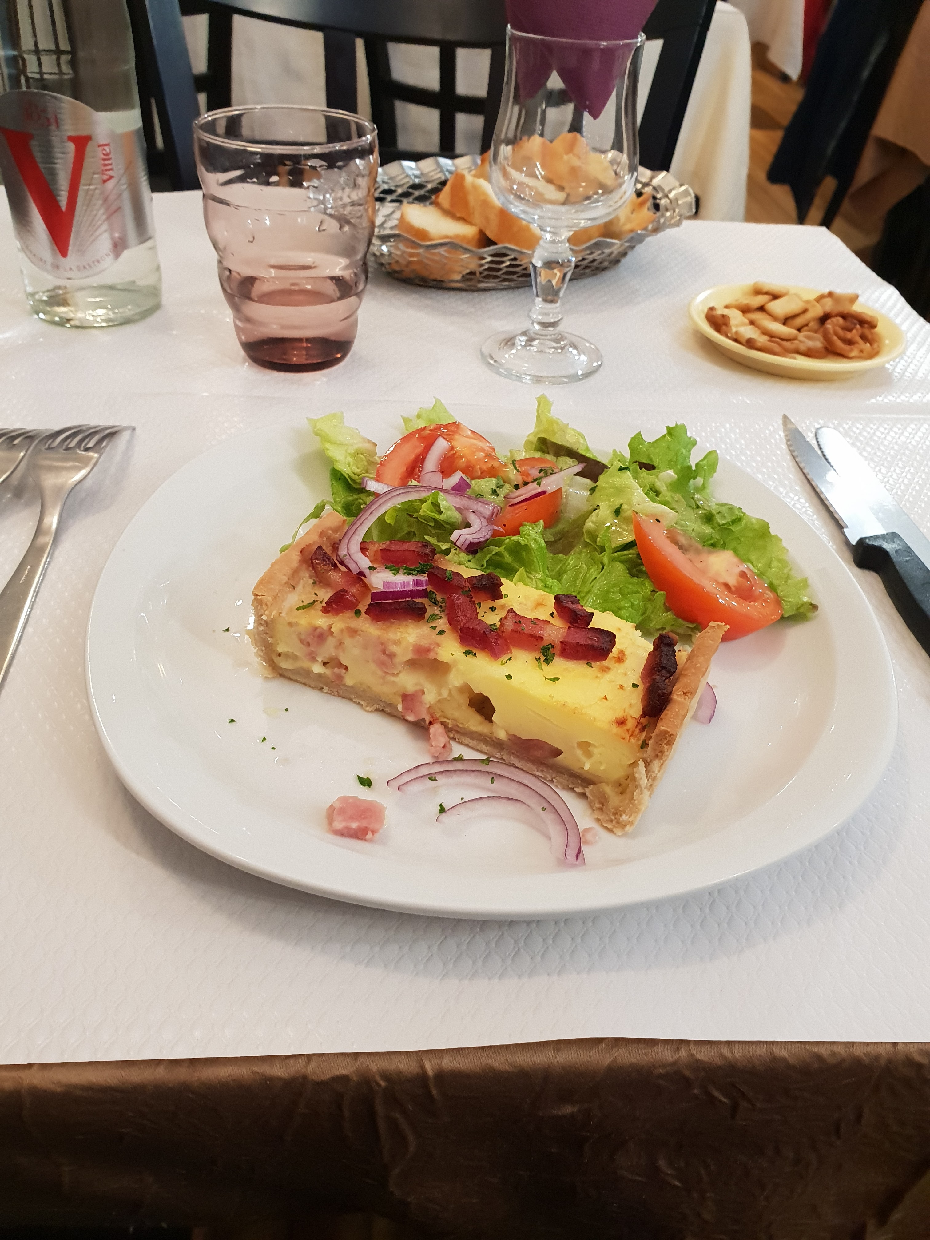 Accueil sympathique... Au départ. Plats corrects. Et nous ne pourrons en dire plus... Nous avons du réclamer le pain et l'eau qui sont arrivés alors que notre repas était plus qu'entamé. Nous avons ensuite attendu la carte des desserts pendant environ 30 minutes... Puis nous sommes partis. Le serveur est passé des dizaines de fois à coté de nous, est allé voir les autres clients plusieurs fois mais nous devions être invisibles... Pourtant installés au milieu de la salle, personne ne s'est inquièté de nous voir sans rien, à attendre. En le disant au moment de payer, pas un geste commercial... Rien. Nous ne reviendrons pas dans cet établissement. Date de la visite : avril 2019