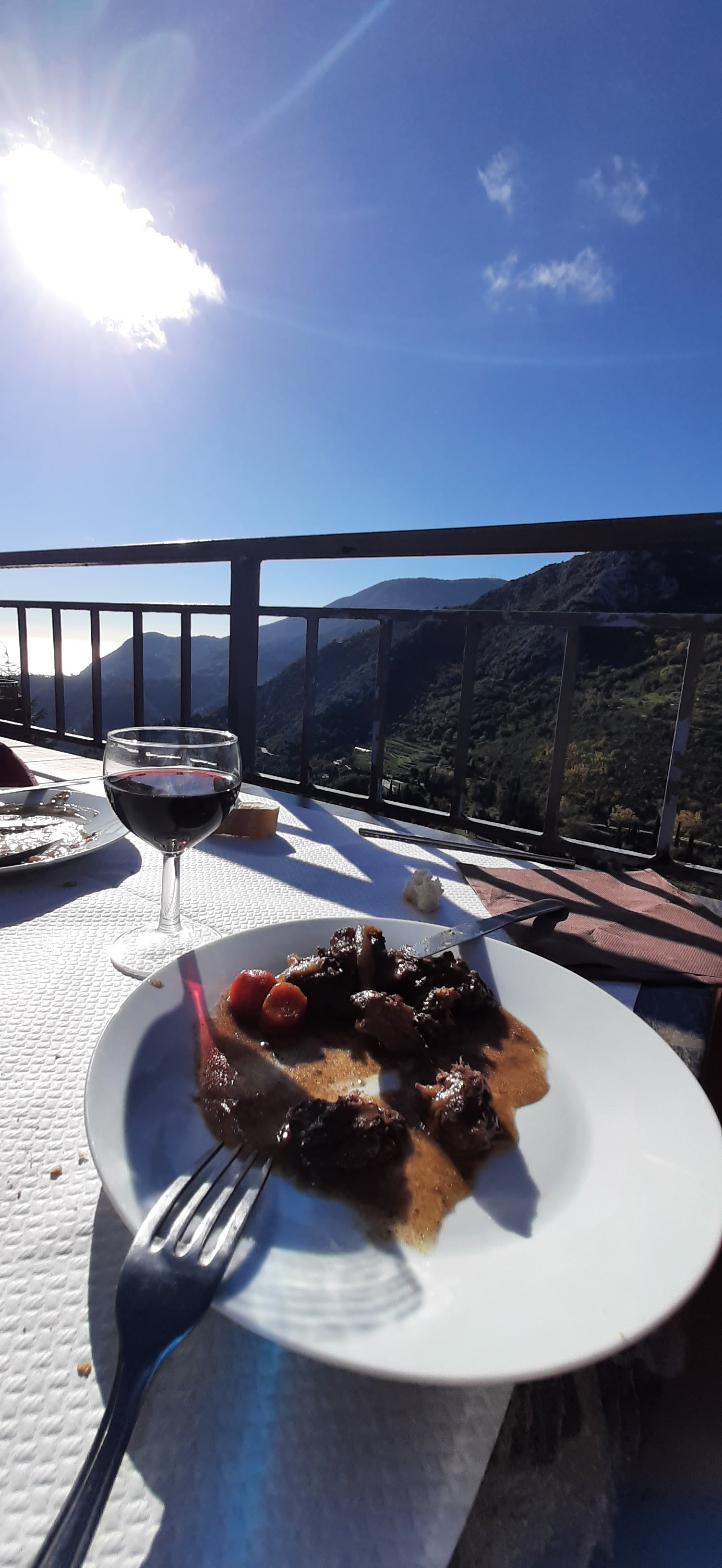 service très chaleureux. un moment de détente autour d'une cuisine traditionnelle. nous avons très bien mangé les plats et desserts excellents. je me suis fait éclater le ventre :) ! prix plus qu'abordable ! le petit musca en apéro savoureux ! s'en ai suivi d'une visite du fort et des ruines du château un peu plus haut.