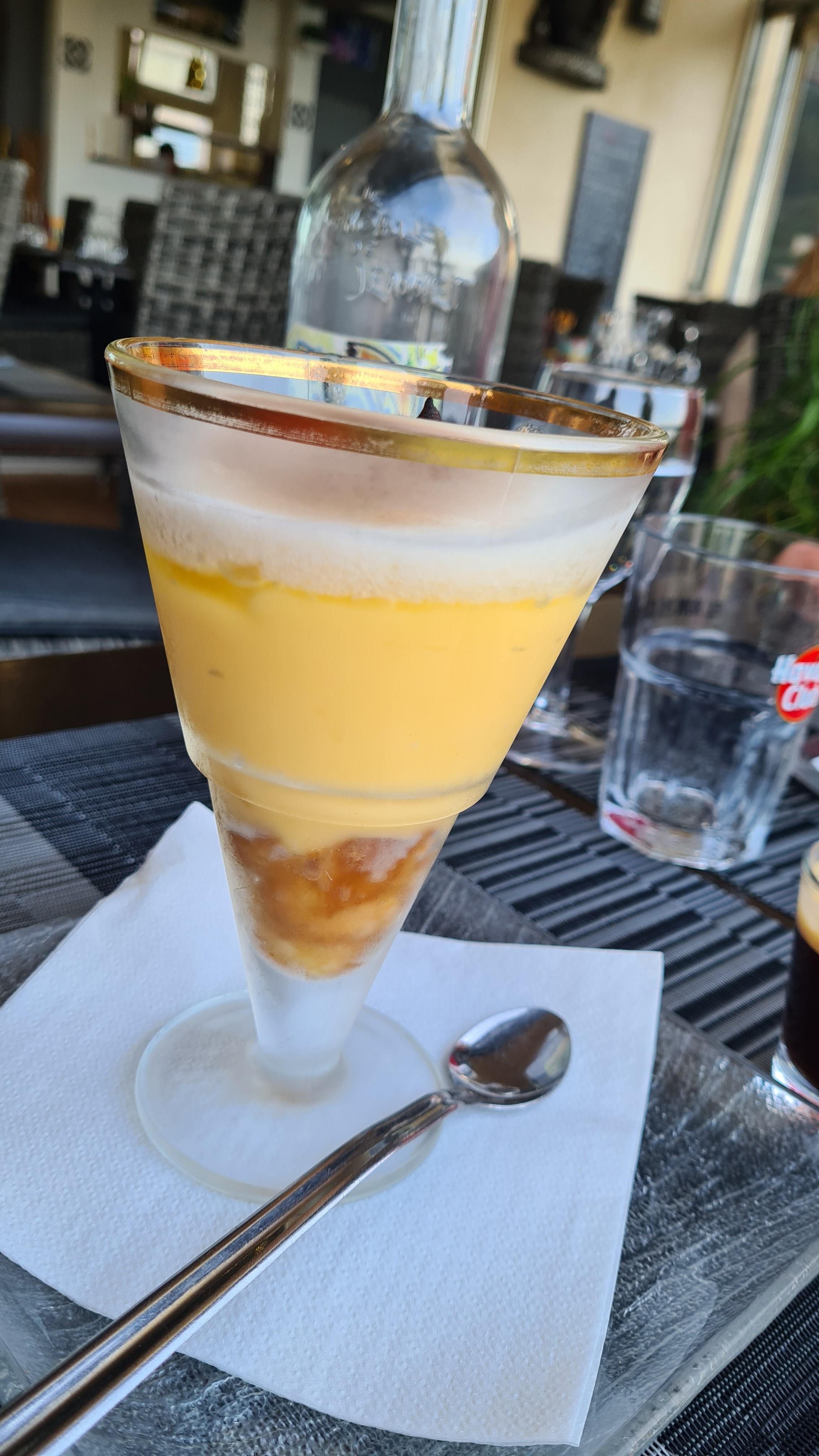 Petit arrêt pour boire un verre. Le serveur ne pouvant pas nous donner de cartes à cause du covid, était pressé pour prendre la commande alors que nous n'avions ni prix ni carte (ne serait-ce que sur ardoise que le serveur pourrait présenter comme le font bon nombre de restaurants ???). Les jus de fruits sont immondes. Trois tonnes de glaçons pour remplir le verre, pas de jus en bouteilles ni pressés, on vous apporte juste un verre à 3€ le jus. Très déçu dans un cadre aussi beau on s'attend à mieux !