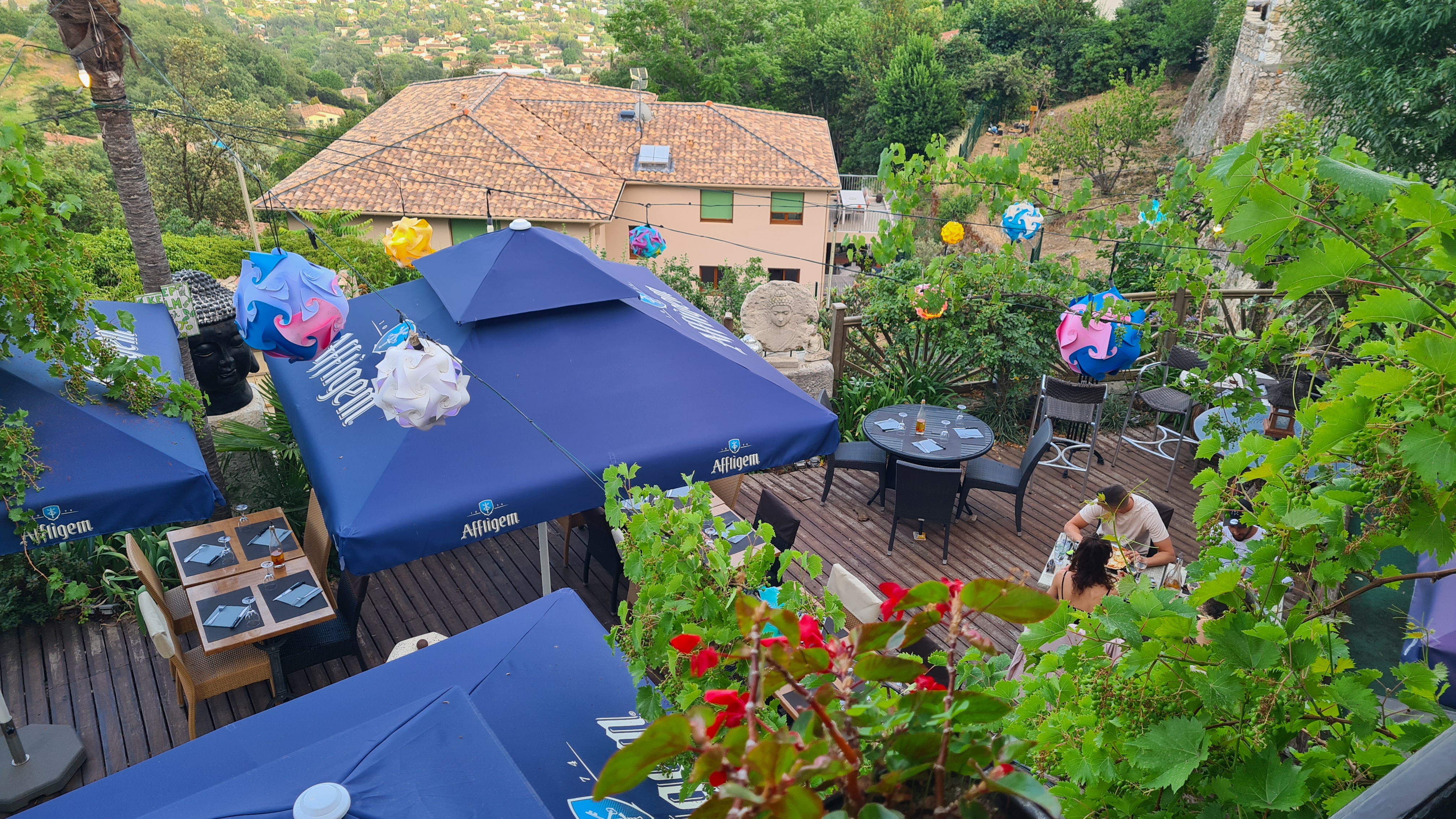 Endroit très sympathique pour boire un coup avec une vue mer dans le village de Saint Jeannet
