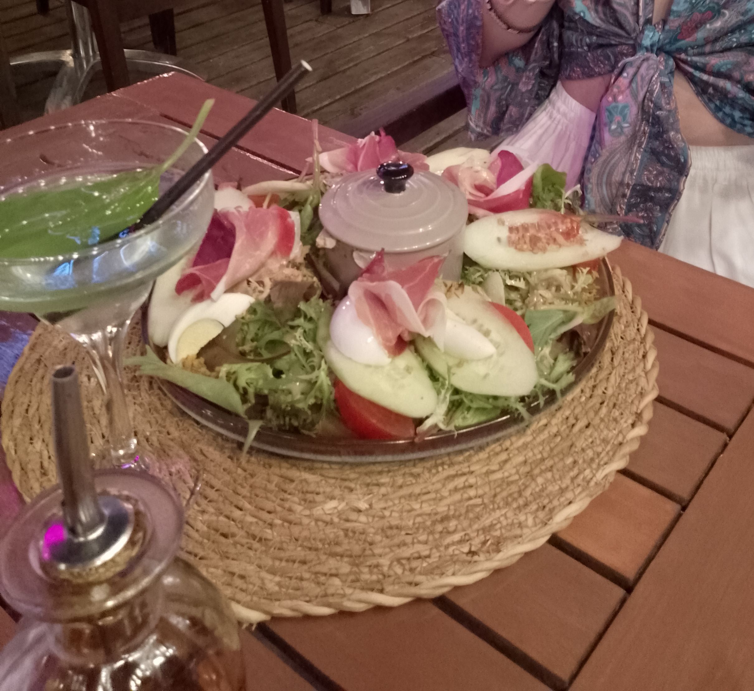 Une pause gourmande et équilibrée, très appréciée. La terrasse ombragée fait son office et la vue sympathique à quelques mètres de la marina est la foi également très appréciable. Service sympathique, rapide, et à l’écoute. Nous avons opté pour 2 salades et des nuggets de poulets, et tout était très généreux (cela devient rare pour le souligner !) et également savoureux, avec des produits frais. Une belle expérience estivale. Je recommande.