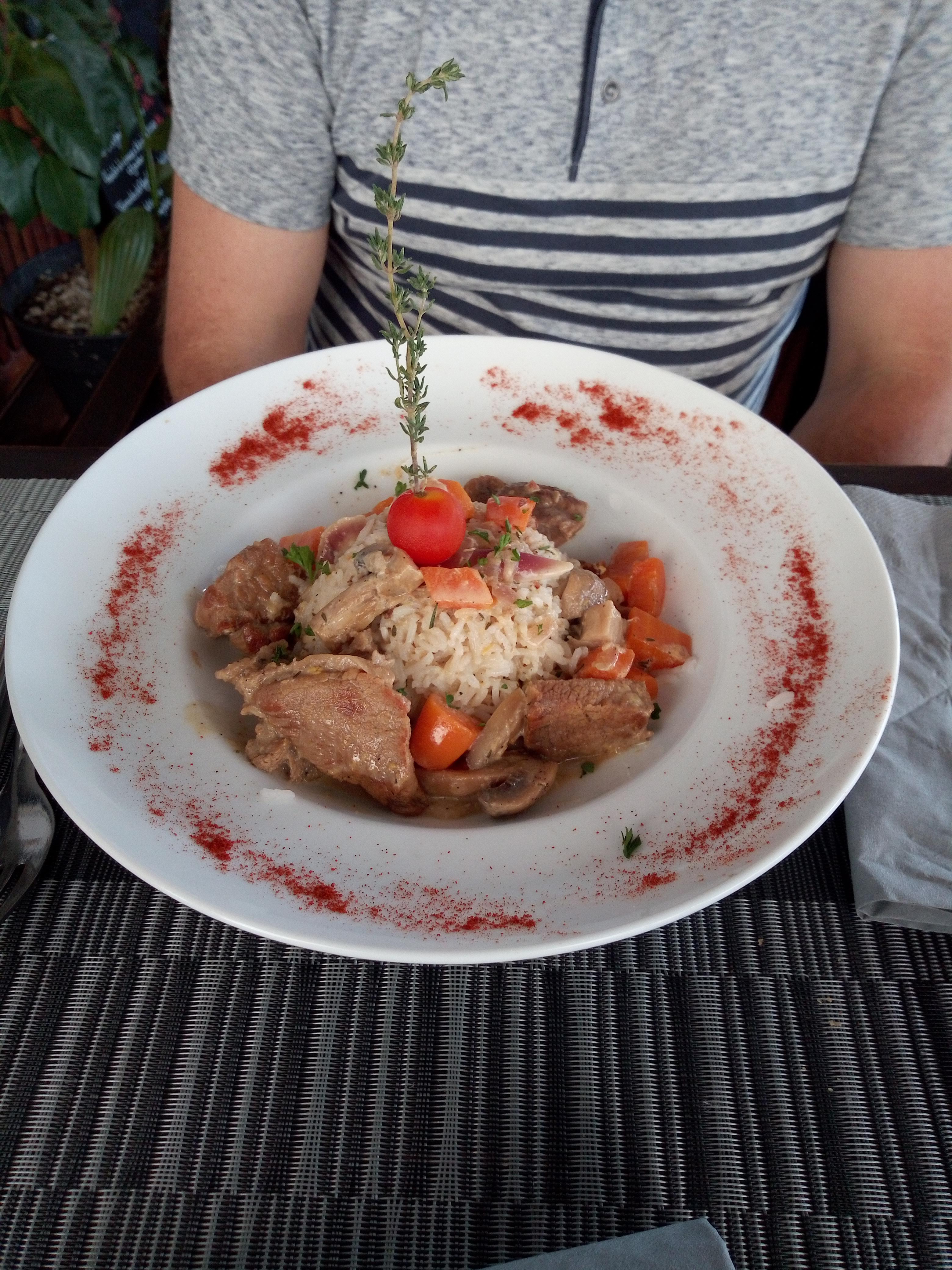 Plat du jour un délice le serveur tony est gentil souriant aimable nous a conseillé qq beaux endroits à visiter ...je vous recommande ce restaurant ...trop bon