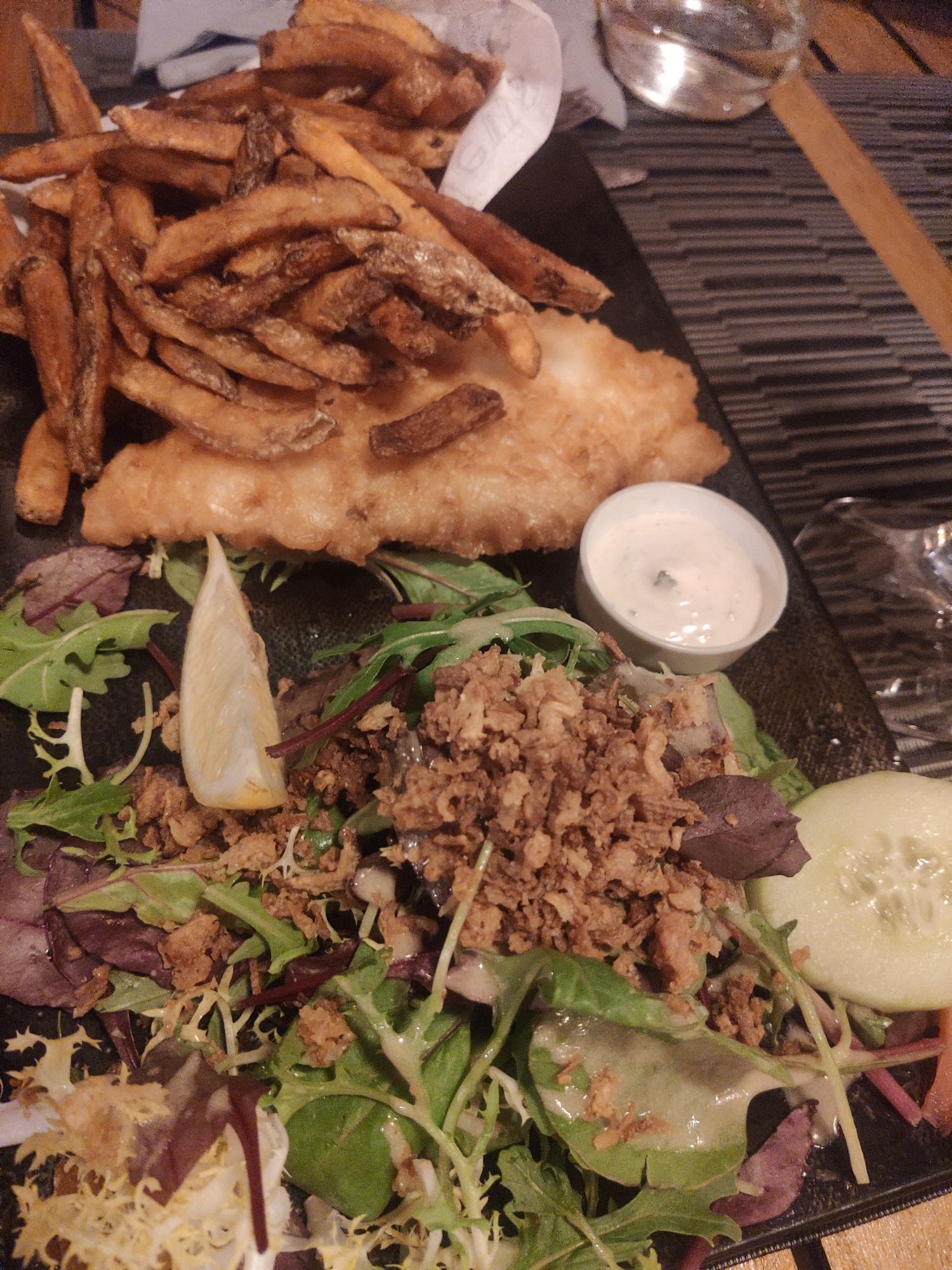 Nous nous sommes tous régalés : Burgers , Fish and ships, moules , pizzas … tout était très bon et assez copieux ! Et le service était au top !!