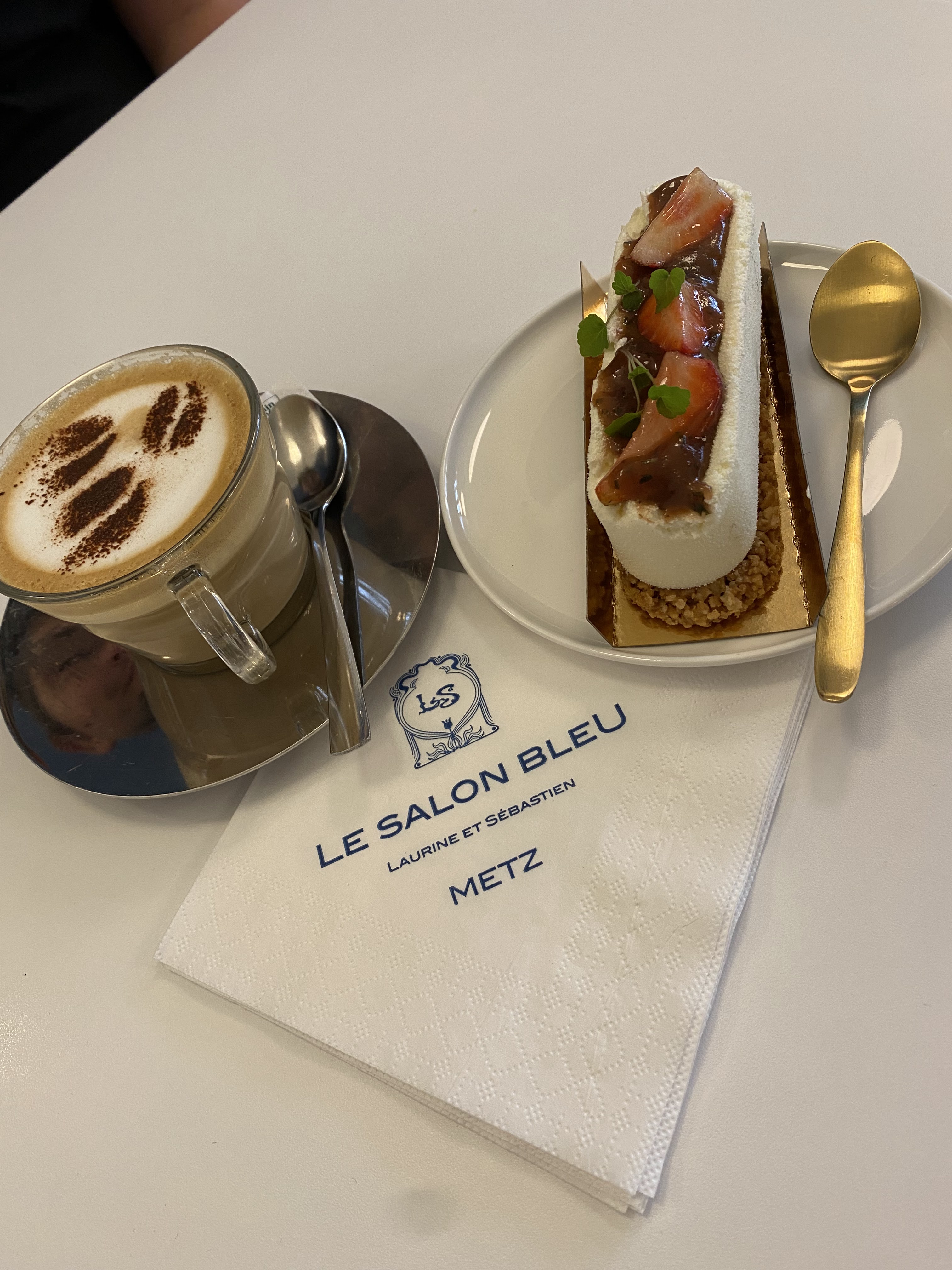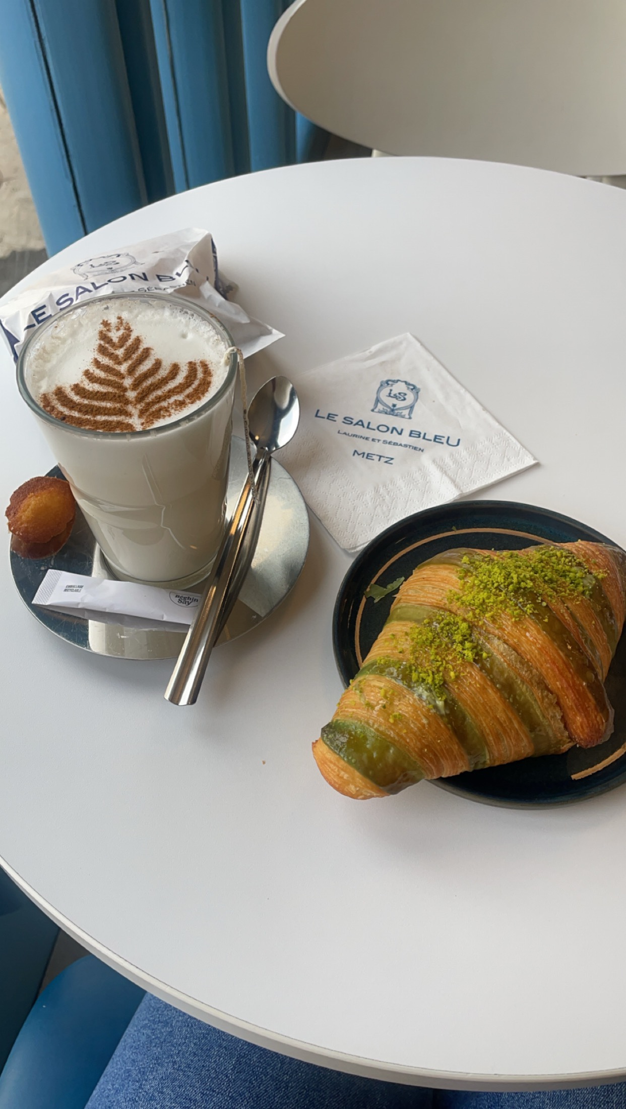 J’ai découvert ce salon grâce à @dessert_messin sur Instagram, et depuis j’y reviens régulièrement avec une amie, pour le petit dej avant d’aller en cours. Les viennoiseries sont très bonnes, les galettes également, les cafés excellent. Dernièrement j’ai goûté une pâtisserie à la pistache qui était excellente également donc je recommande les yeux fermés! Sans parler de la vue à l’étage, vue sur la place St Jacques, j’ai beaucoup aimé!