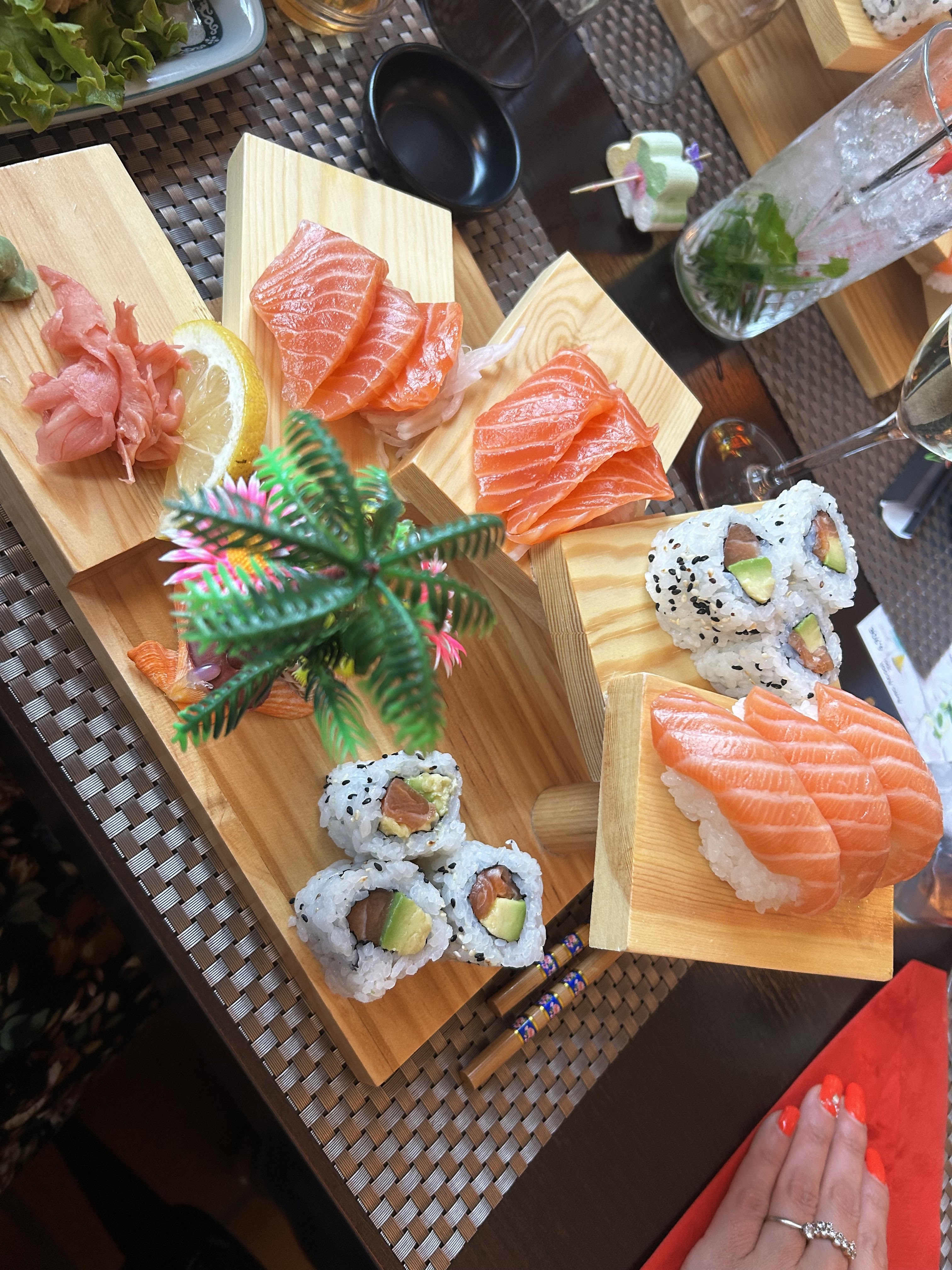 Voici mon avis : - le repas: très bon sushi. - le service : complètement désorganisé, erreur de plats, des plats inversés, nous n'avons pas eu les soupes... Et enfin, nous n'avions pas les plats tous en même temps... donc vous mangez limites à tour de rôles. - l'attente : 1h30 avant d'être service.. une catastrophe.. on etait à deux doigts de partir. - pour terminé : nous avons demandé un geste commercial à la fin : résultat juste un cocktail à 3,50 euros offert. Je déconseille si vous êtes pressés. À vérifier s'il y a du monde avant.