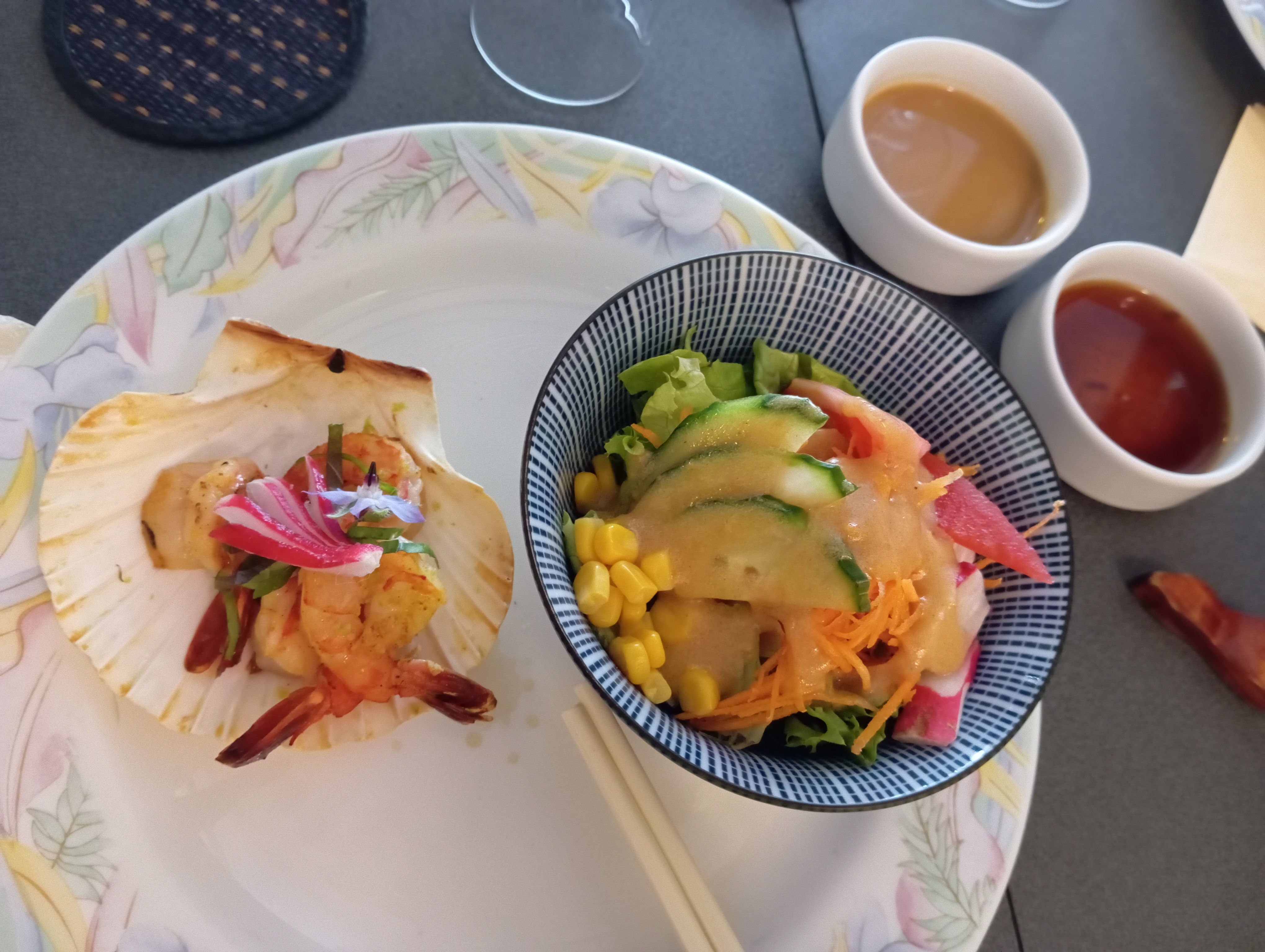 Des mets d'une très grande fraîcheur. Des légumes et des gambas virevoltantes entre les outils de cuisine d'un maître de la cuisine japonaise. Un service agréable et de qualité préparé devant nous. Merci pour cet excellent repas.