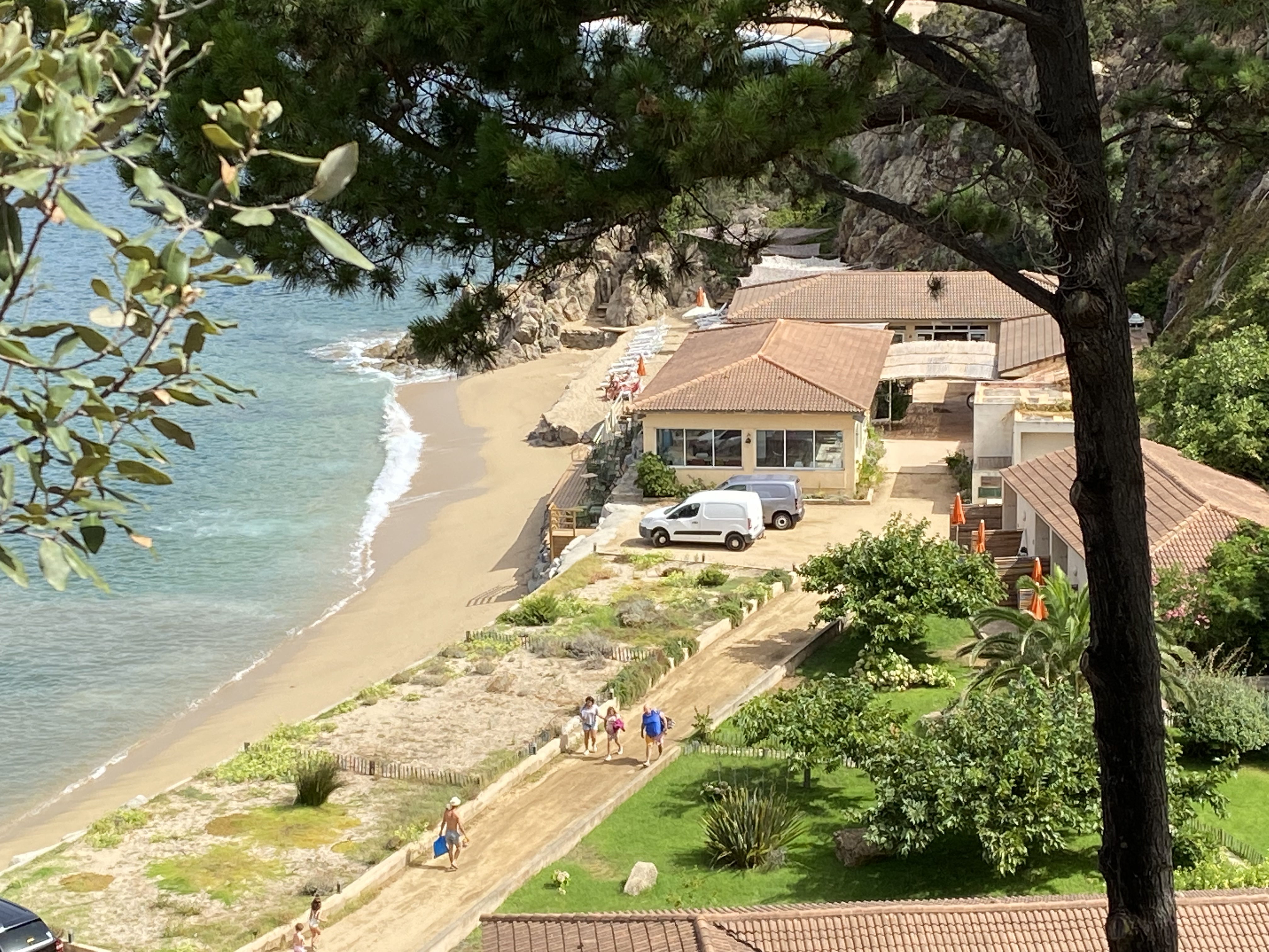 Triste, langue de plage de 2m en contrebas du parking de l'hotel et de la départementale. On a l'impression en juin d'être dans une maison de convalescence pour retraités.
