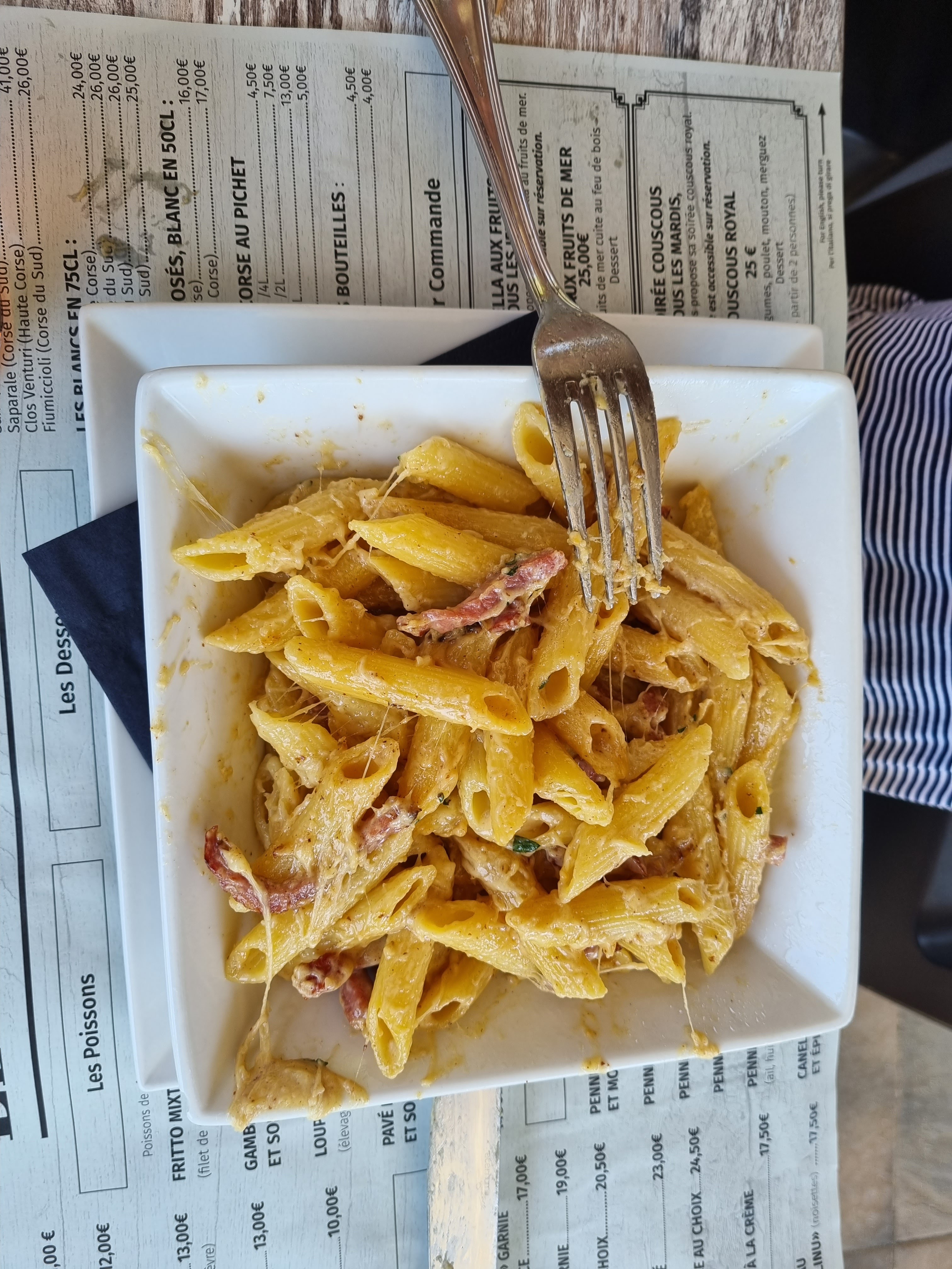L'accueil est super chaleureux!! Il y a un large choix de plats avec produits du coin, frais et très bons. On a testé les gambas au curry, le filet de porc au figatellu, le saumon et le filet au roquefort, tout était délicieux. Les desserts sont au même niveau et le petit alcool de myrte offert à la fin du repas est un plus très sympa!