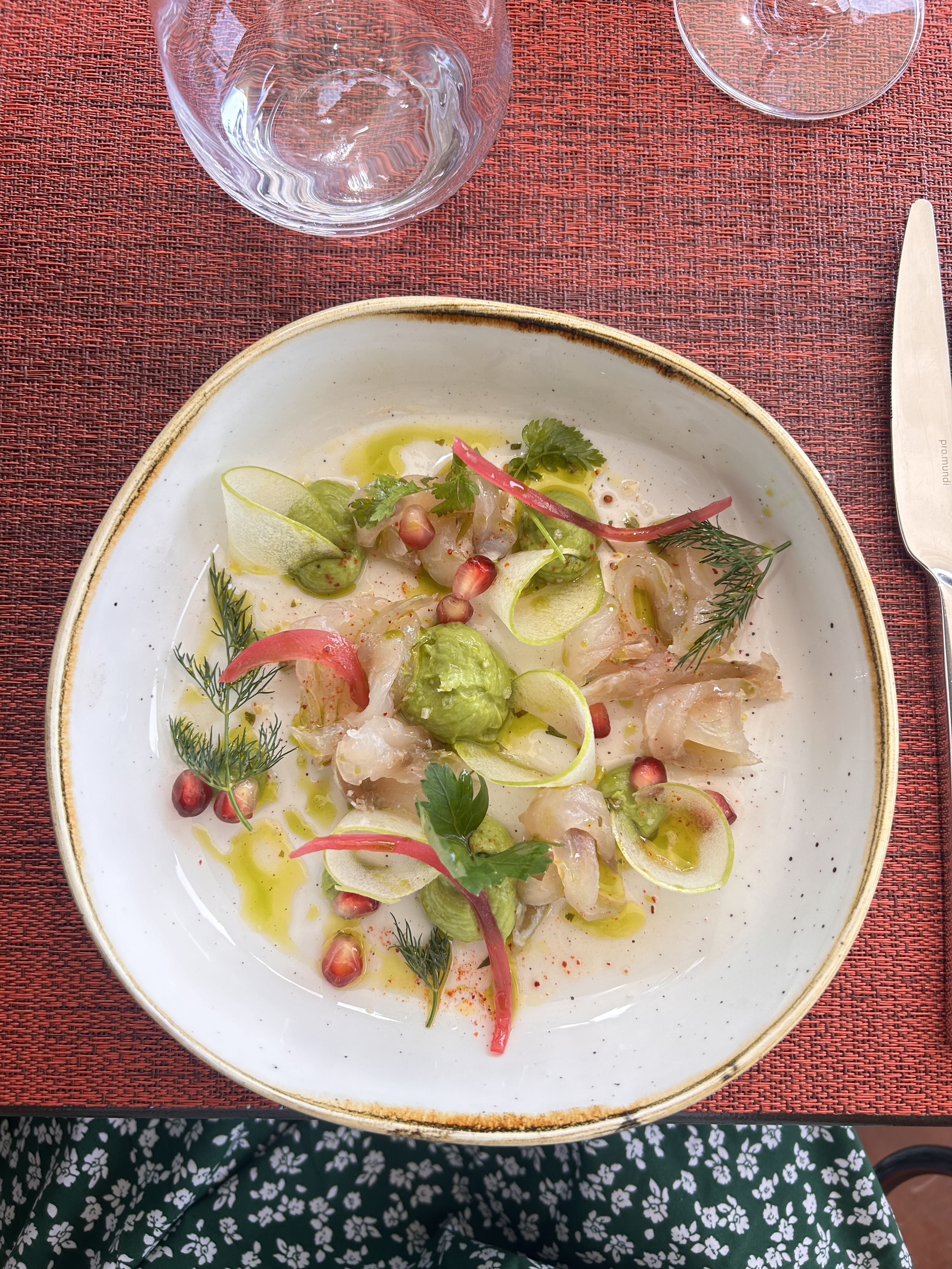 Une délice en capital. Je voudrais bien y retourner aujourd'hui. Les plats étaient d'un niveau... Ohlala, on s'est régalé. Le vin, le team, la vue.