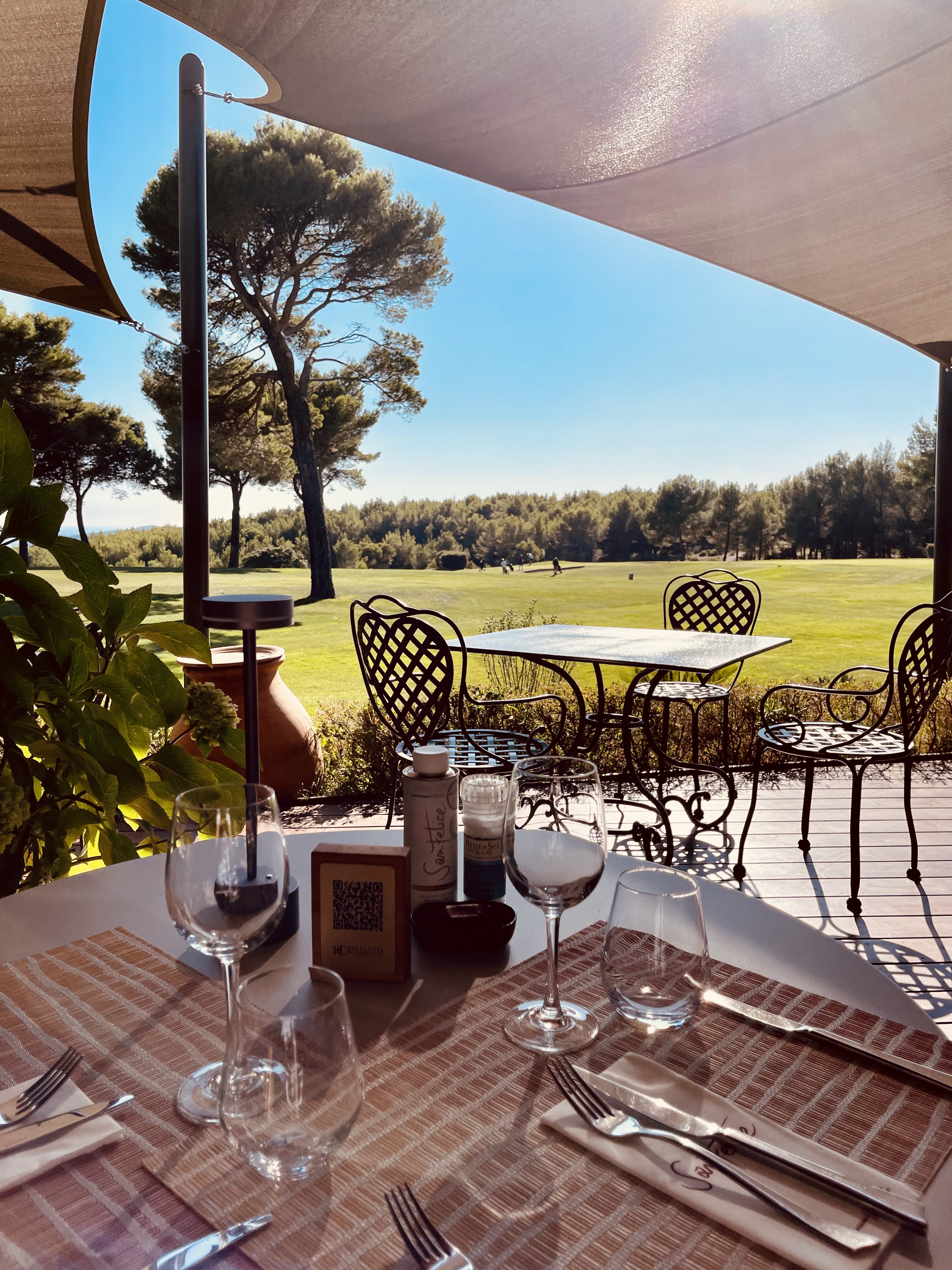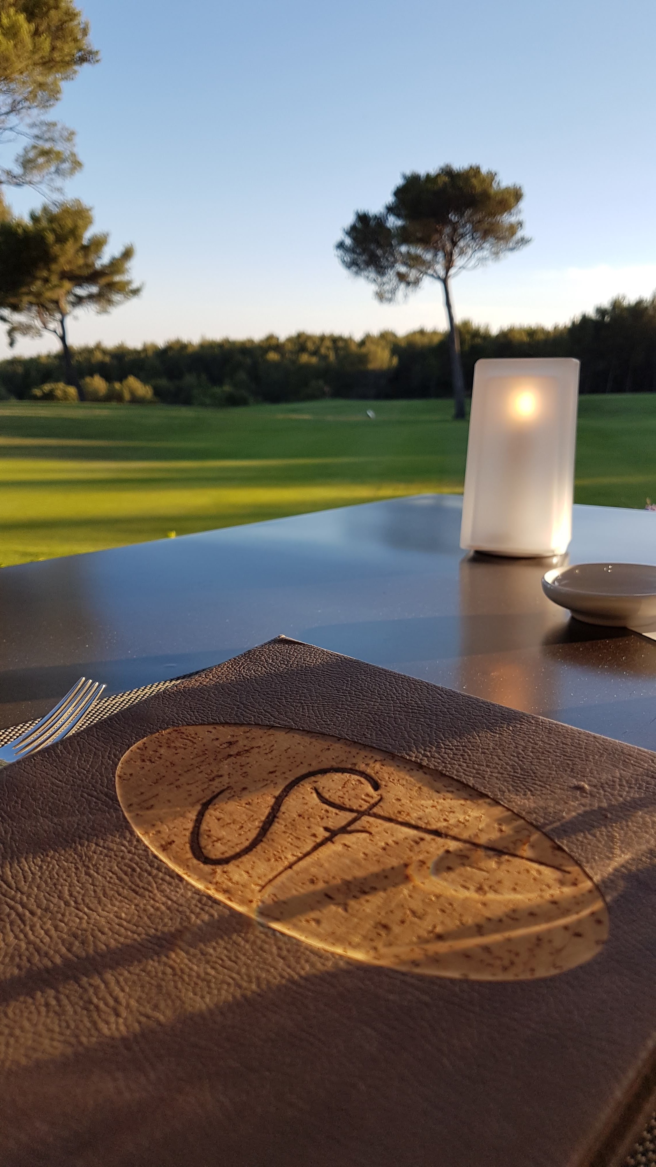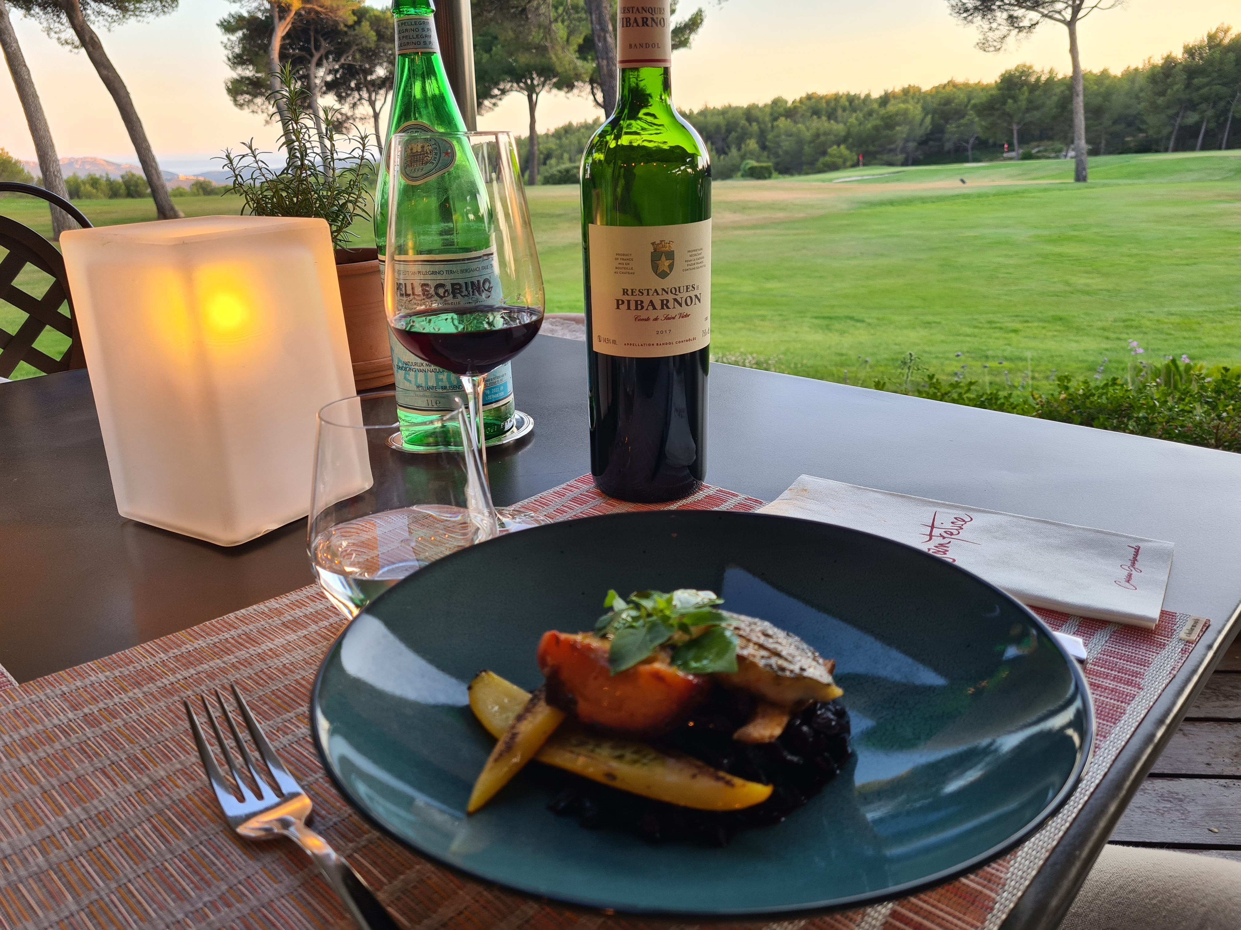 Magnifique lieu superbe vue sur la piscine le golf et au loin on.voit la mer. Repas très bon et raffiné