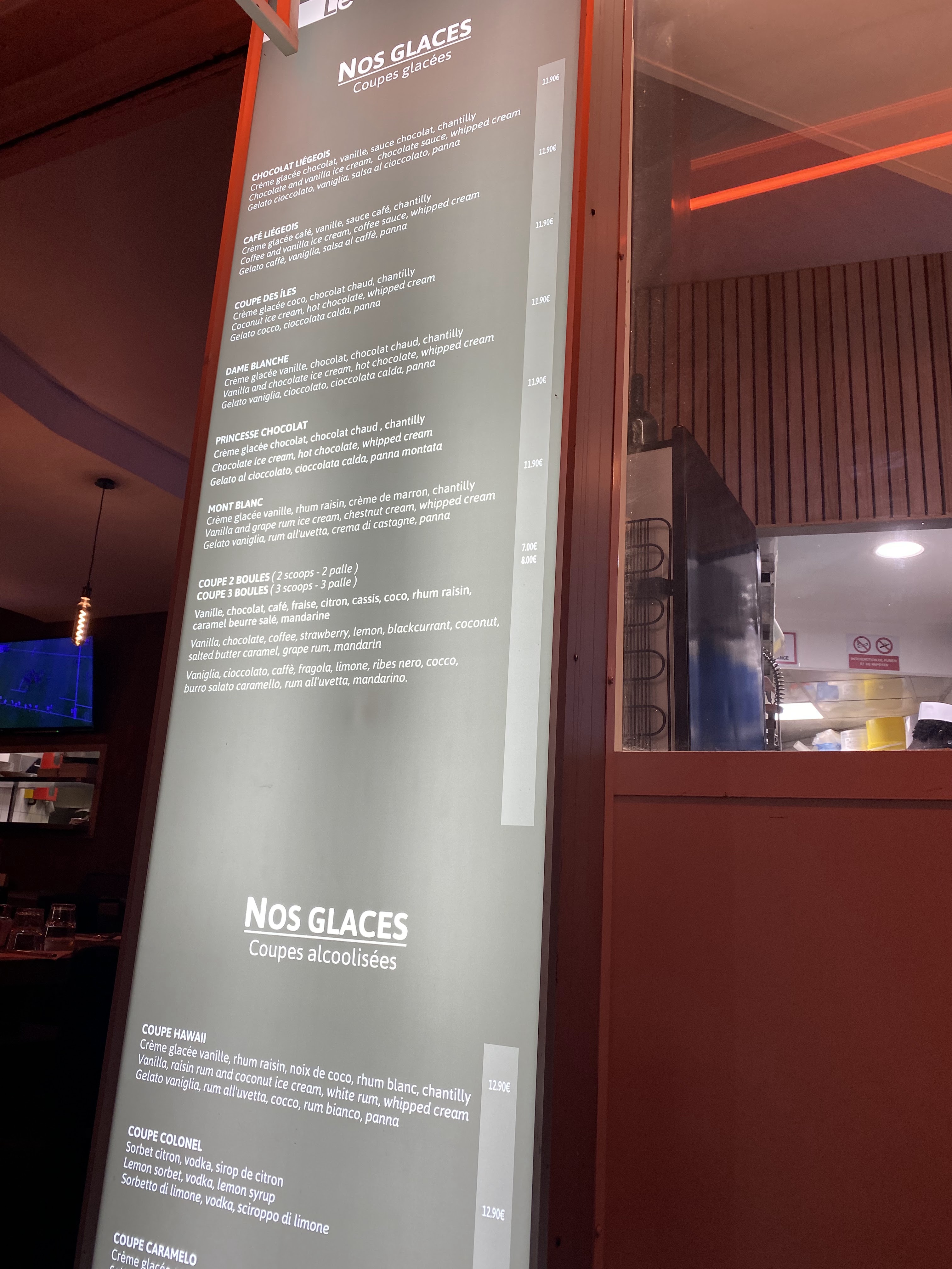 Je m'y suis arrêté pour manger une glace. Le serveur était très sympathique et les glaces bien préparées. A l'ombre sur la terrasse parfait. Une bonne coupe glacée normale, ni plus ni moins... Comptez entre 9 et 12 euros
