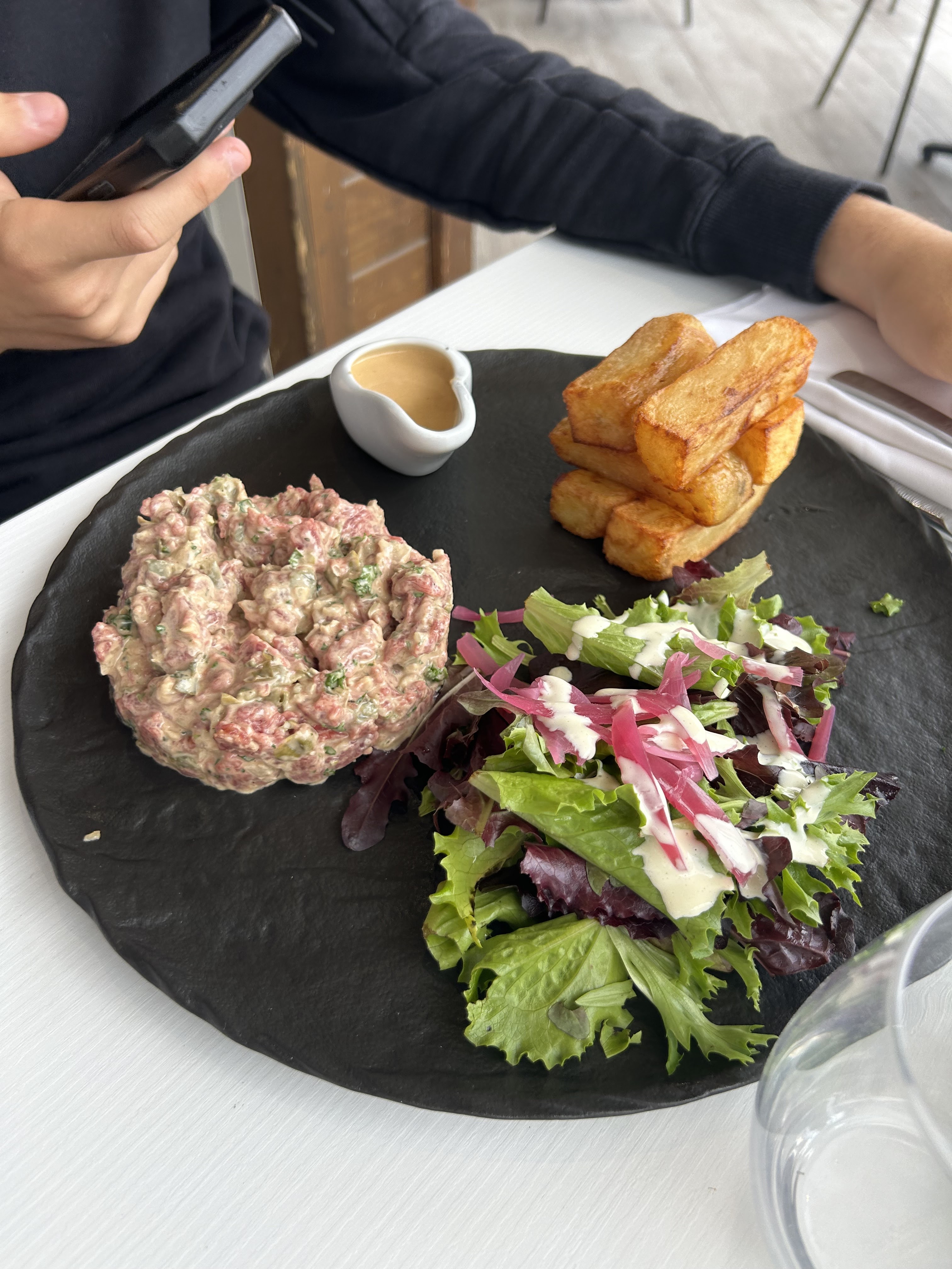 Nous avons passé une excellente soirée, très bon accueil, les plats sont délicieux et joliment présentés, les serveurs sont sympathiques et professionnels, l’ambiance du restaurant est très agréable, il est idéalement bien situé. Je recommande fortement ce restaurant.