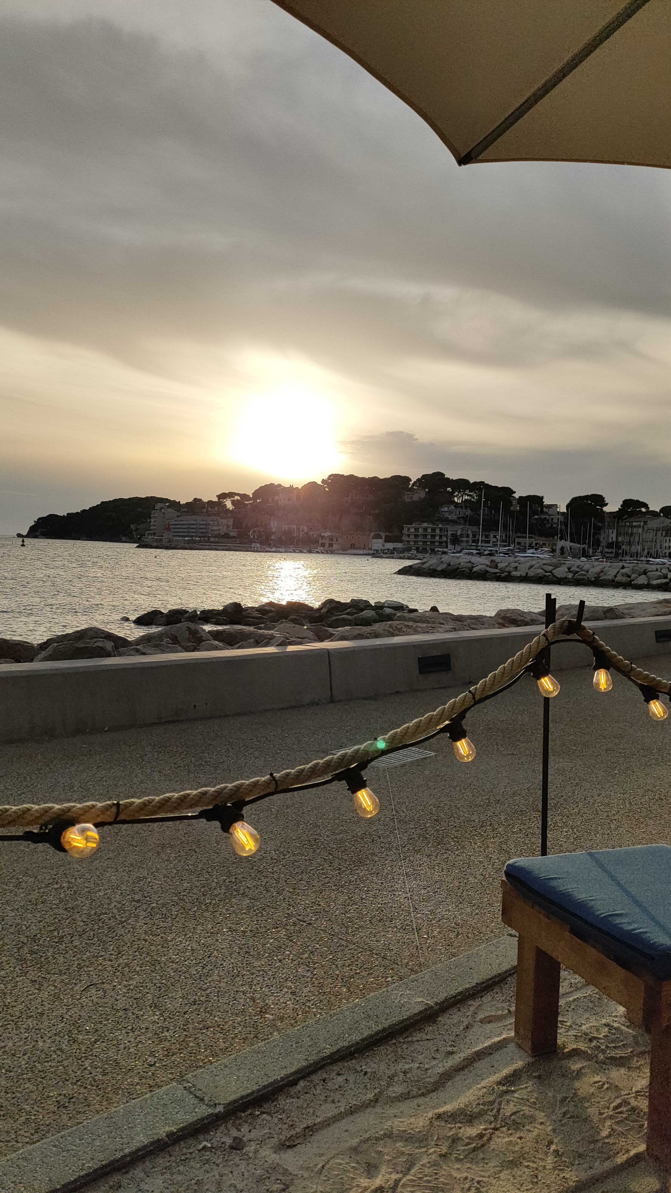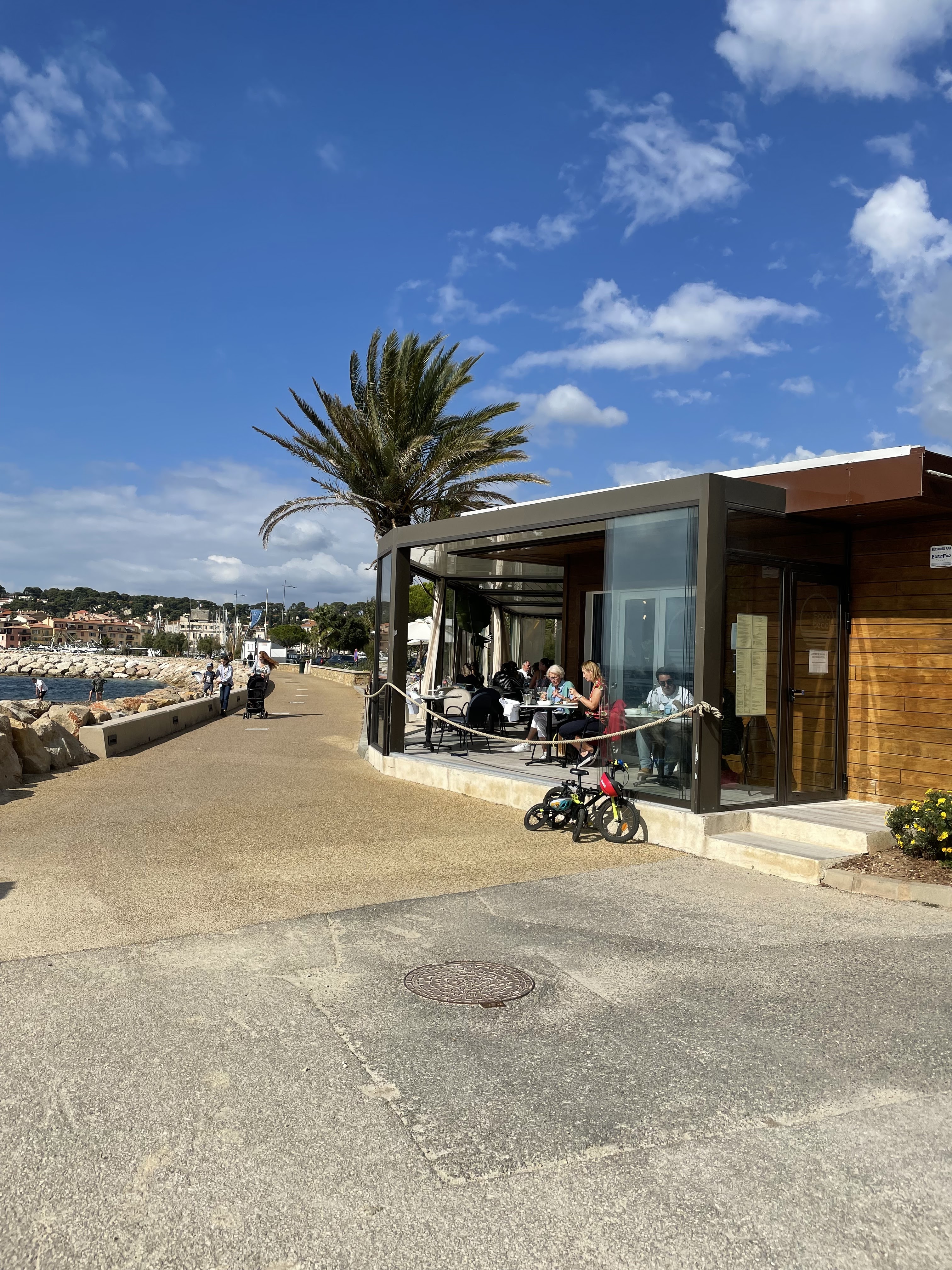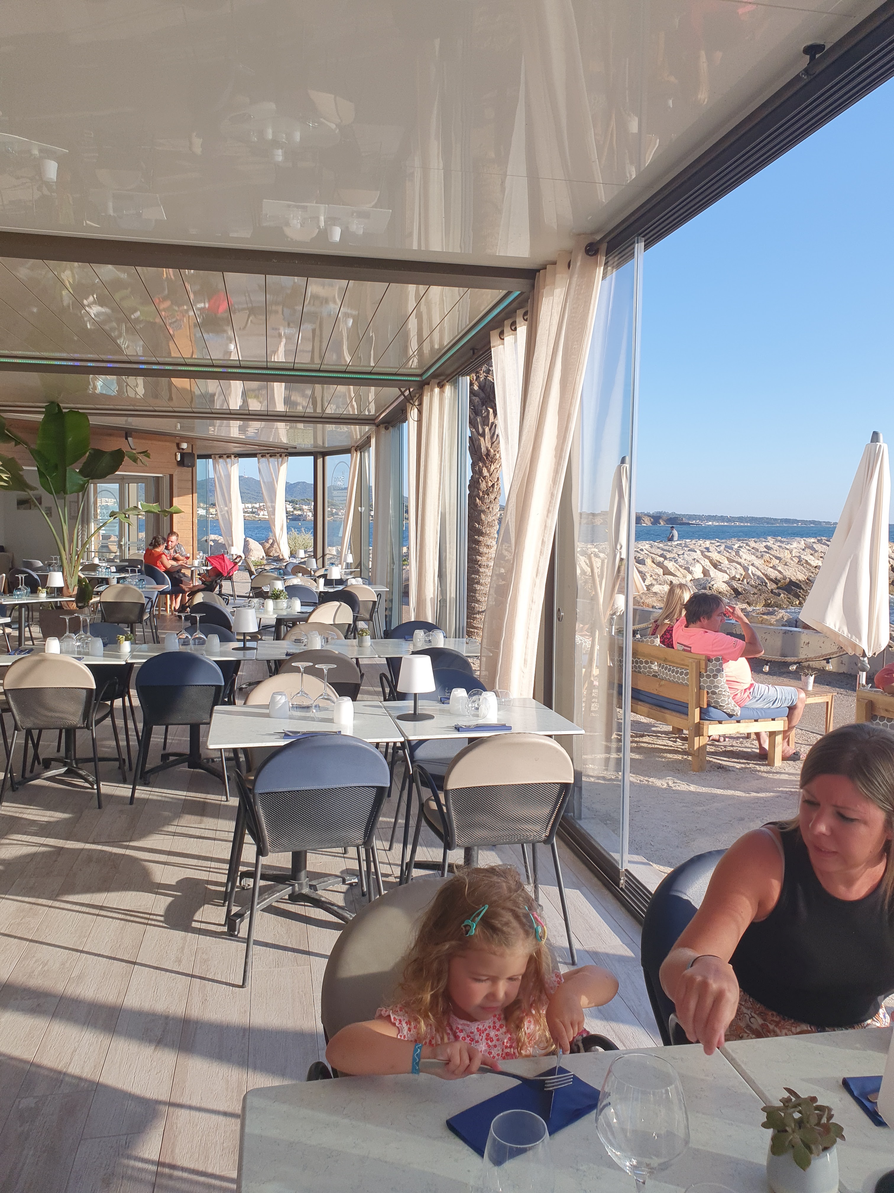 geniallissime...vue splendide sur Sanary..serveuses au top...ambiance cool et chic...un must de l été...très très très très bon..