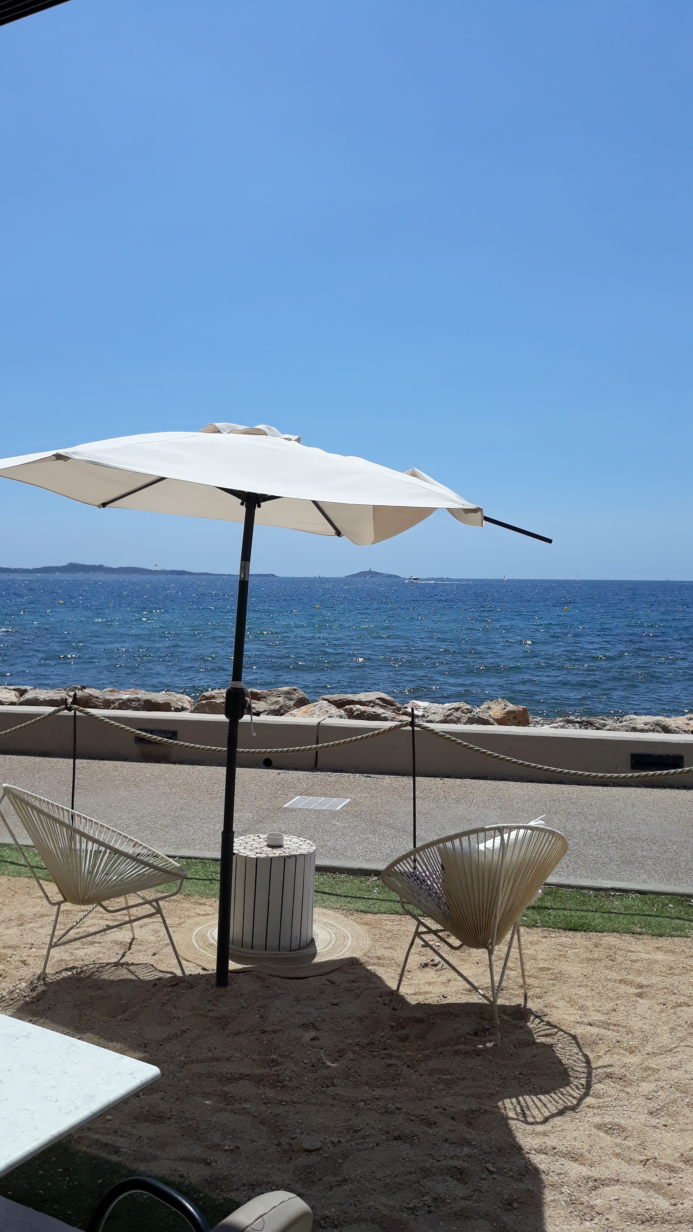 Bel endroit au bord de mer avec une toute petite partie en pleine air les pieds dans le sable, très bien pour un petit apéro sur les canapés extérieurs. Très belle salle intérieure chic et moderne. Le Rosé Côté de Provence St Hubert est incontournable. Personnel sympathique et à l écoute des clients. Je dirai même au petit soin.Nous y sommes retournés 2 fois et la 3 ème fois c est pour dîner