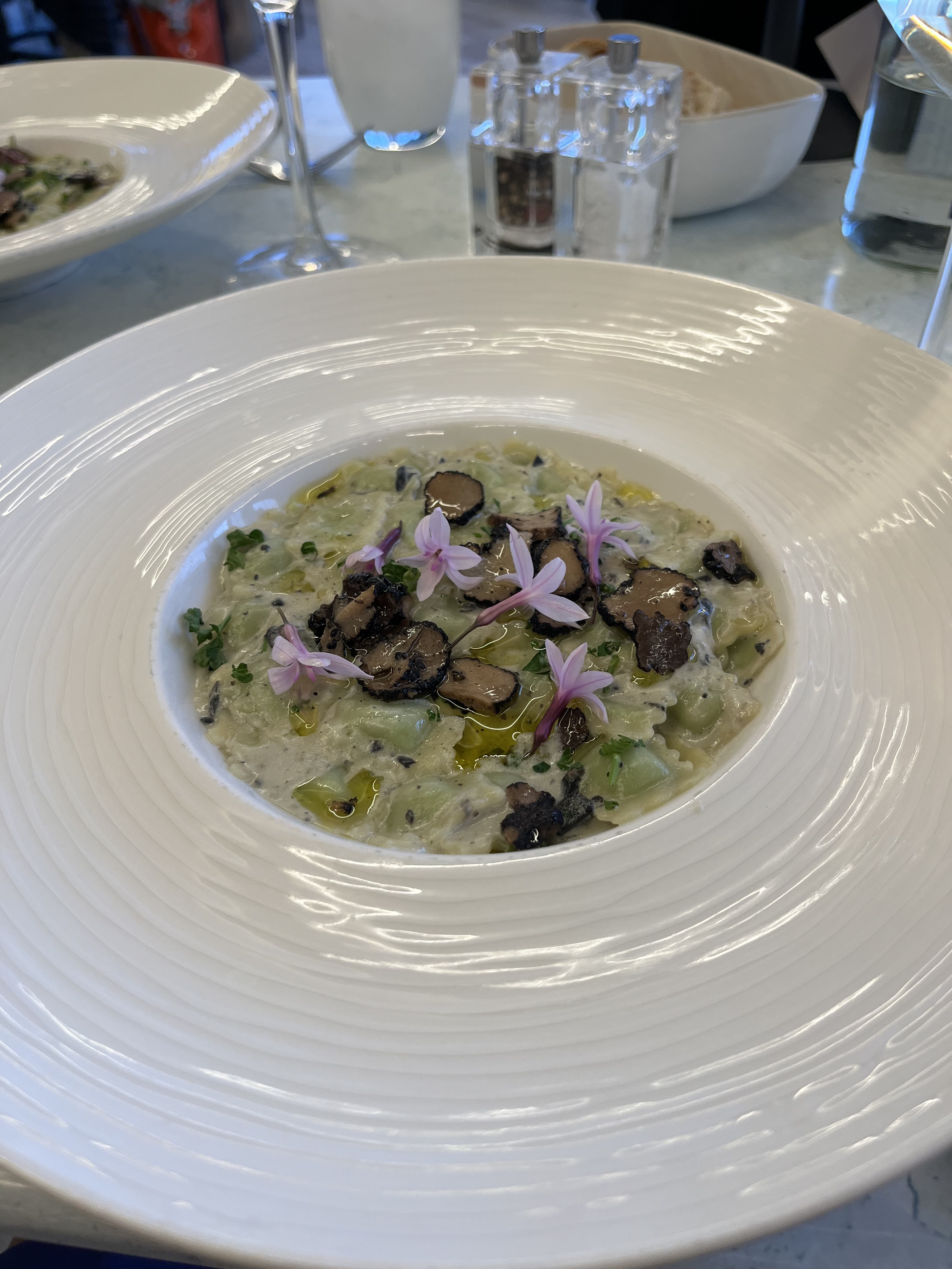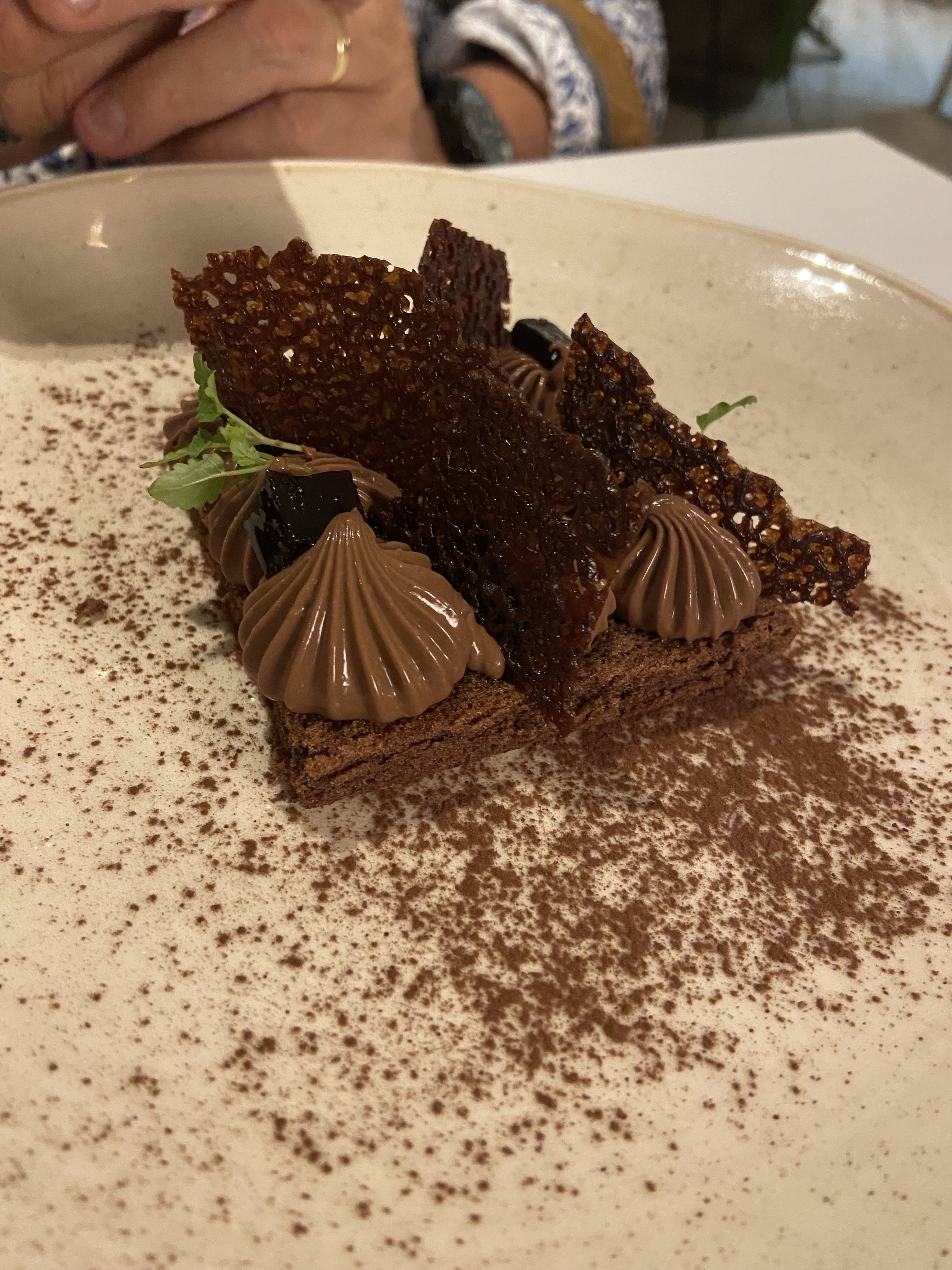 Nous avons organisé un dîner d'anniversaire tardif pour mon père/un dîner d'adieu pour moi. Lieu charmant, nourriture délicieuse et bon service. Nous nous sommes assis là au coucher du soleil, la lumière et le ciel étaient incroyables. J'ai eu la fleur de courgette avec de la chair de crabe, du poisson au pesto (pas la bonne description mais je ne me souviens plus de la exacte) et un fondant au chocolat à tomber par terre. Je recommanderais fortement cet endroit. C'est un peu cher mais avec ça.