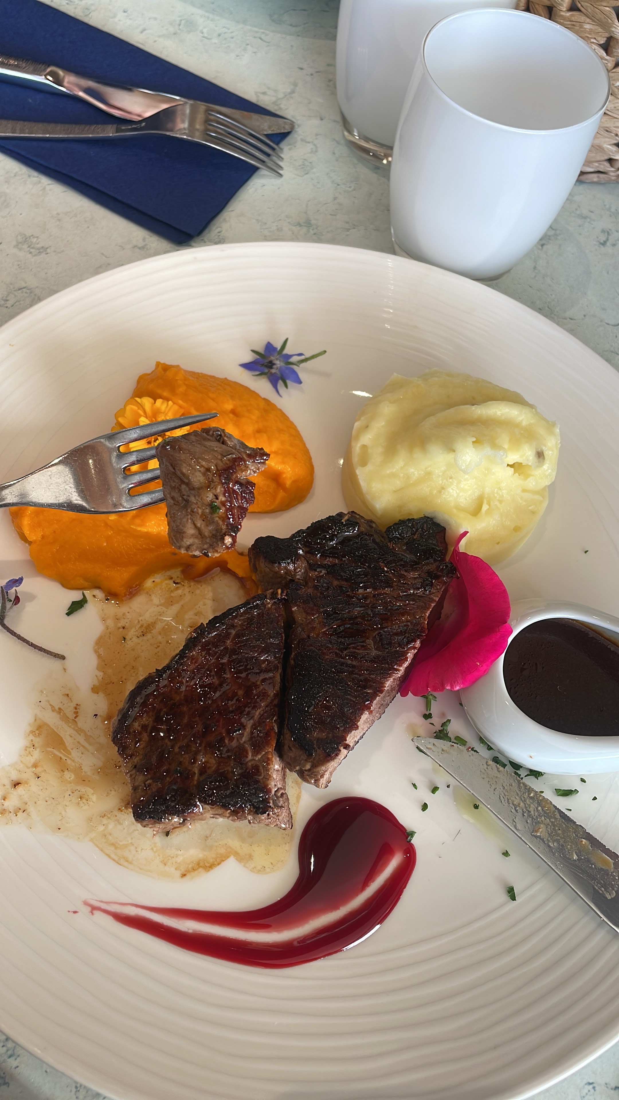 Restaurant magnifique Situation exceptionnelle 🤩 Personnel +++ Très accueillant et souriant 👍 Les plats sont aussi beaux qu’ils sont bons Un grand merci pour ce bon moment que nous avons renouveler deux jours de suite tellement nous avons apprécié. Hâte de revenir 😋