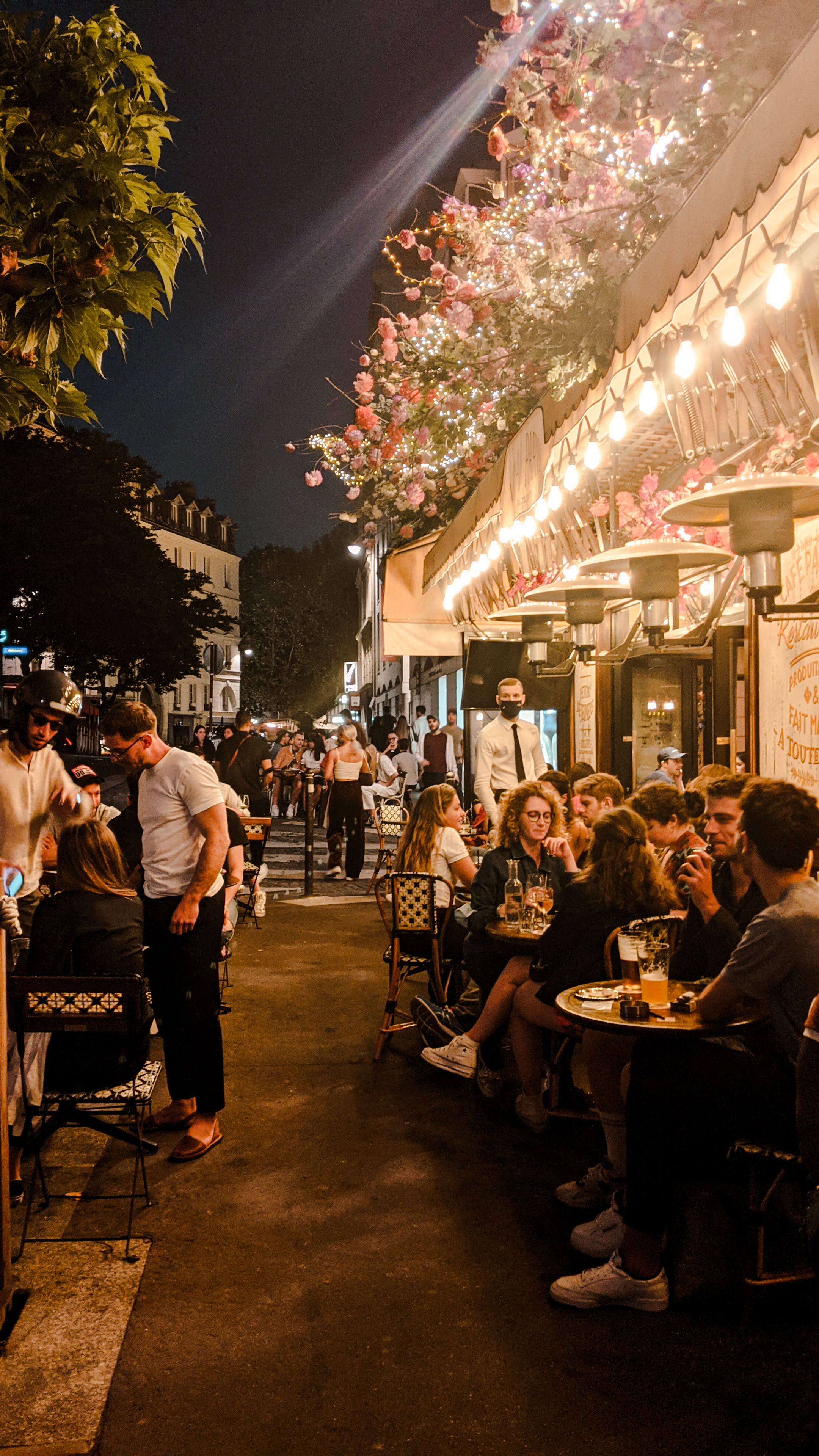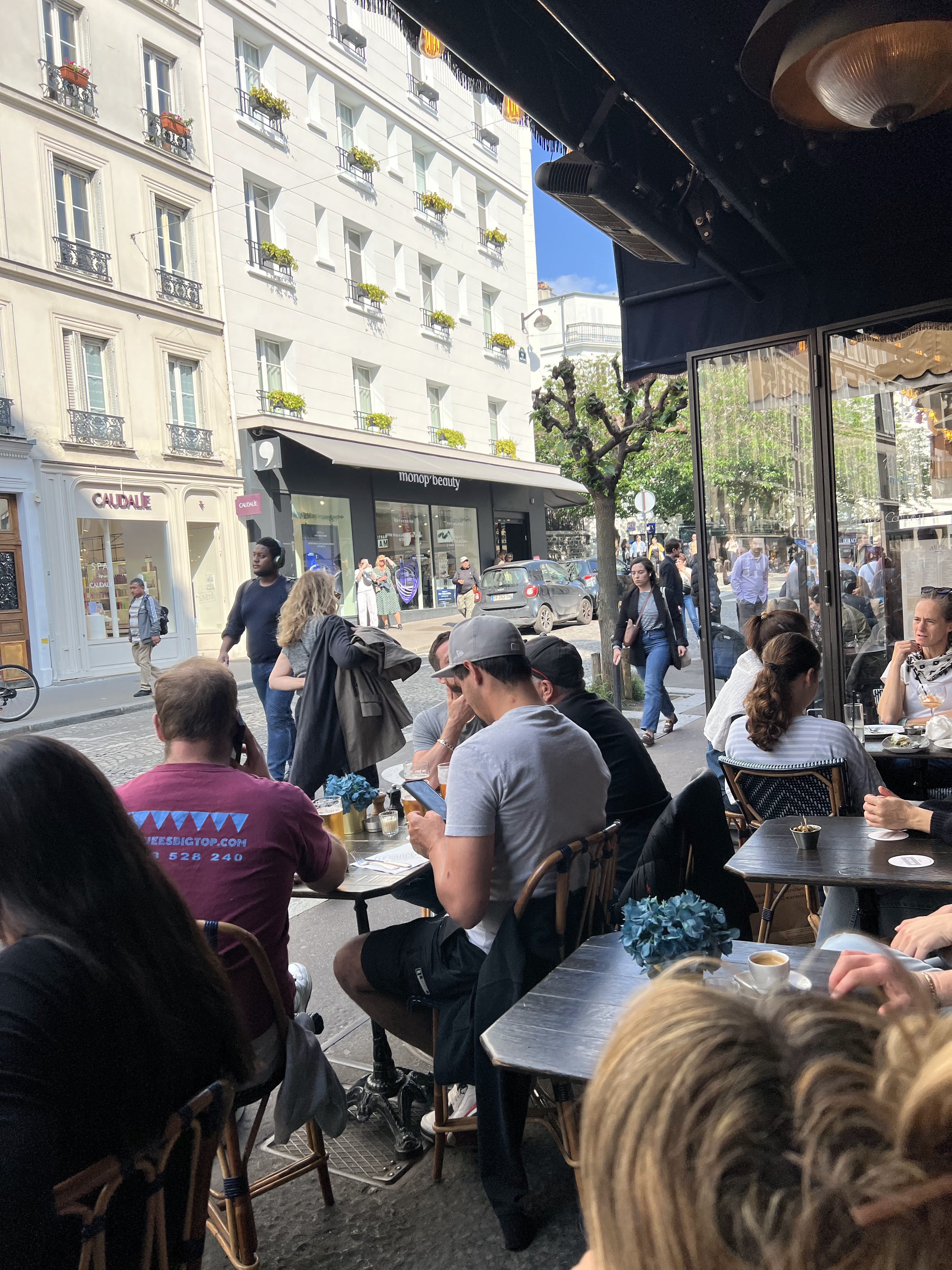 Belle terrasse. Beau restaurant dans une grande rue de Montmartre. Je n’y ai pas mangé mais un Aperol Spritz était exactement ce dont j’avais besoin pendant cette canicule infernale.