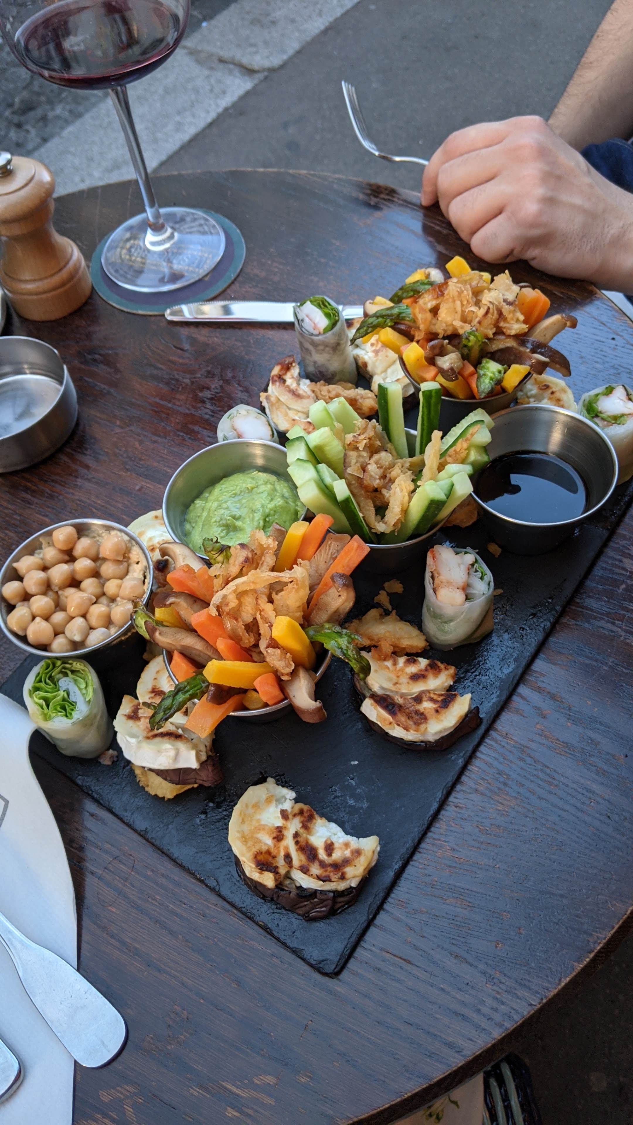Adresse très sympa avec un personnel au service dynamique et super aimable ; outre le fait d’être bonne, de bien belles assiettes. Sympathiques planches de charcuteries et de fromages. Joli choix de vins à prix tout à fait correct. Prix cohérents avec la qualité La déco du lieux est originale Belle et grande terrasse chauffée Pas facile de se garer dans les environs mais ils n’y peuvent rien 😉
