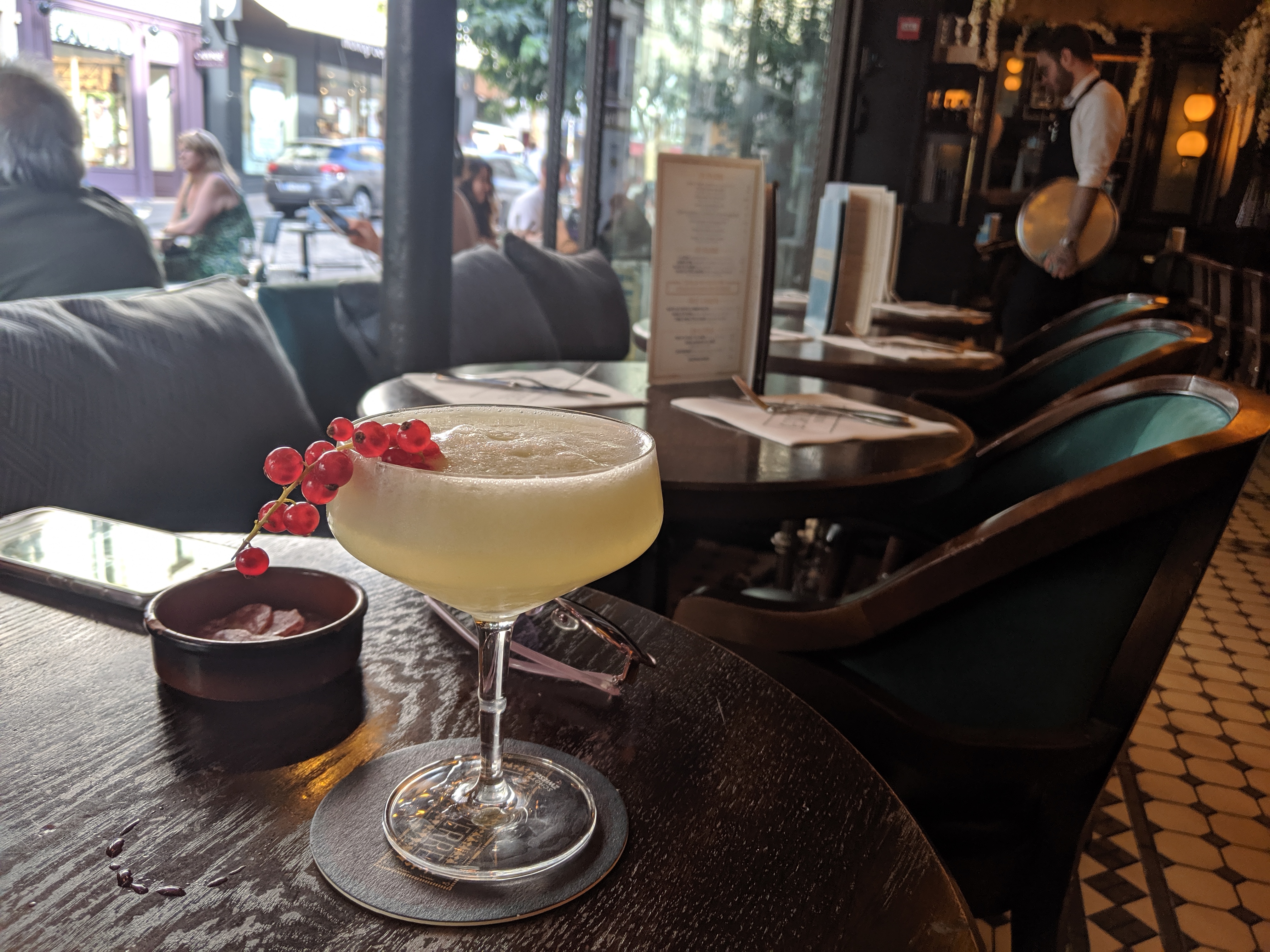 Service déplorable. La réputation de serveurs parisiens est déjà bien entachée mais quand on vient ici, on comprend pourquoi. Un serveur qui vous méprise dès votre arrivée sur place, vous évite du regard pour ne pas vous servir et porte son masque sous le menton. Si vous n’êtes pas une femme suffisamment mignonne et à son goût, éviter cet endroit. Le bar d’à côté est très bien et mérite votre présence lui. De plus il veut absolument tenir votre carte bancaire dans les mains.