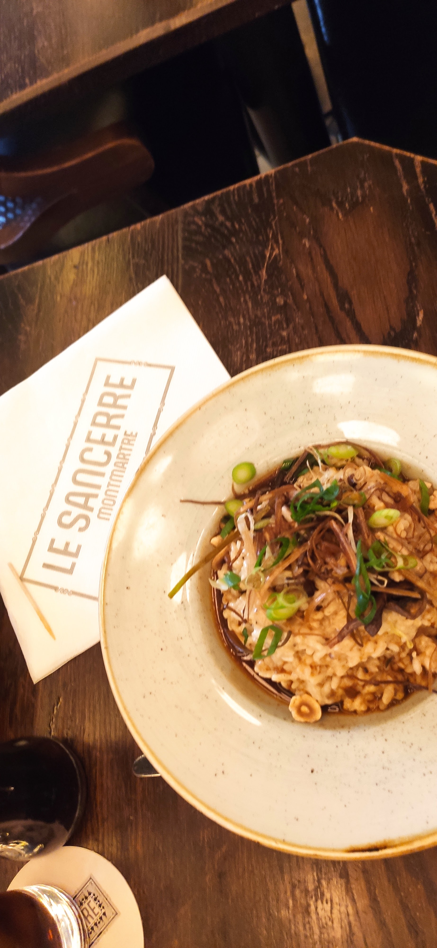 Nous avons pris un bon verre et dîné lors d'une nuit pluvieuse à Paris au Sancerre. Notre hôte Yoann était à la fois attentionné et amusant. Il a créé l'atmosphère idéale pour une soirée détendue (et légèrement humide). Nous avons pris un excellent repas comprenant du risotto avec des gambas et des saucisses faites maison et le vin était incroyable. Un endroit idéal pour observer les gens à Montmartre.
